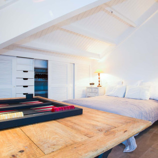 Opulent and chic living spaces inside Suite Harbour make. Tall ceilings capture the island light, filtering in through large doors and windows overlooking the water. The entire home feels comfortable and luxurious, yet welcoming as well – the ideal home away from home for a relaxing stay in the St. Barts capital.