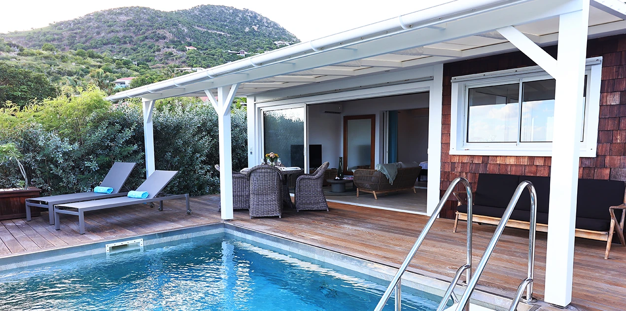 In the peaceful neighborhood of Toiny, on the island of St. Barts, famous for its surfing spot, lies Villa Swell 1 (villa code: WV SW1). Its traditional construction, with wooden tile shingles, gives it the authentic charm of a St. Barts cottage, creating a unique and warm setting for your stay.