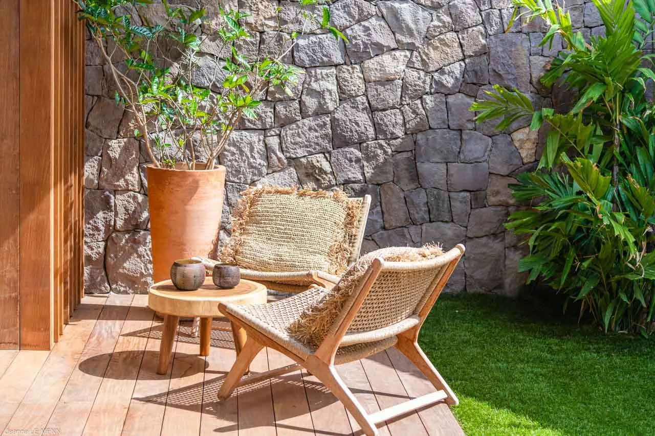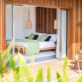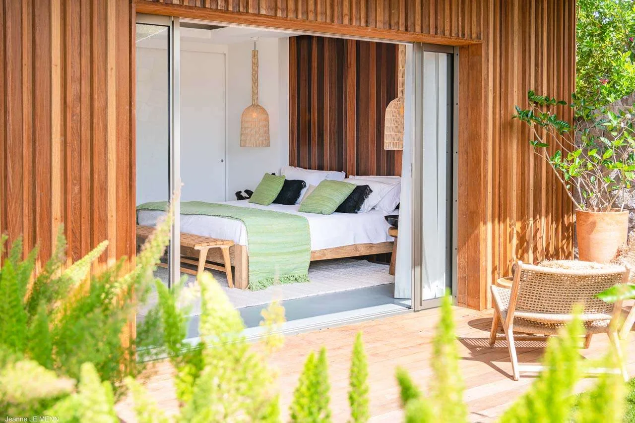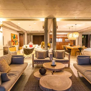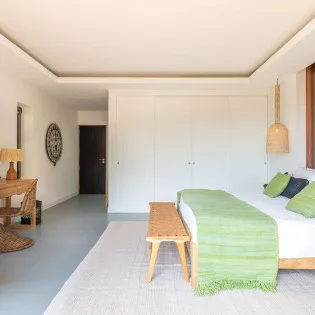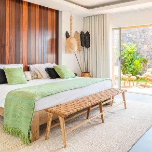 From the open and bright living spaces, Villa Tainos leads you into the quiet and secluded bedrooms. Details like large wooden panel headboards, hand-woven light fixtures, and stylish décor make each room an oasis of calm and privacy.