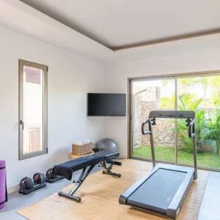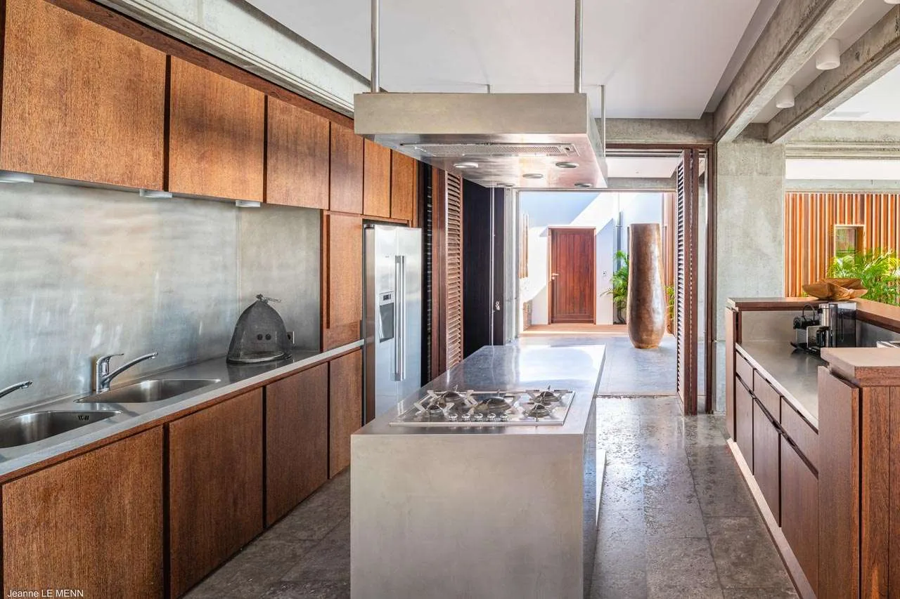 Contrasting with that concrete is the elegant wooden cabinetry of Villa Tainos’ modern kitchen. Chic and elegant, there’s an unmistakable jungle vibe to this space, an idyllic spot to prepare meals. Our concierge can even organize a private chef for an evening, leaving you to relax and unwind with a cool drink at sunset.