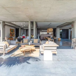 The main living areas inside Villa Tainos are completely open, light, and breezy, gracefully flowing from one space to the next. A great room combines the living area, dining room, and kitchen, while the bedrooms are more secluded, offering guests complete privacy.