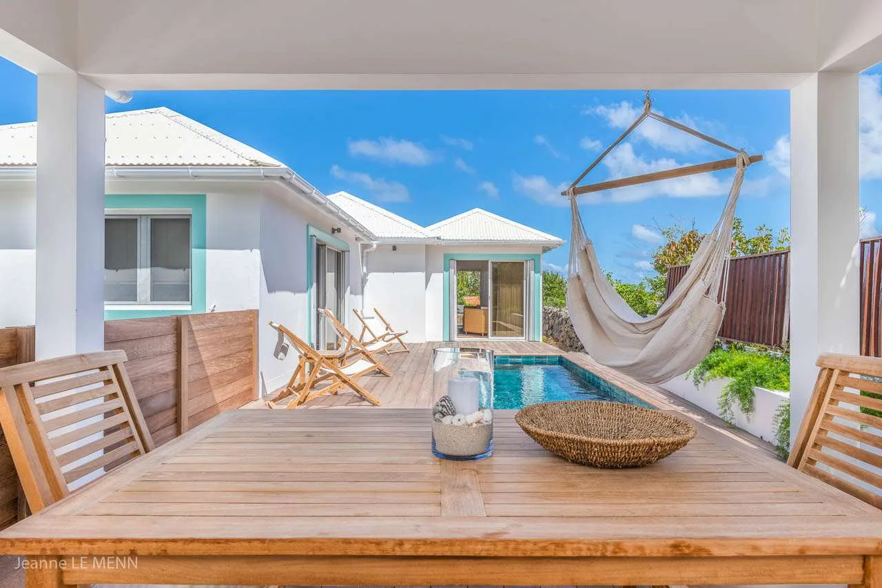 Outside, the cozy patio at Villa Telemaque lets you enjoy your own slice of paradise. There’s space to spread out in the sun and shade, soaking up the glorious island weather.
