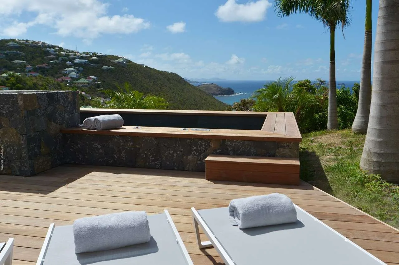 Hidden in the hills of Colombier, Villa The Source enjoys wonderful ocean views from its two terraces. Sunsets and sunrises are wonderful with these views, and the white sand beach of Flamands is a short drive from the home. There’s also a nice selection of restaurants and shops in town, while both Gustavia and St. Jean are a quick drive away.