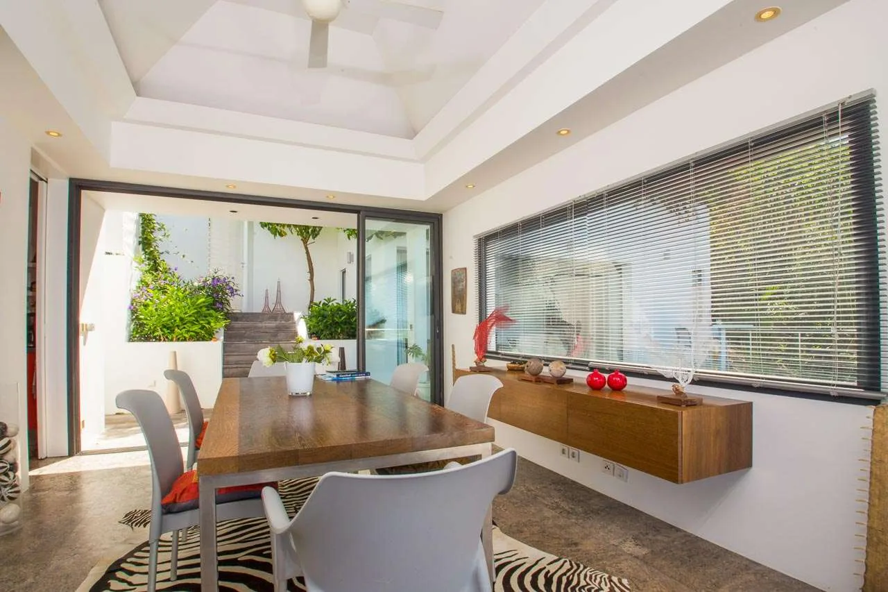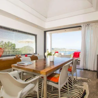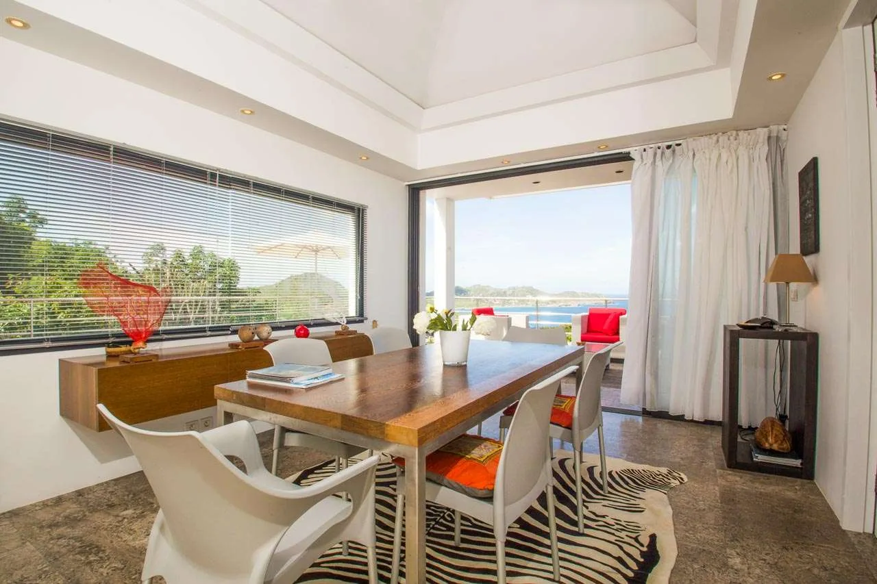 The indoor dining table is a fabulous setting for meals, with seating for up to six people. Long dinners here with loved ones will be a highlight of any stay.