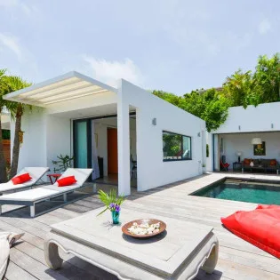 The clean design of Villa Ti Agave allows for plenty of relaxed days spent either inside or out. Bold streaks of red in the furnishings add a lively splash to the décor, which is otherwise elegant and pared-back - the classic St. Barts style. The home is completed by gorgeous wooden floors underfoot and unique décor.