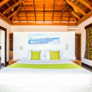 The first bedroom has a plush, king-sized bed, promising a wonderful night’s sleep. The other bedroom has a pair of twin beds but can be configured into another king. Both bedrooms have an ensuite bathroom and direct access to the terrace. Screens over the doors let you fall asleep to the cool breezes without the worry of insects.