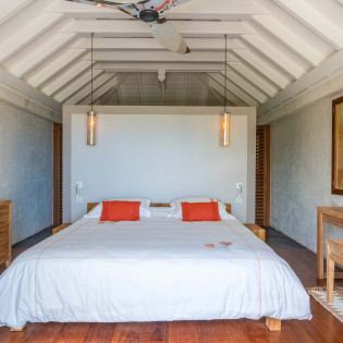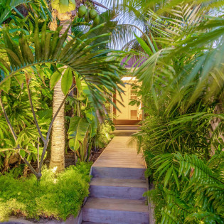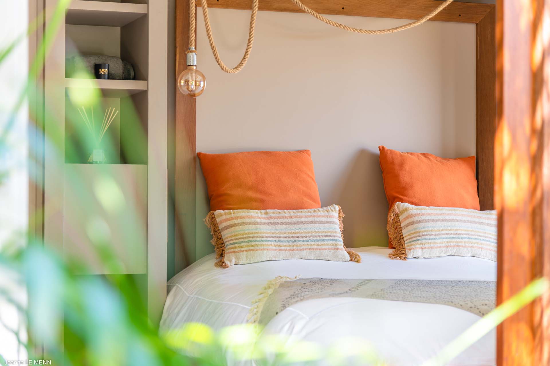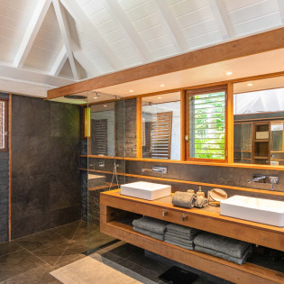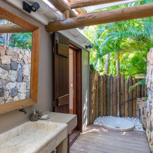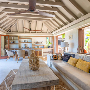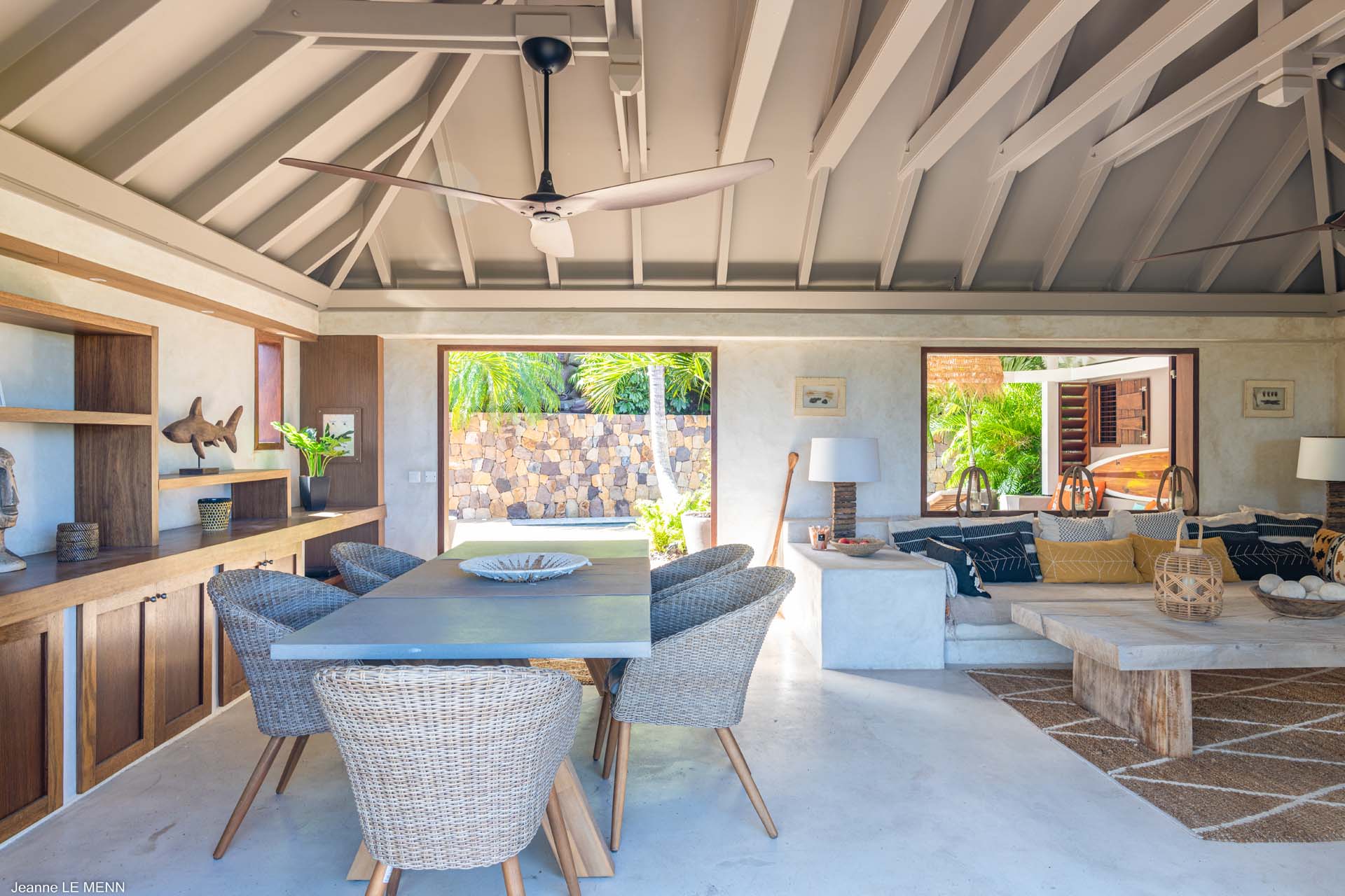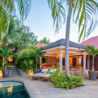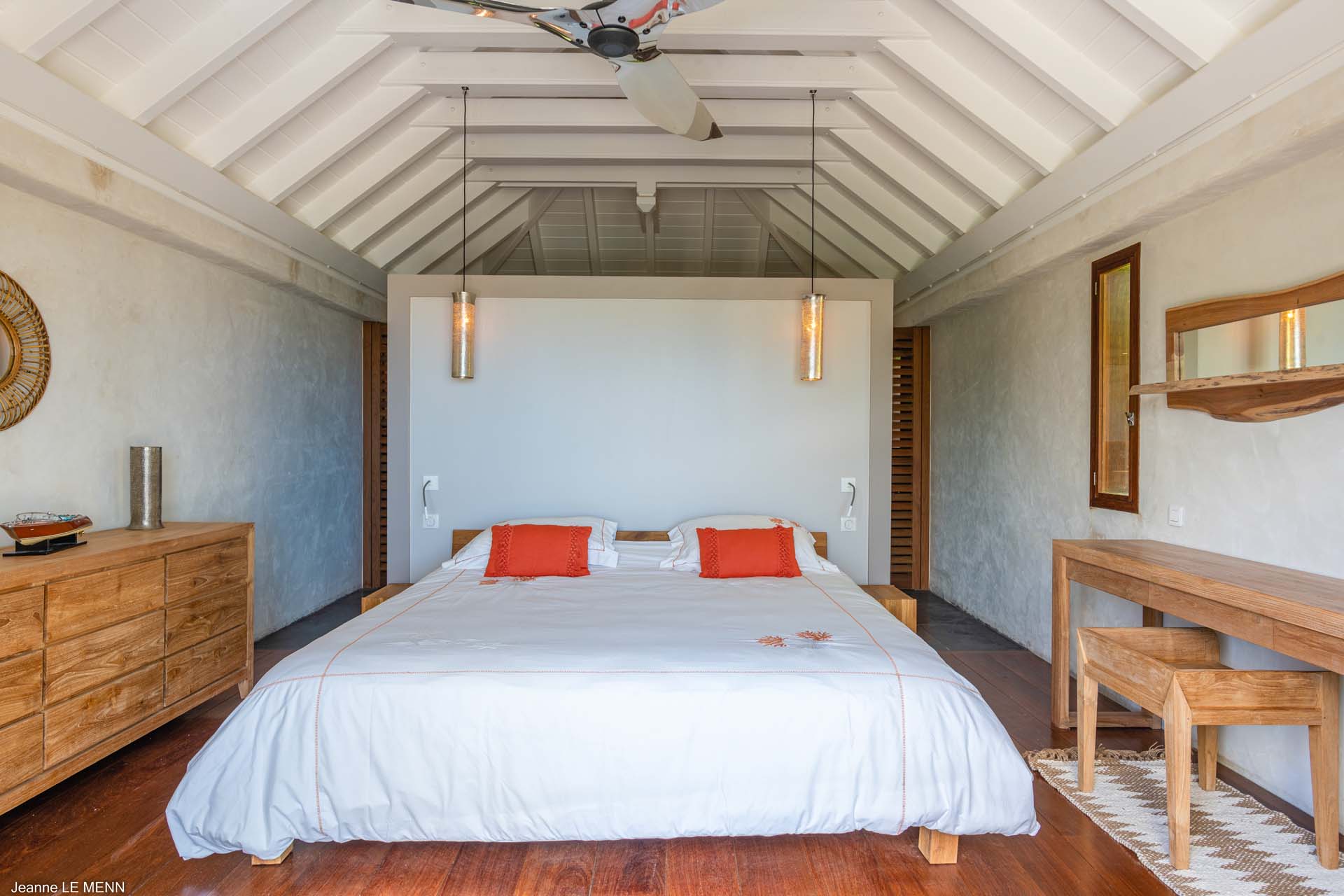 After swimming in the turquoise waters of the sea, you have the choice to dive into the pool surrounded by tropical vegetation or to indulge in the hot tub while admiring the view of the lagoon.