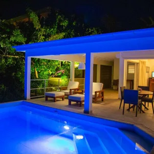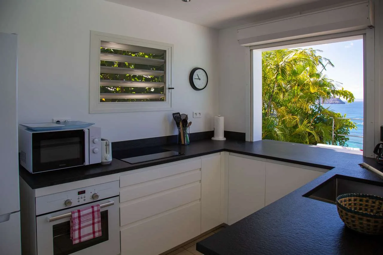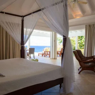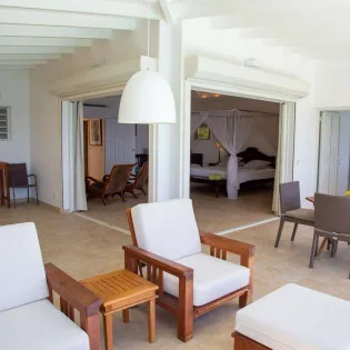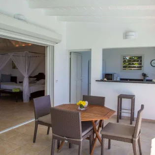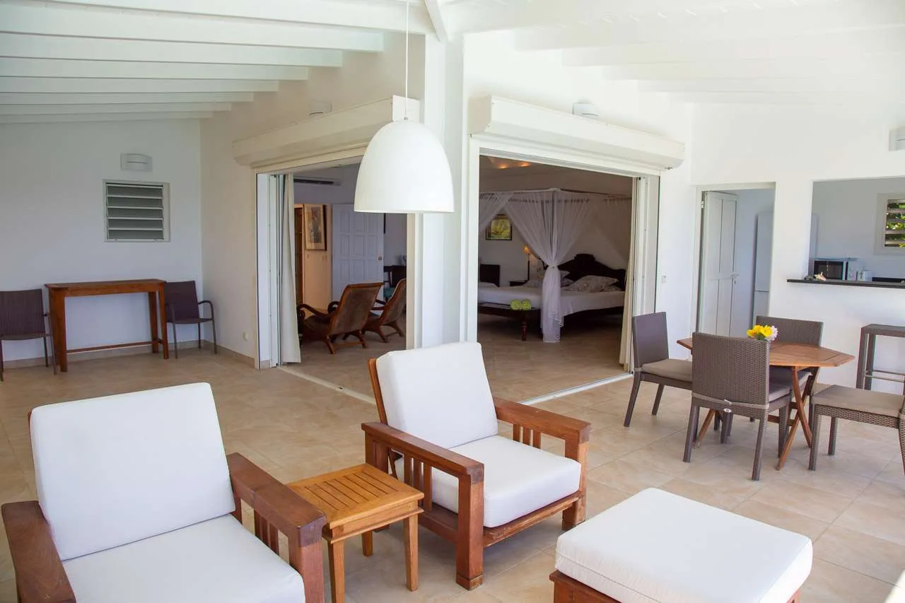 Villa Tortue enjoys a superb blend of indoor and outdoor space, making great use of the location to take in those incredible views. The air-conditioned living area and bedroom share the same space (similar to a hotel suite), opening to the terrace with ocean views.