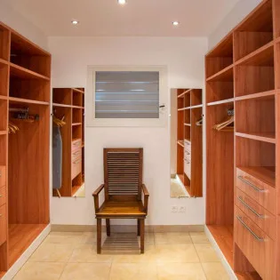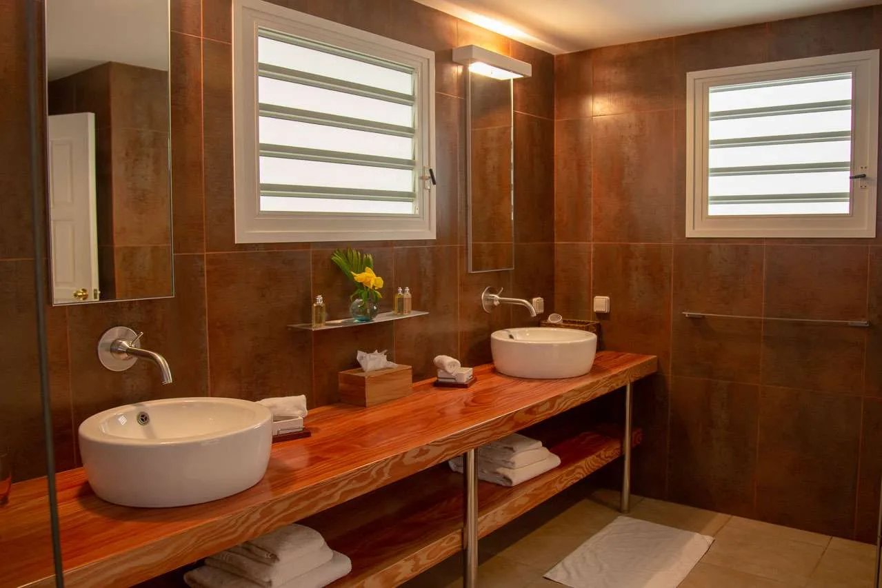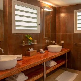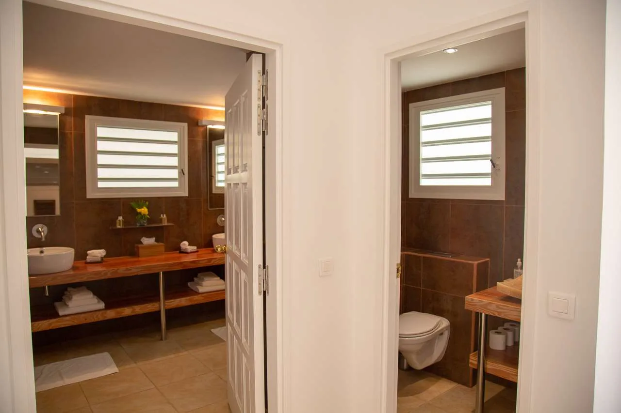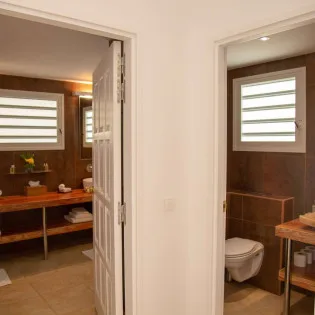 A large, modern bathroom and walk-in dressing area are also located at the entrance to Villa Tortue. When rented alongside Villa Carette (villa code: WV CAR), both properties maintain complete privacy.