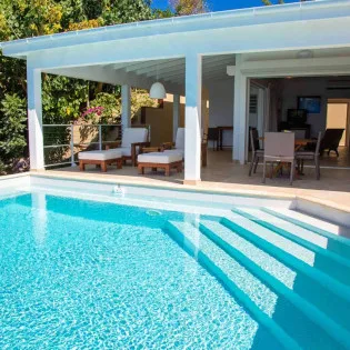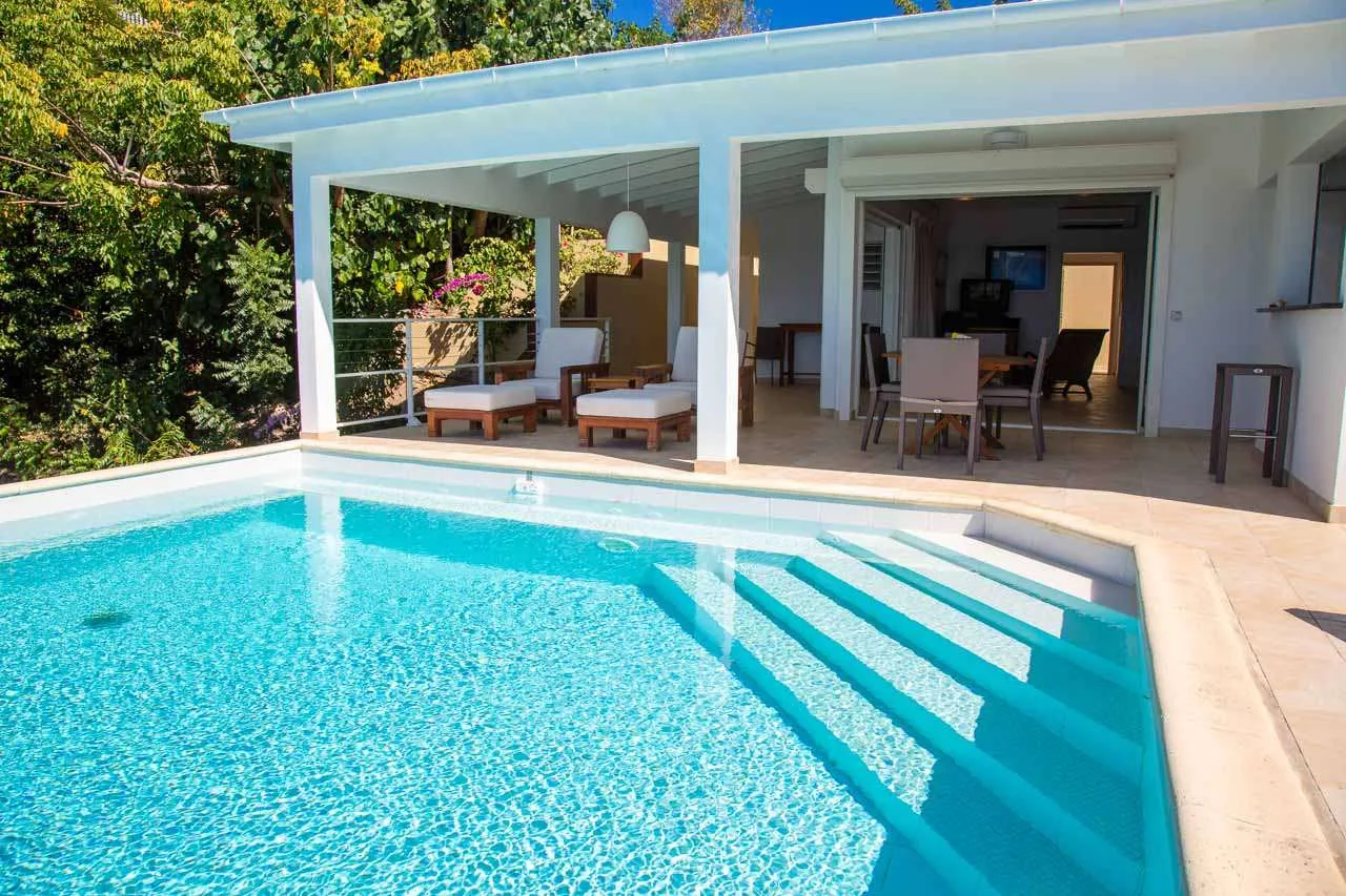 With an enviable position above Lorient Bay, Villa Tortue enjoys incredible views of the ocean and offshore islands. The beach, restaurants, and shops are all within a short drive. This villa can be rented individually or can be combined with its neighbor, Villa Carette (villa code: WV CAR), for a total of 3 bedrooms.
