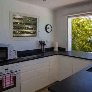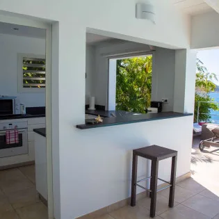 The unique layout of Villa Tortue continues with its kitchen, accessed from the covered terrace outside. The semi-alfresco setting is inspiring, giving you plenty of reasons to experiment with local recipes. Our concierge can even organize a grocery delivery, or for a special occasion, a private chef.