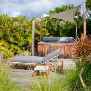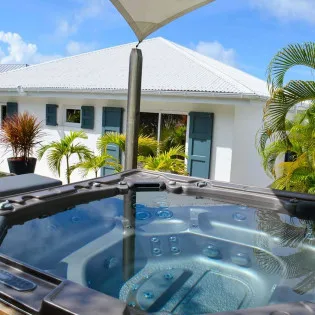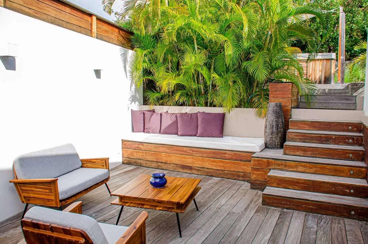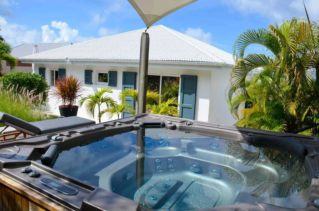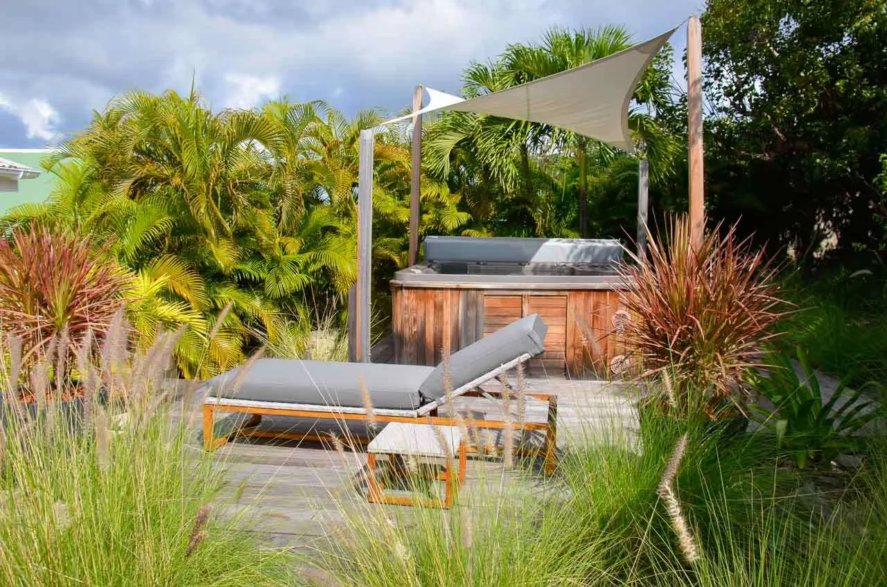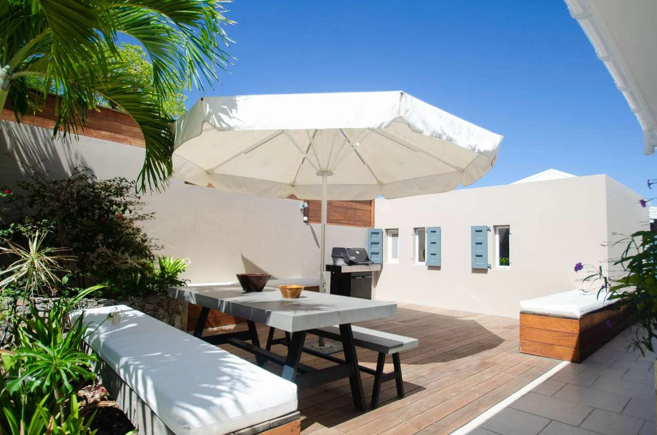 Located at the back, a private area offers a gazebo with a grill and a nearby hot tub, making this an ideal spot to entertain. For days at the beach, it’s around an 8-minute drive to Gouverneur Beach, a wild and beautiful stretch of sand on the south coast of St. Barts.