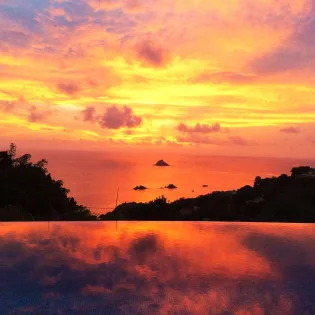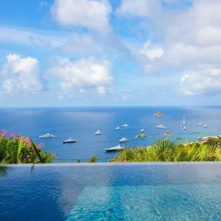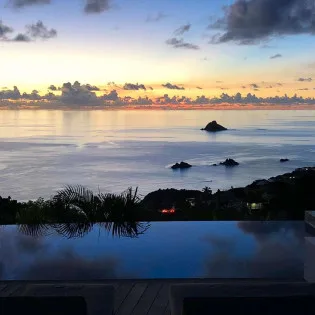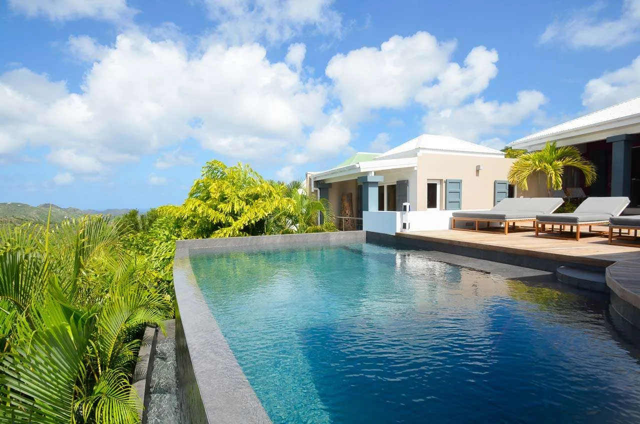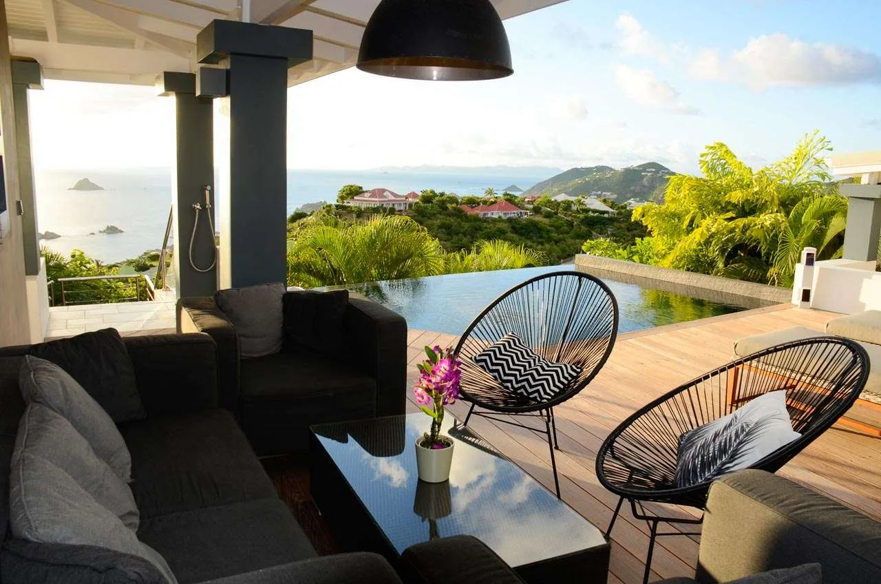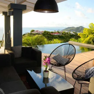 Welcome to Villa Vague Bleue (villa code: WV VLC), an idyllic 3-bedroom villa located in Lurin, St. Barts. This modern villa enjoys spectacular sunsets and views over the Caribbean, hills, and surrounding islands.