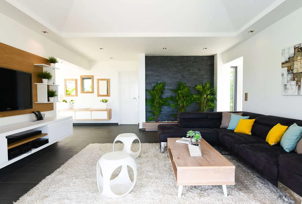 As you enter Villa Valley, you’ll immediately notice the long and flowing open-plan design. A long hallway connects the cozy living room with the combined kitchen and dining area, with access to the pool terrace from every room.