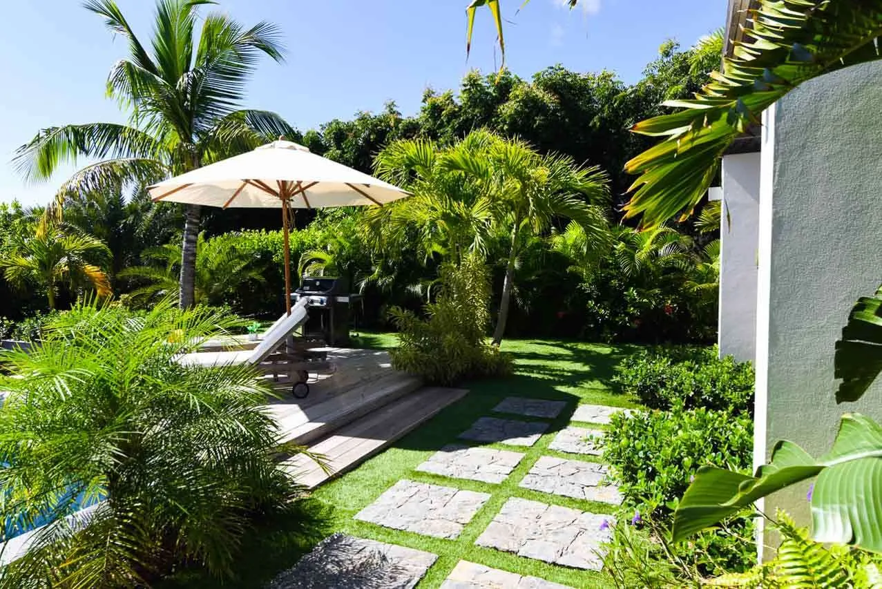 Sunseekers will want to set up on the loungers lining the water, letting you enjoy the glorious weather on St. Barts. The deck extends towards a small garden of swaying palms, where a gas grill offers the option to grill some fresh fish or succulent steaks.