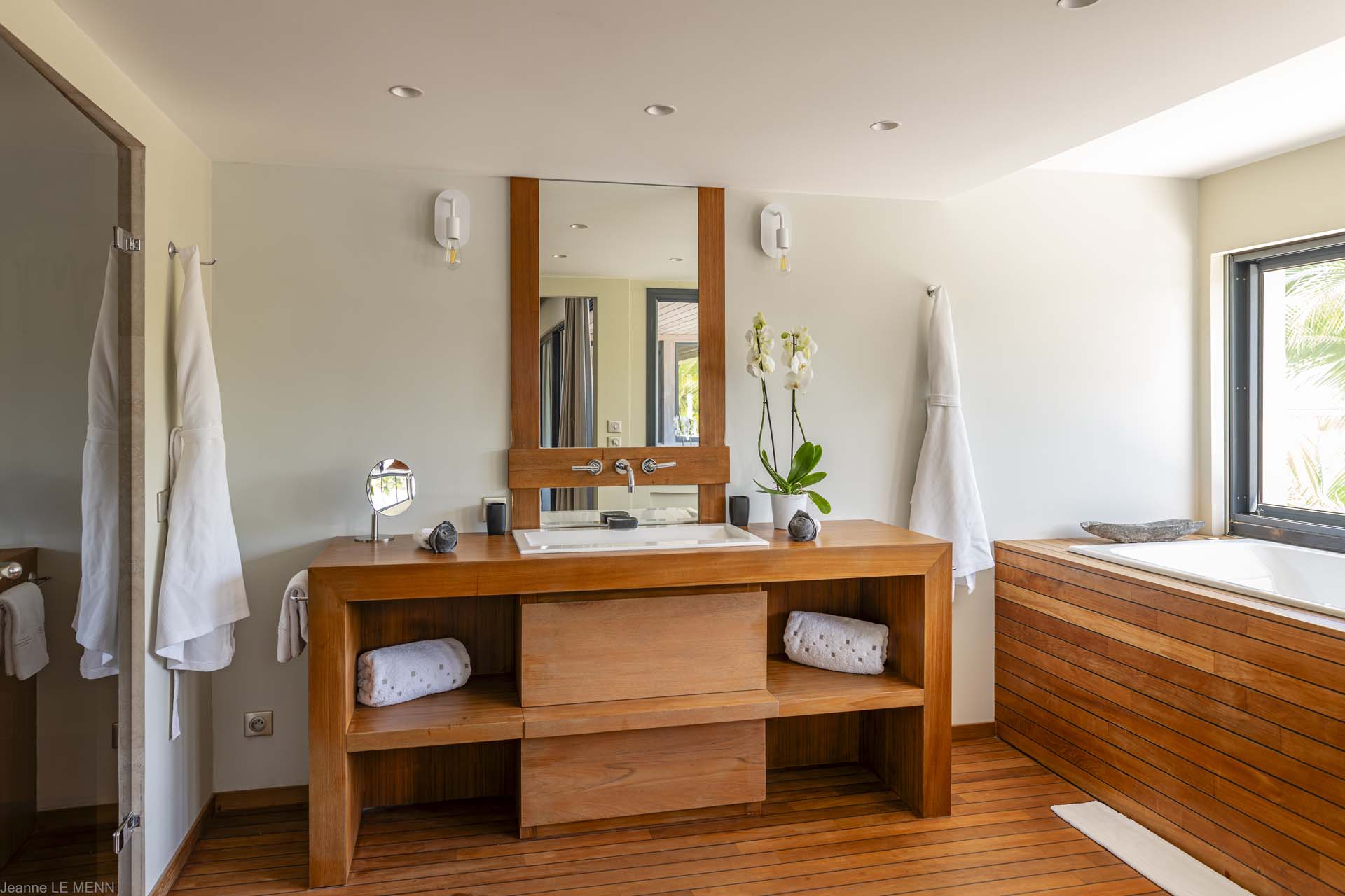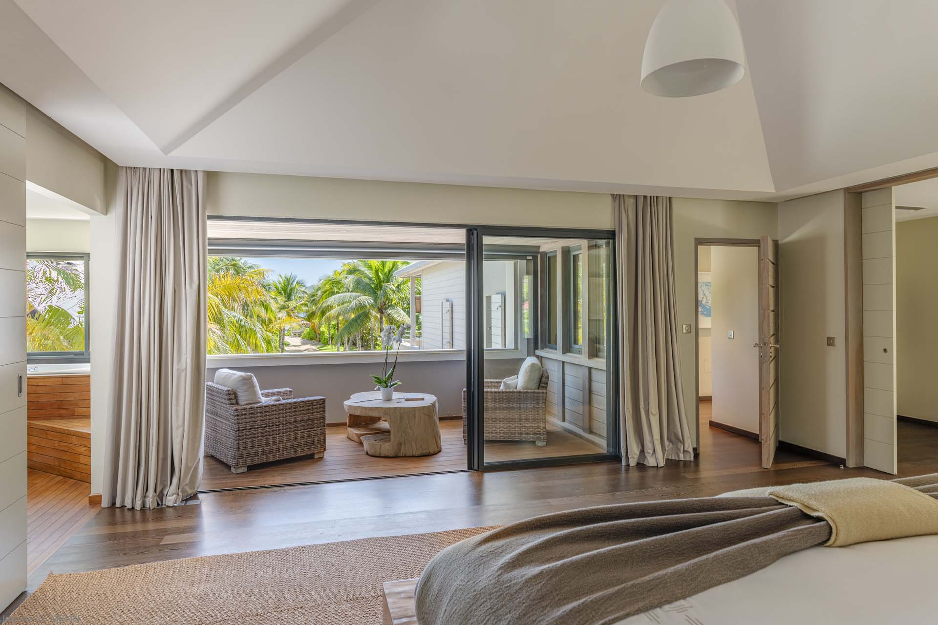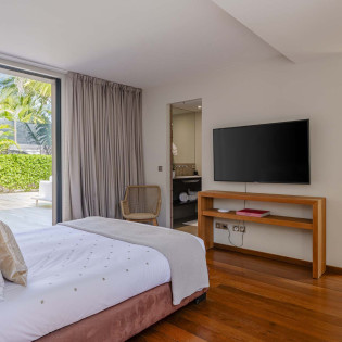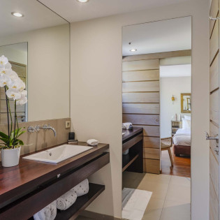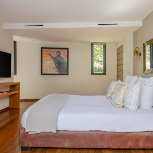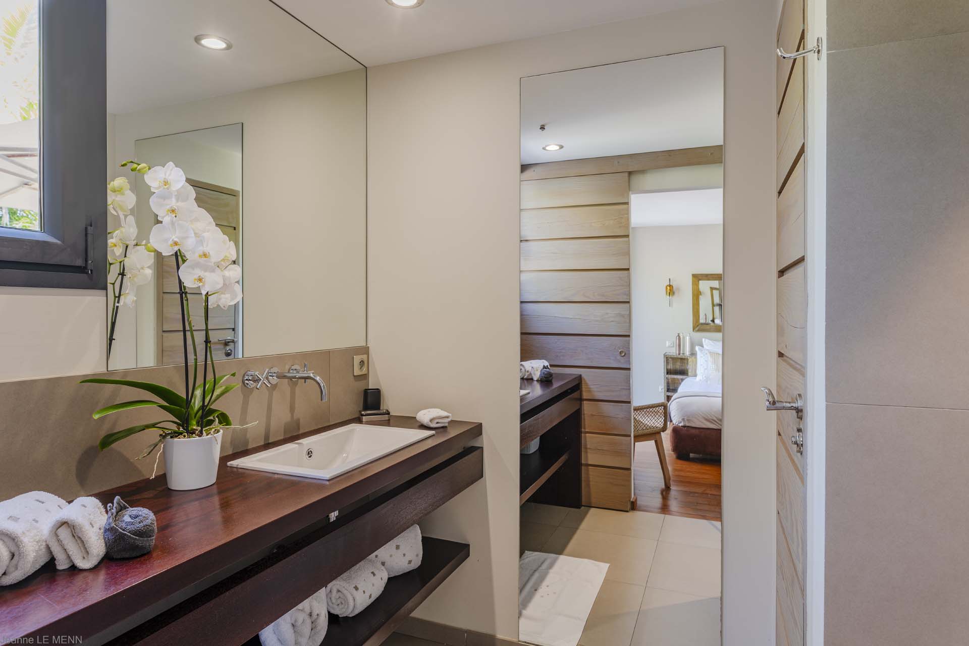The 2 other bedrooms are located on the main level and each has a queen-size bed, ensuite bathroom, and private entrance via the terrace.