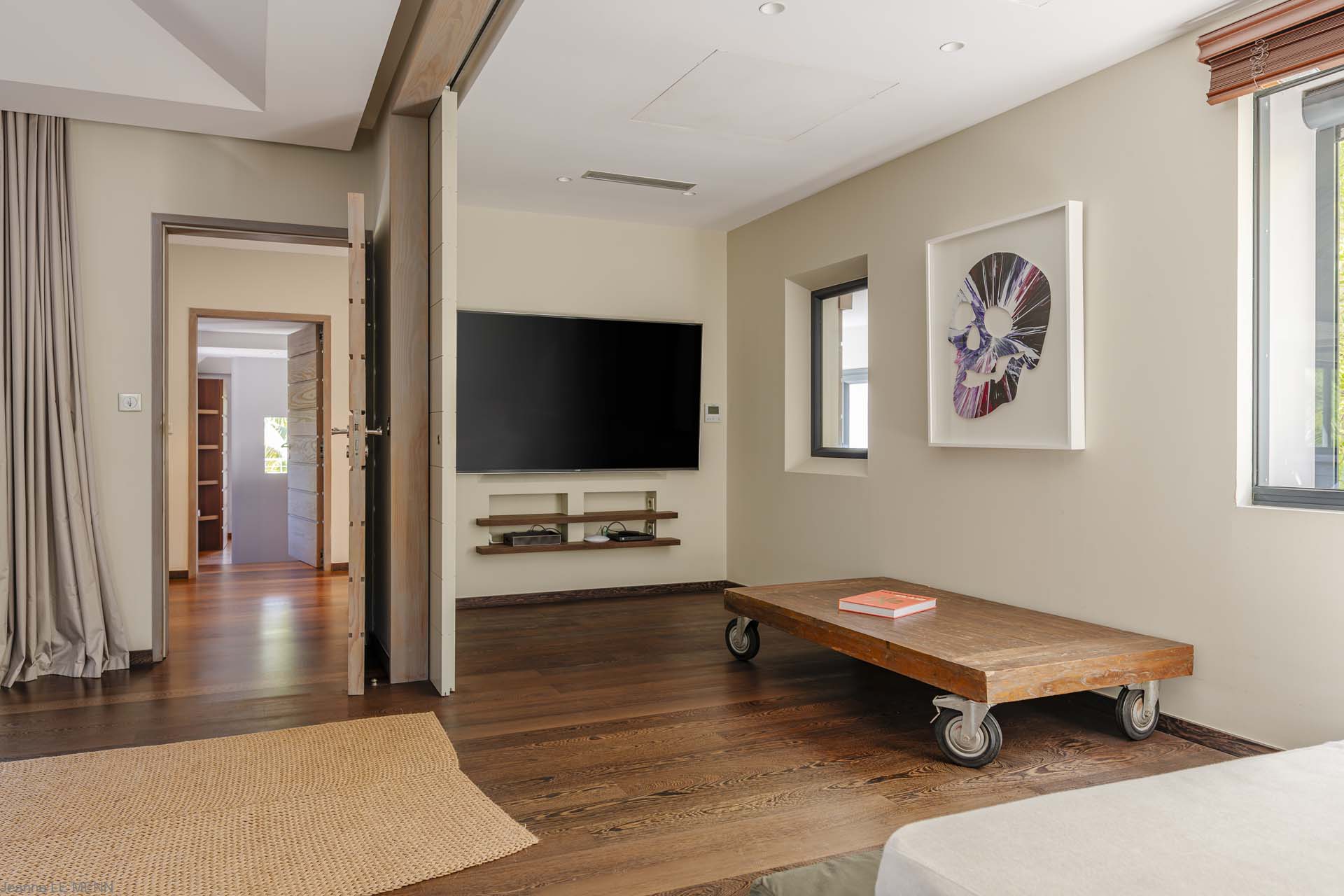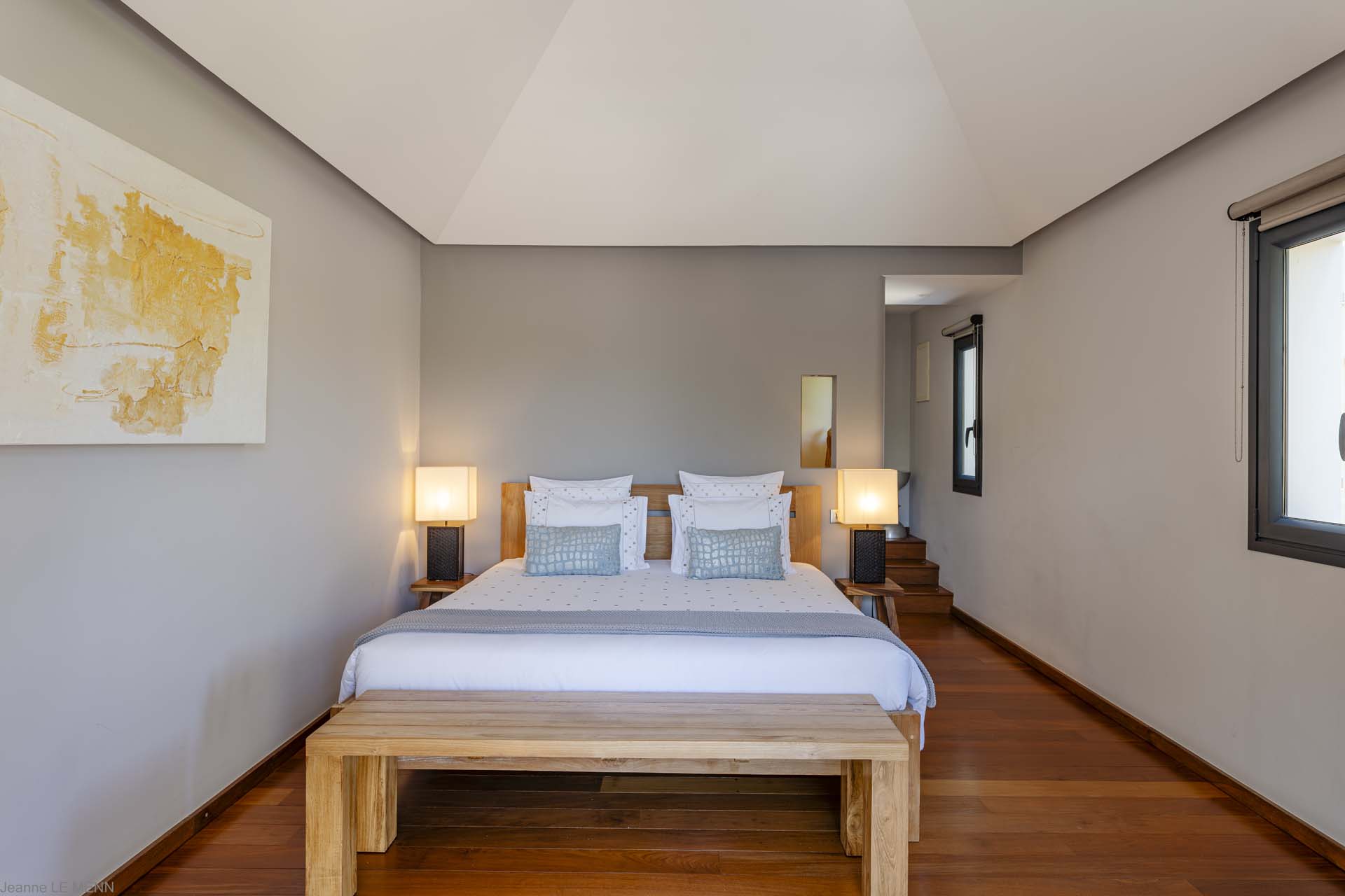 The 2 main bedrooms occupy the entire upper floor and feature ensuite bathrooms and private terraces with sea views. The two bedrooms come with king-size beds.