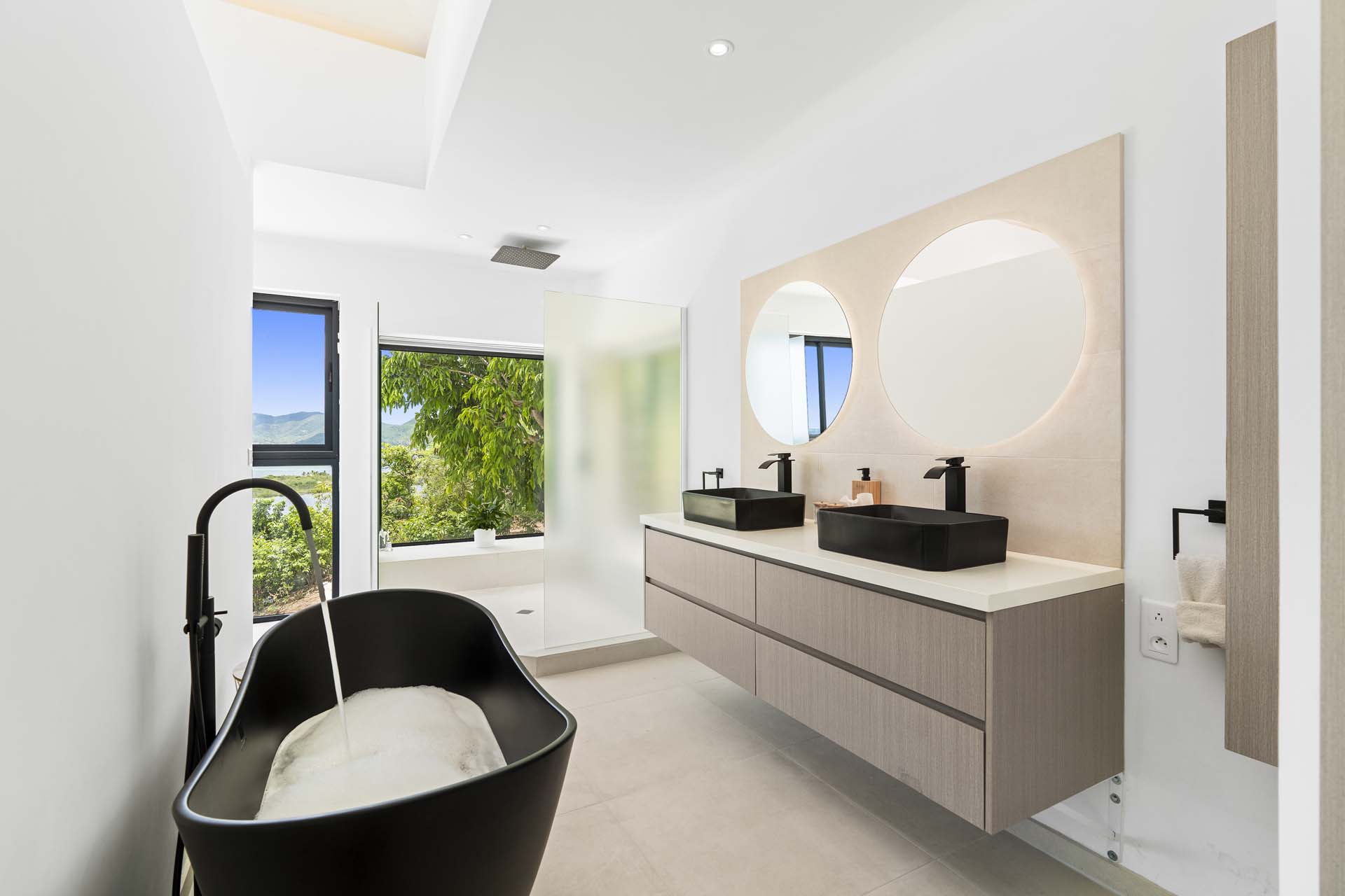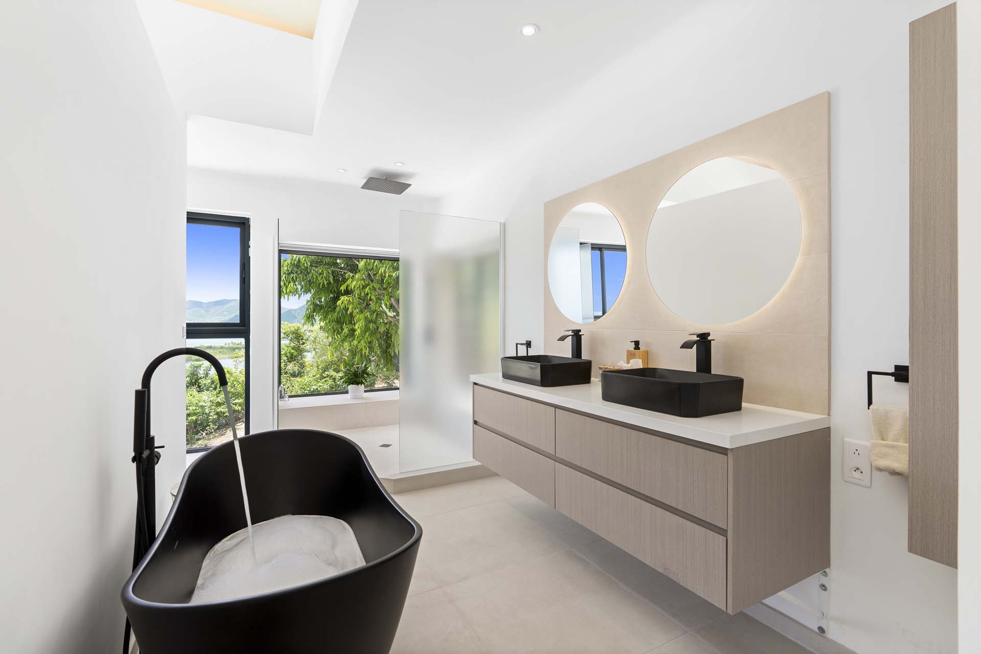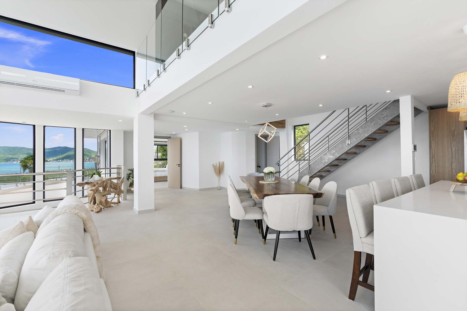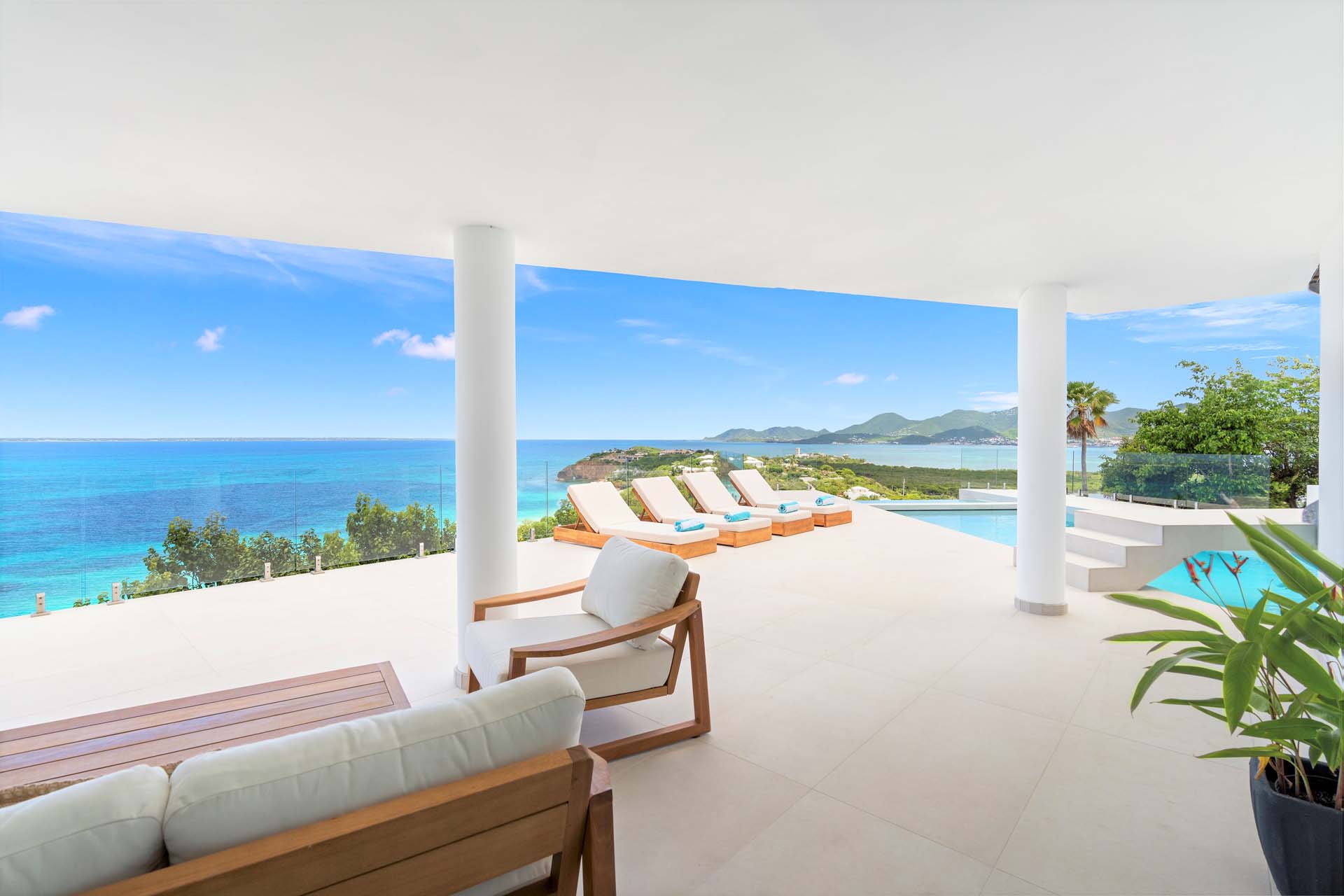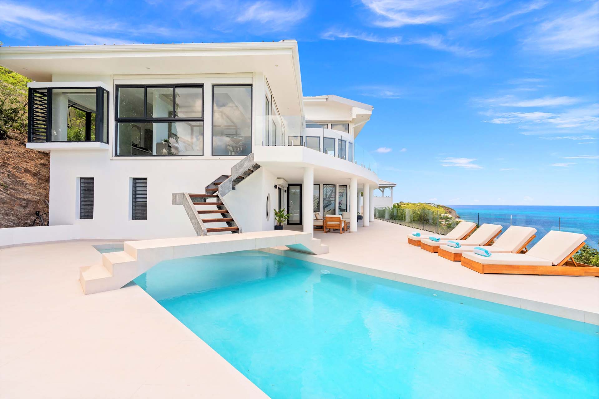 This stunning villa perfectly embodies the essence of a tropical paradise. Perched high above Baie Rouge, it offers breathtaking vistas of both the Caribbean Sea and the Atlantic Ocean. Moreover, you can relish the picturesque contours of St. Martin's coastline from this elevated vantage point.