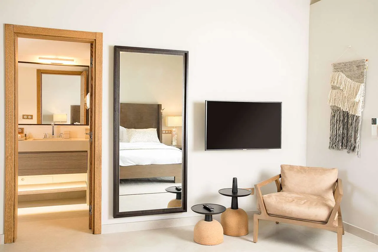 Leading off the main terrace living space are the five-bedroom suites, a guest bathroom, and a cork-lined media room equipped with 82” smart TV and Bose surround sound Home Theatre system.