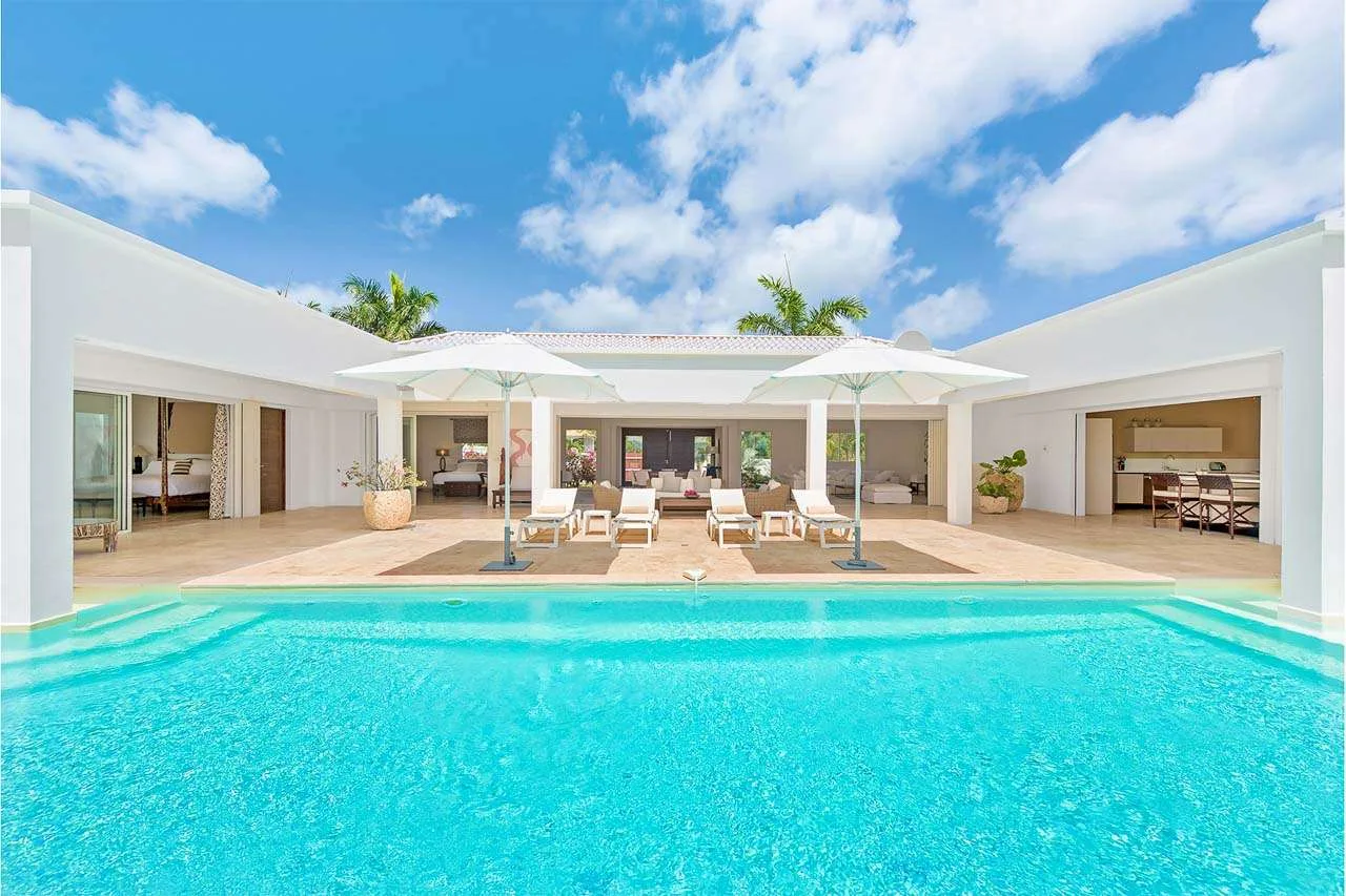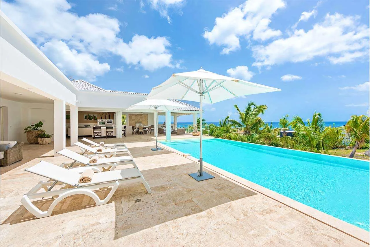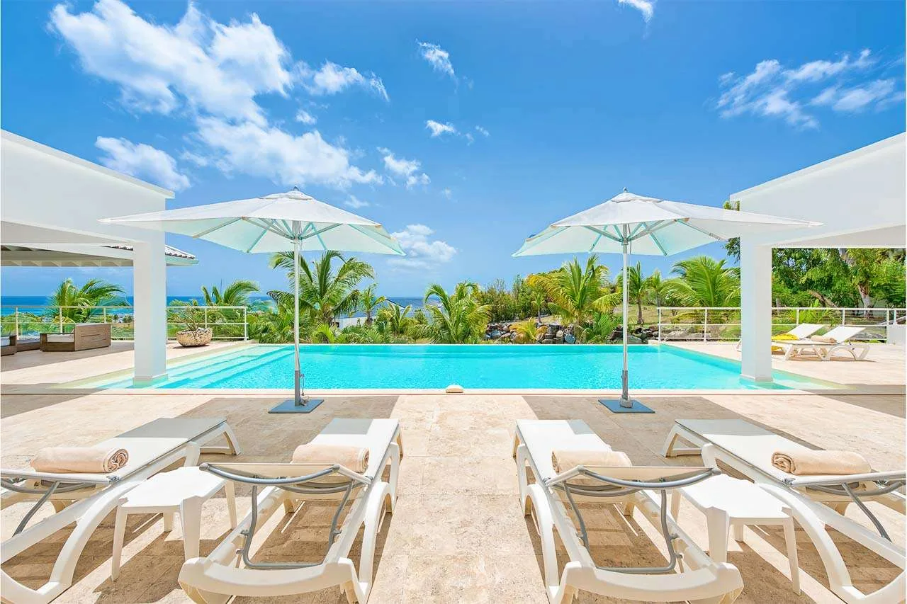 Villa Bamboo, (villa code: PIE BAM), is a chic and modern 2-bedroom villa located in exclusive Terres Basses within minutes of the beach and shopping. Surrounded by landscaped grounds, this spacious and modern villa overlooks the ocean.