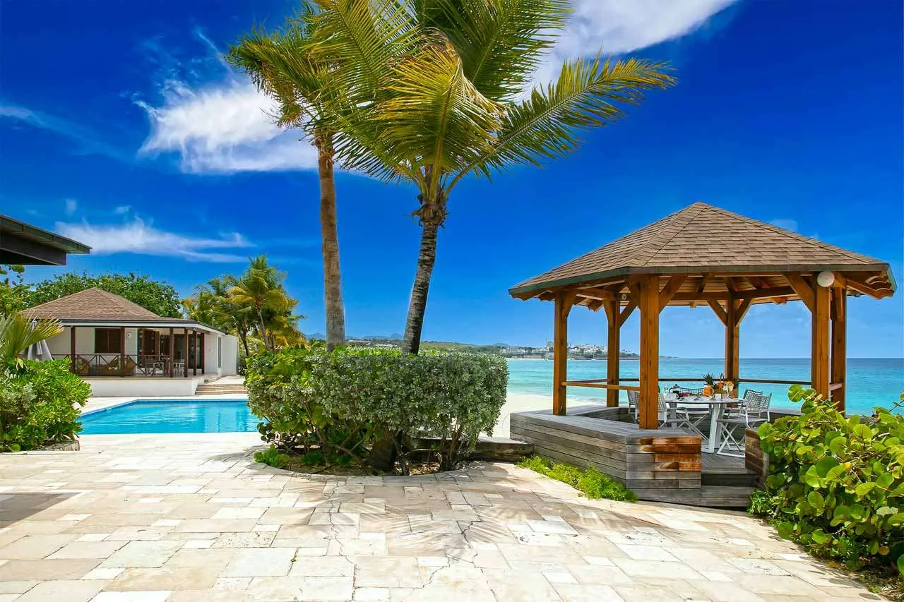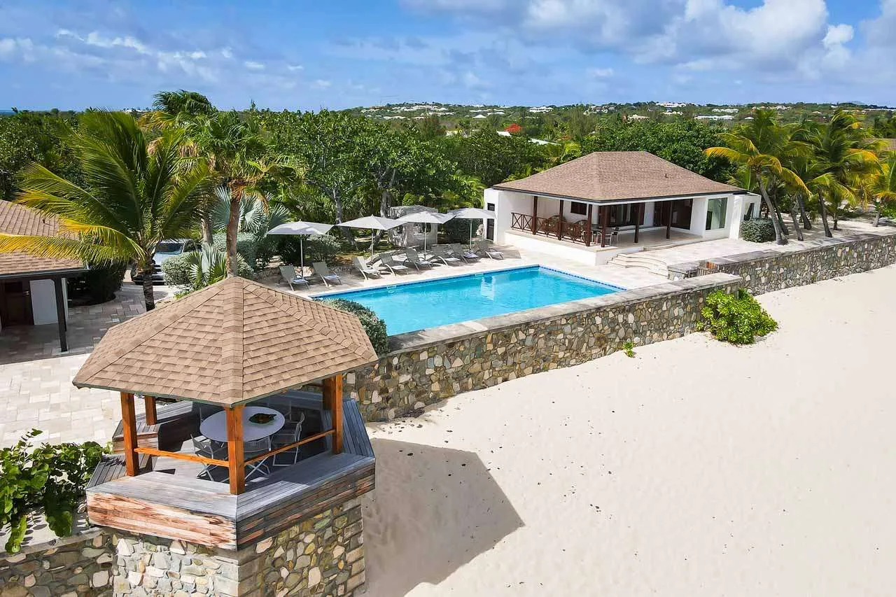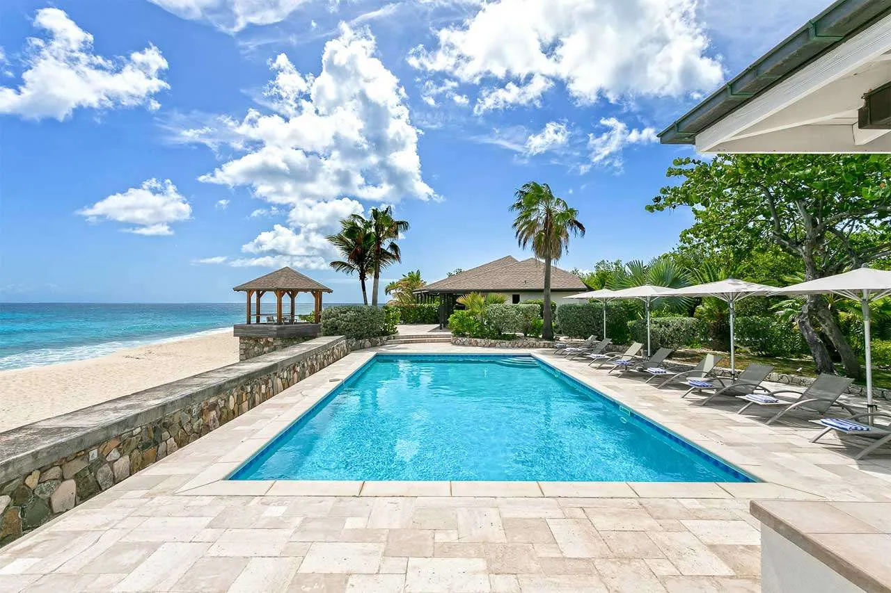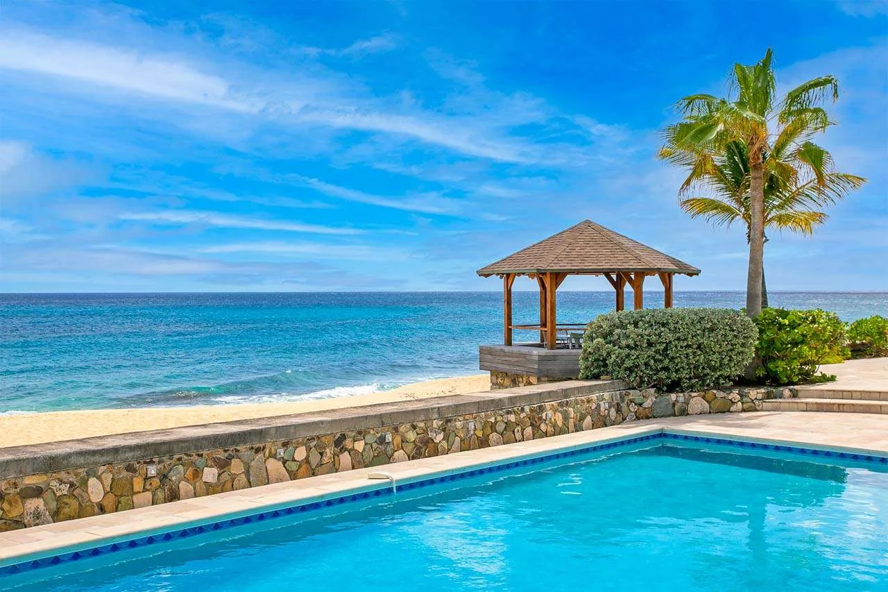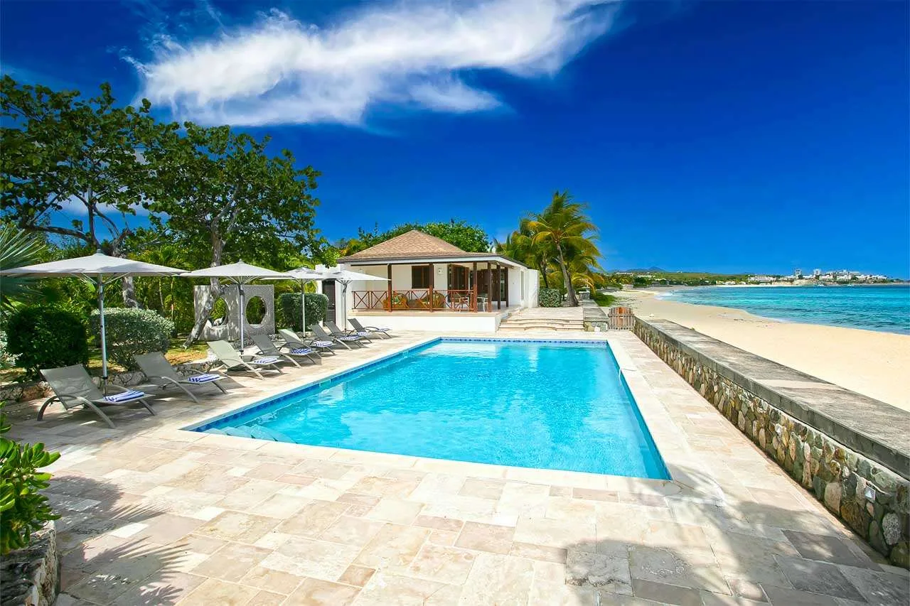 Villa Blue Beach, (villa code: PIE DRE) sits directly on the magnificent beach of Baie Longue, this newly-refurbished 4-bedroom beach home offers a generous beach front pool, an expansive deck with an outdoor shower and a beach front gazebo for Caribbean living at its very best.