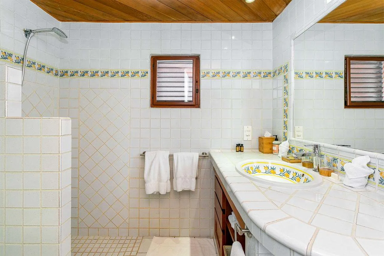 Two completely refurbished bedrooms with adjoining air-conditioned bathrooms complete the main house and a cottage at the end of the pool houses the two remaining bedrooms and baths. All four air-conditioned bedrooms are equally sized and are equipped with TV’s and Netflix.