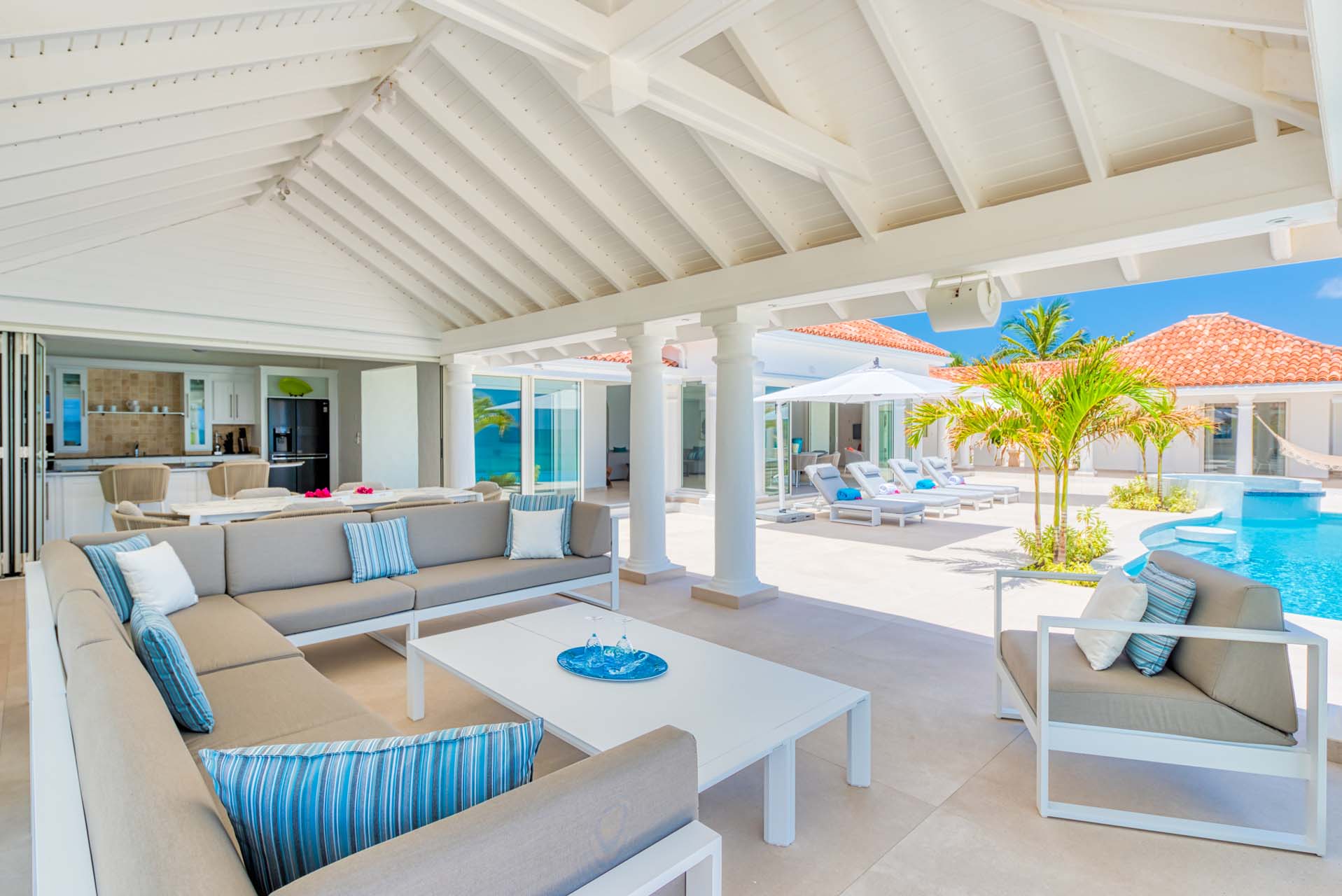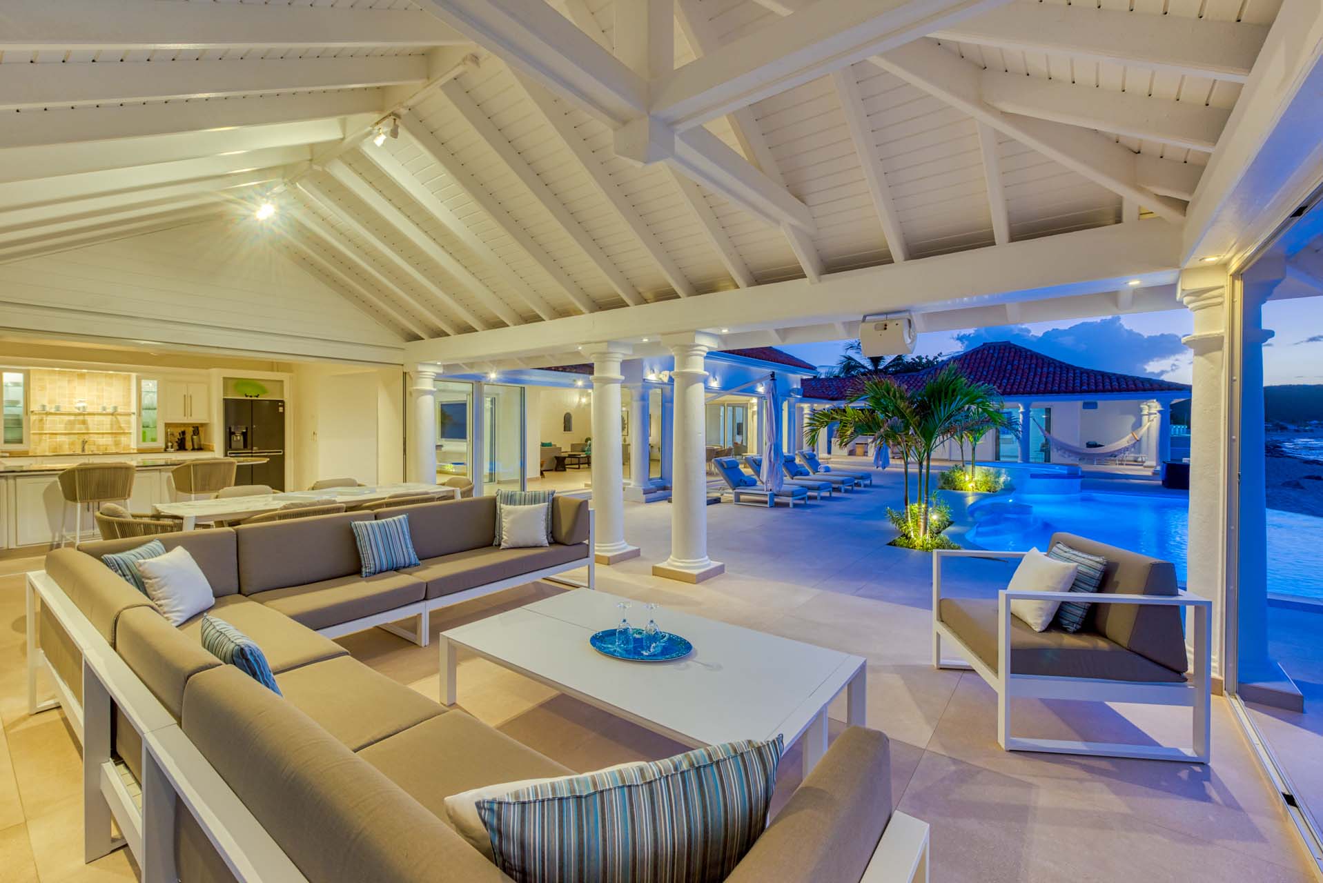 Villa Carisa is thoughtfully designed to showcase sweeping views of the Caribbean Sea and the nearby island of Anguilla in the distance. A high-end audio system sets the perfect ambiance, with music flowing effortlessly throughout the air-conditioned interiors, the poolside gazebo, and the heated swimming pool.