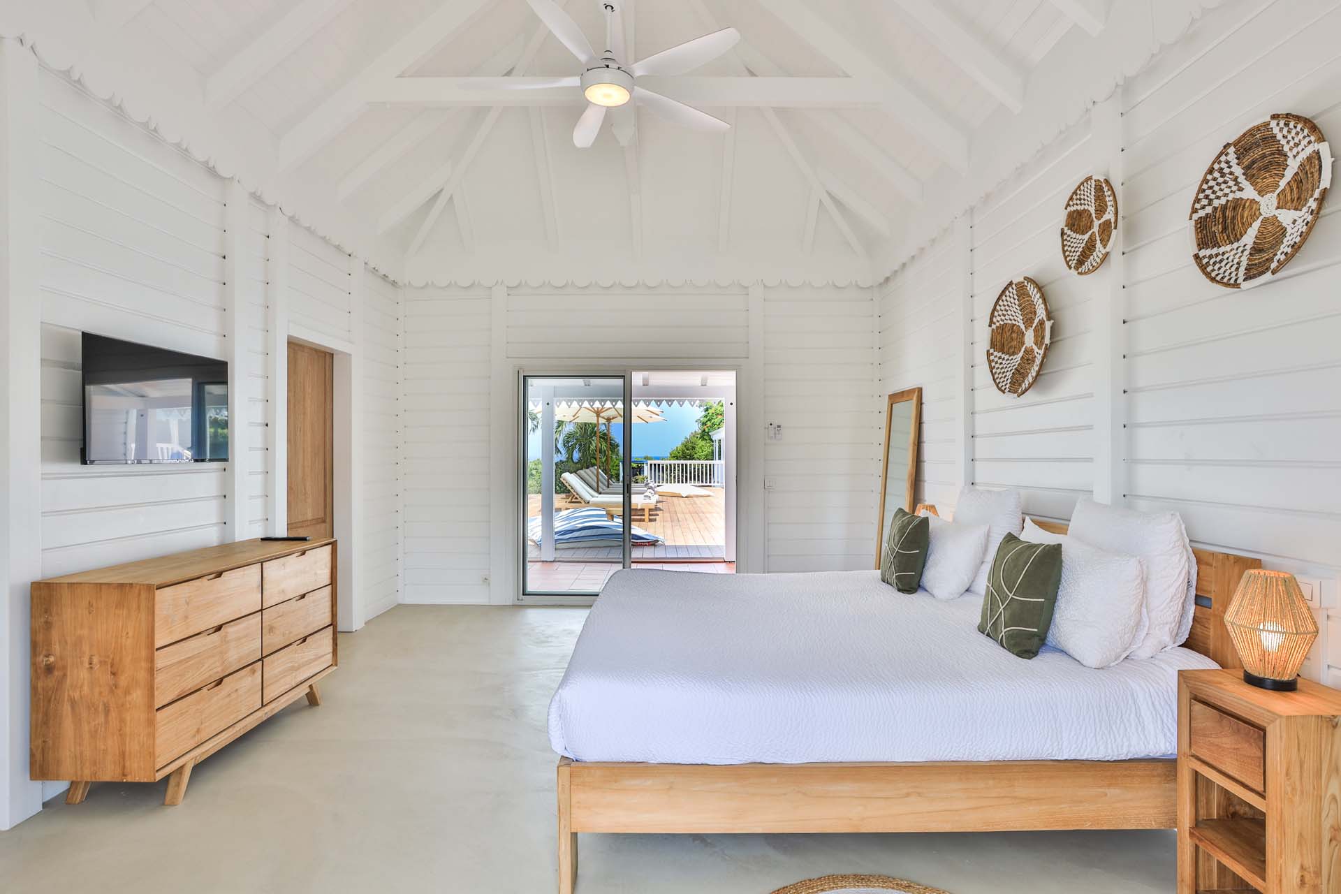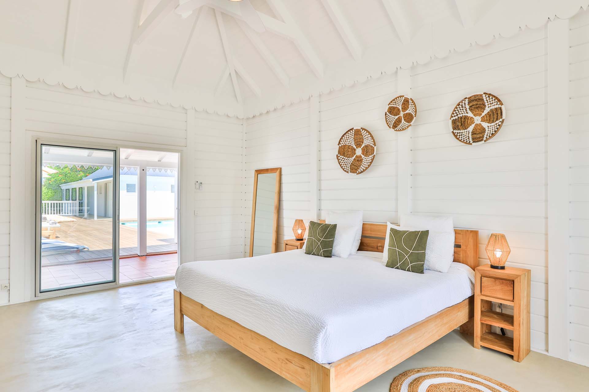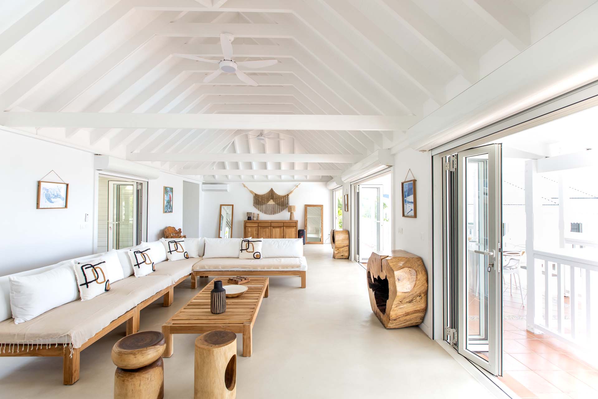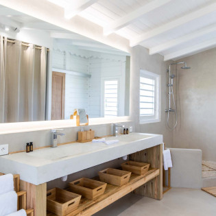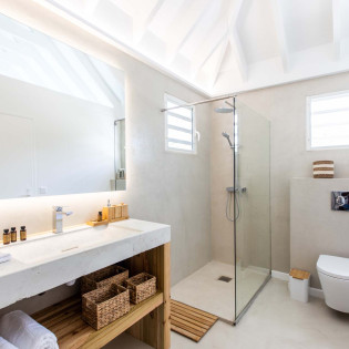 Upon stepping into Villa Coco Paillette, guests are immediately struck by the villa's contemporary Caribbean chic design. The interiors have been meticulously crafted to harmonize with the natural beauty of the surroundings. Vaulted ceilings, an open floor plan, and large glass doors seamlessly blend indoor and outdoor living, inviting the island's gentle breezes and sunlight to permeate every corner.