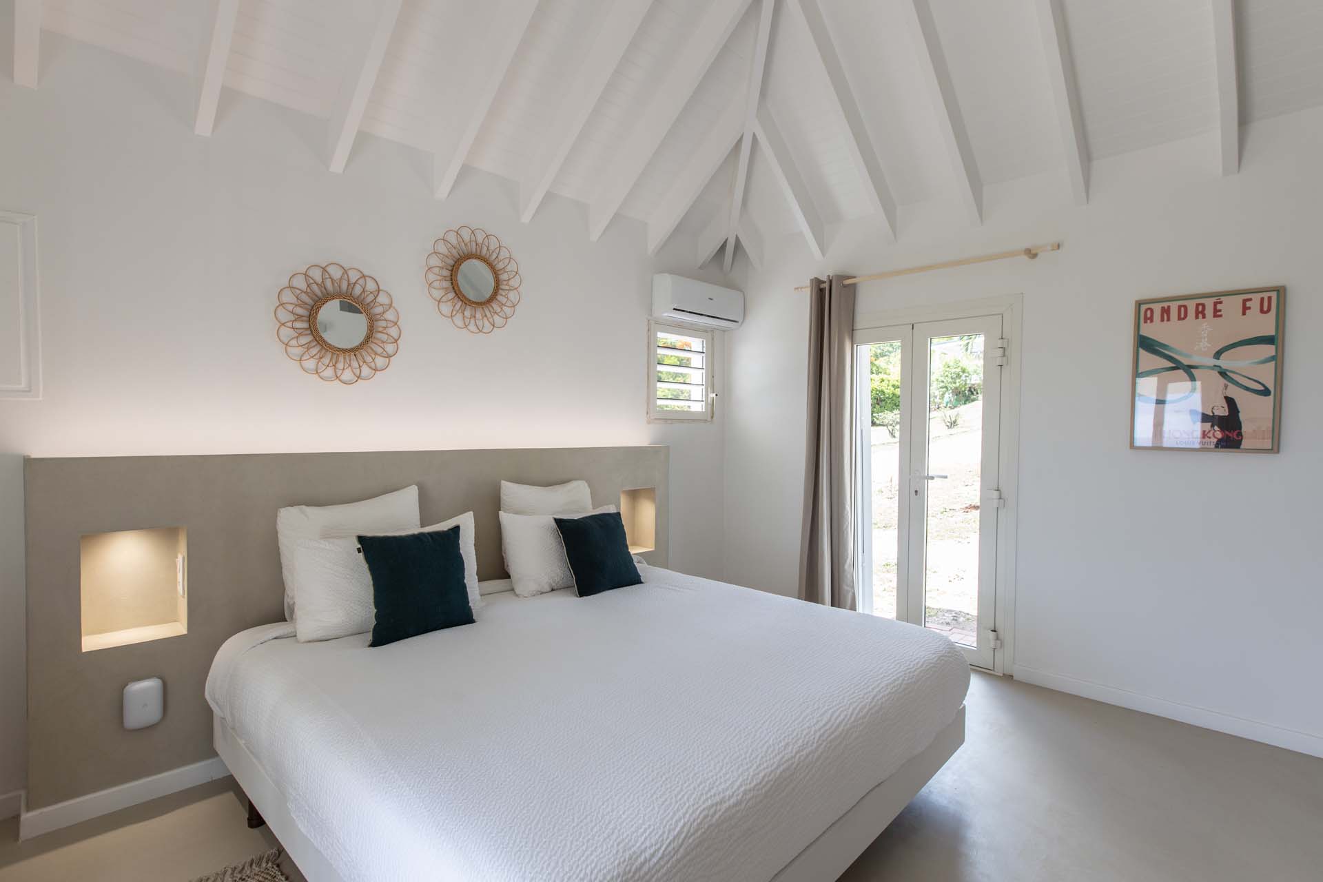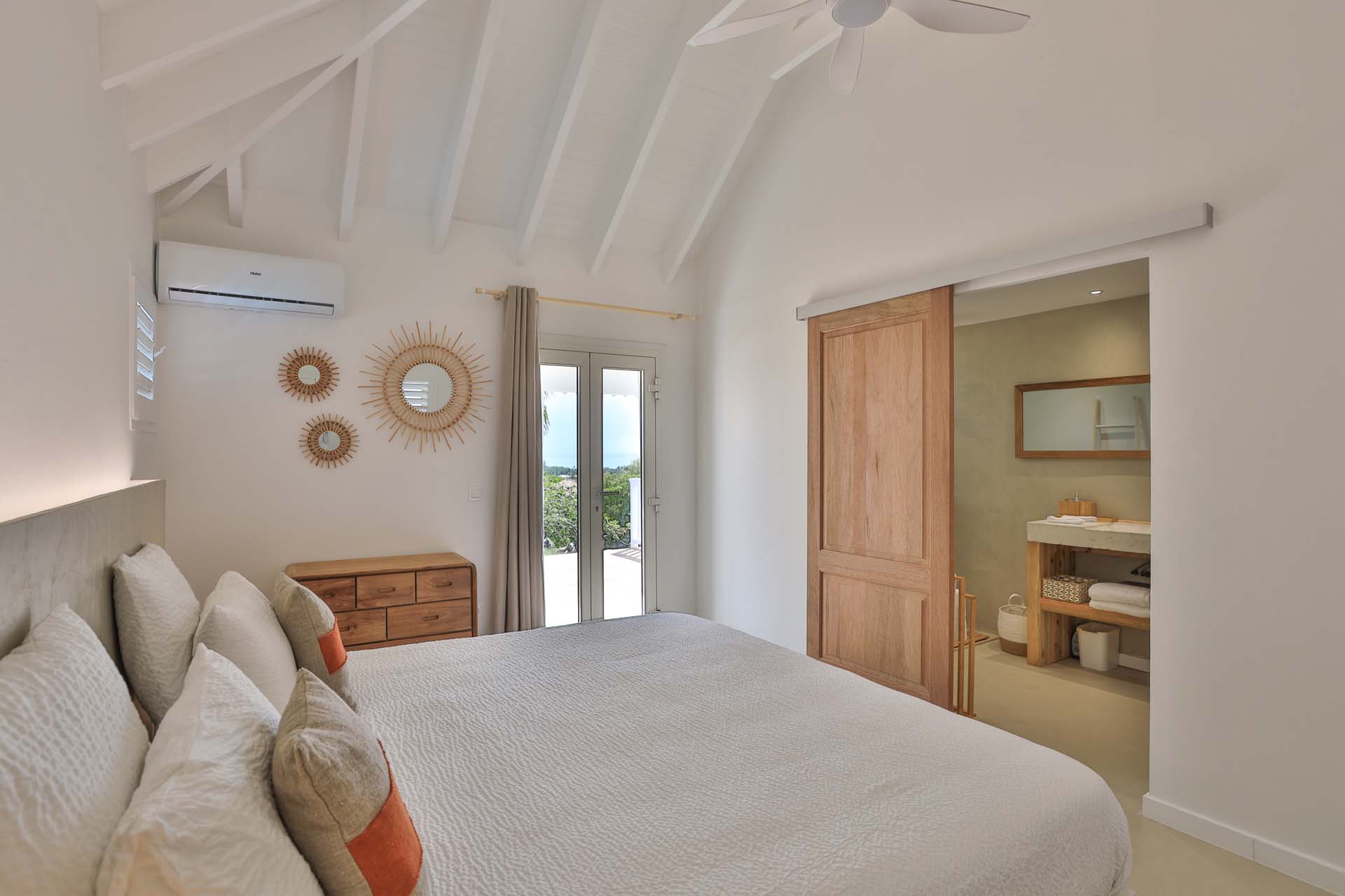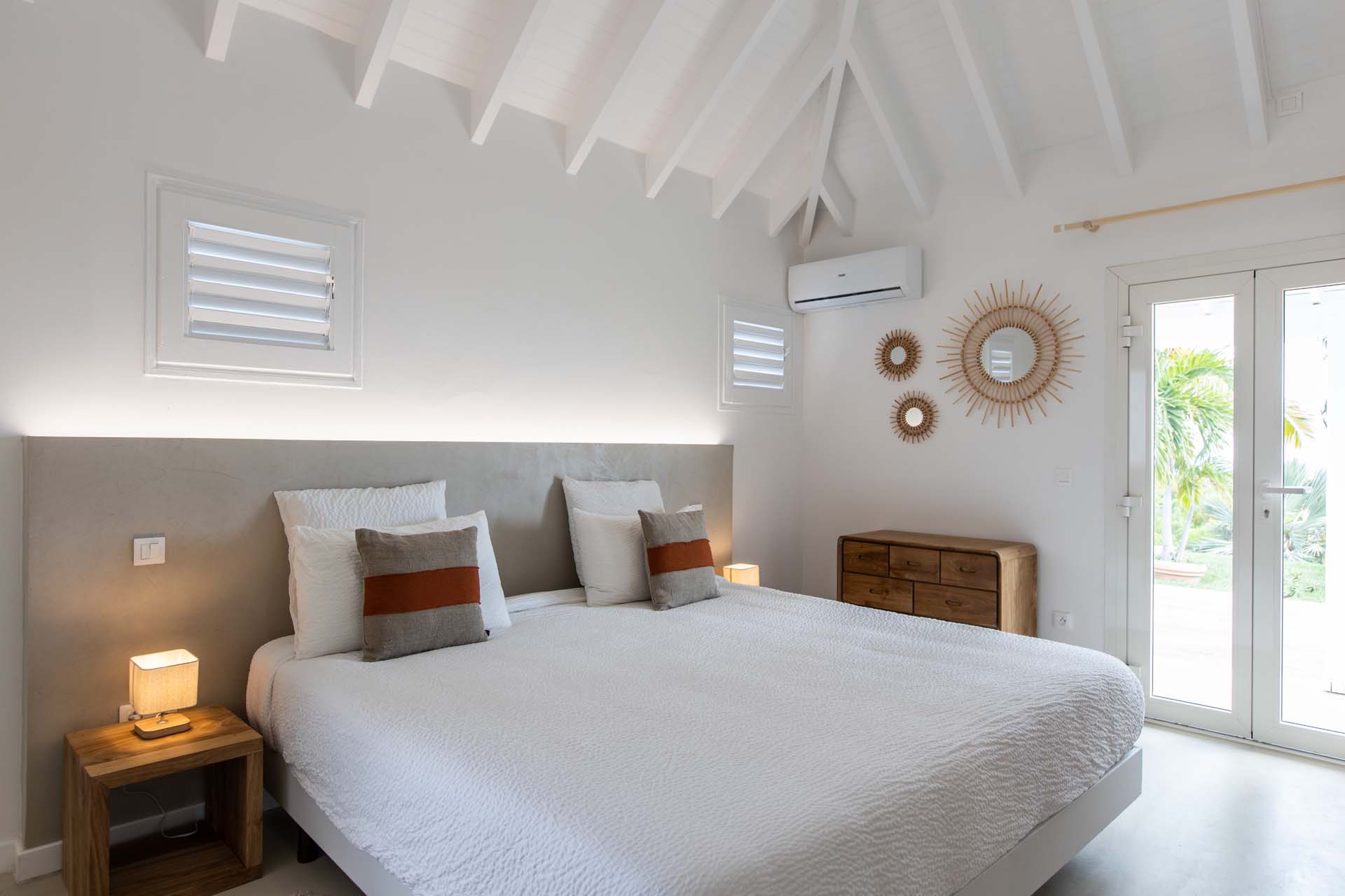 King bed, A/C, Ceiling fan, Ensuite Bathroom, TV, Safe, Opens onto terrace