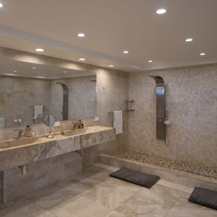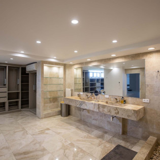 On the pool/terrace level, you'll find three of the bedrooms, and the master suite is situated on a lower level. The master suite features a gourmet kitchen and a spacious dressing room, adding an extra touch of luxury to your stay.