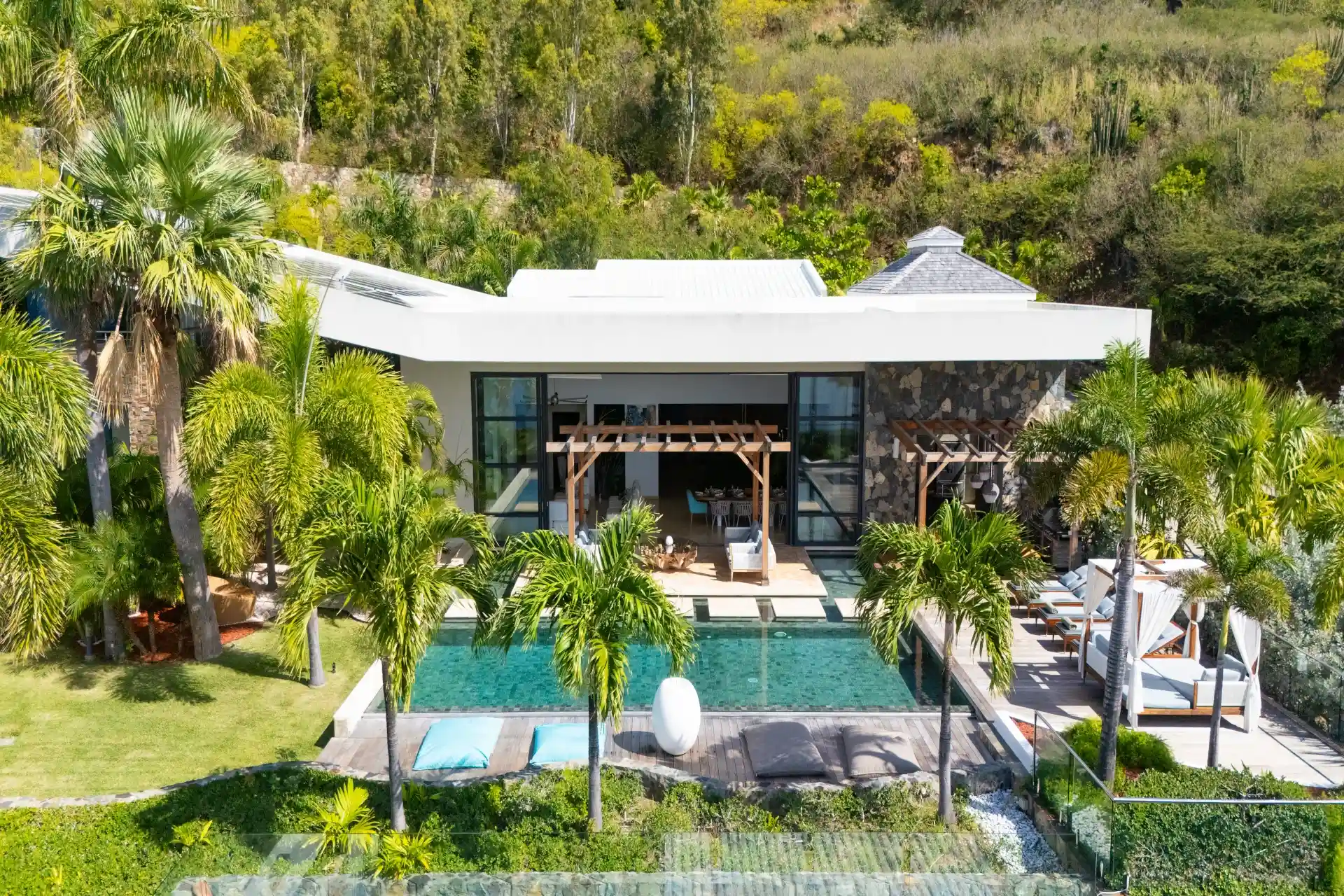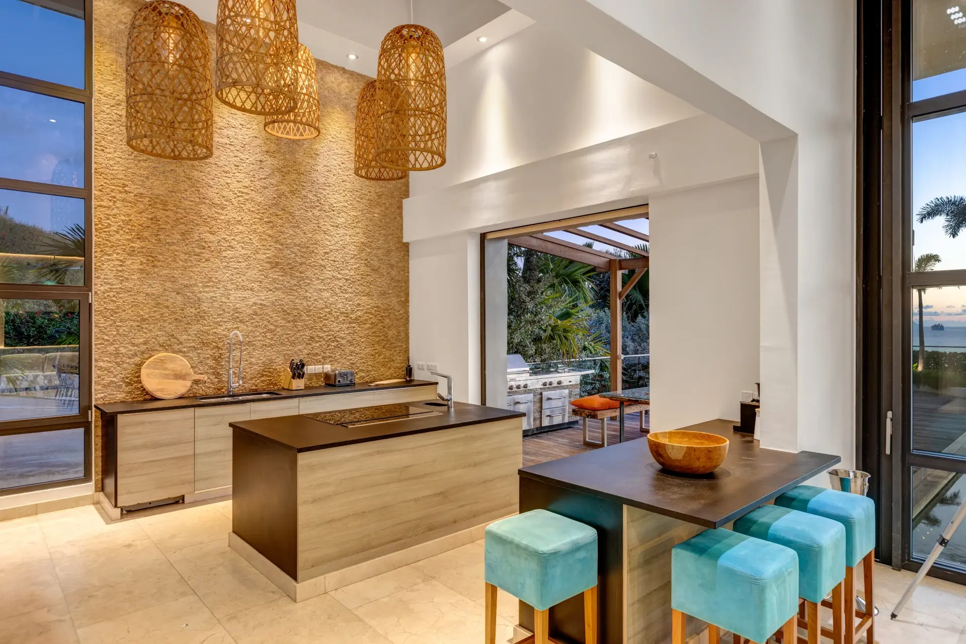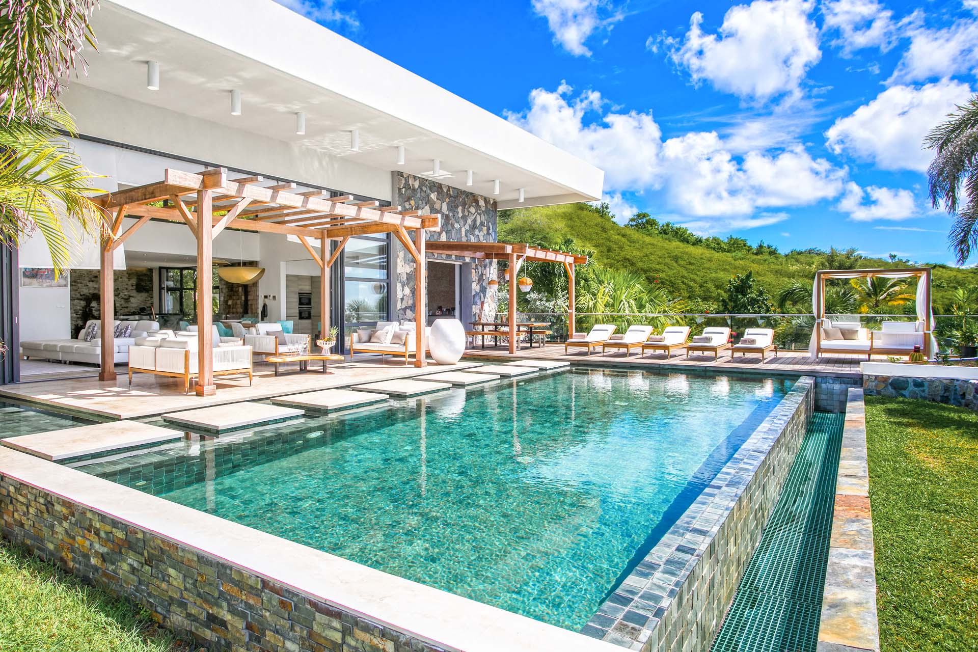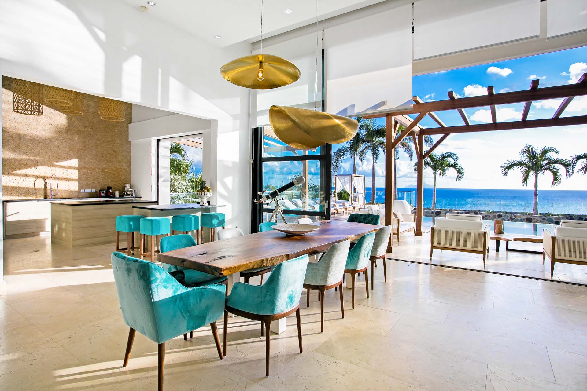 Villa Emeraude, (villa code: SXM EMR), is a 5-bedroom home set in the hillside of Indigo Bay. Here you will find breathtaking views of the Caribbean Sea and Saba island in the distance. This modern family home has large open spaces, high-end furnishings and all the amenities one would need on a tropical holiday.