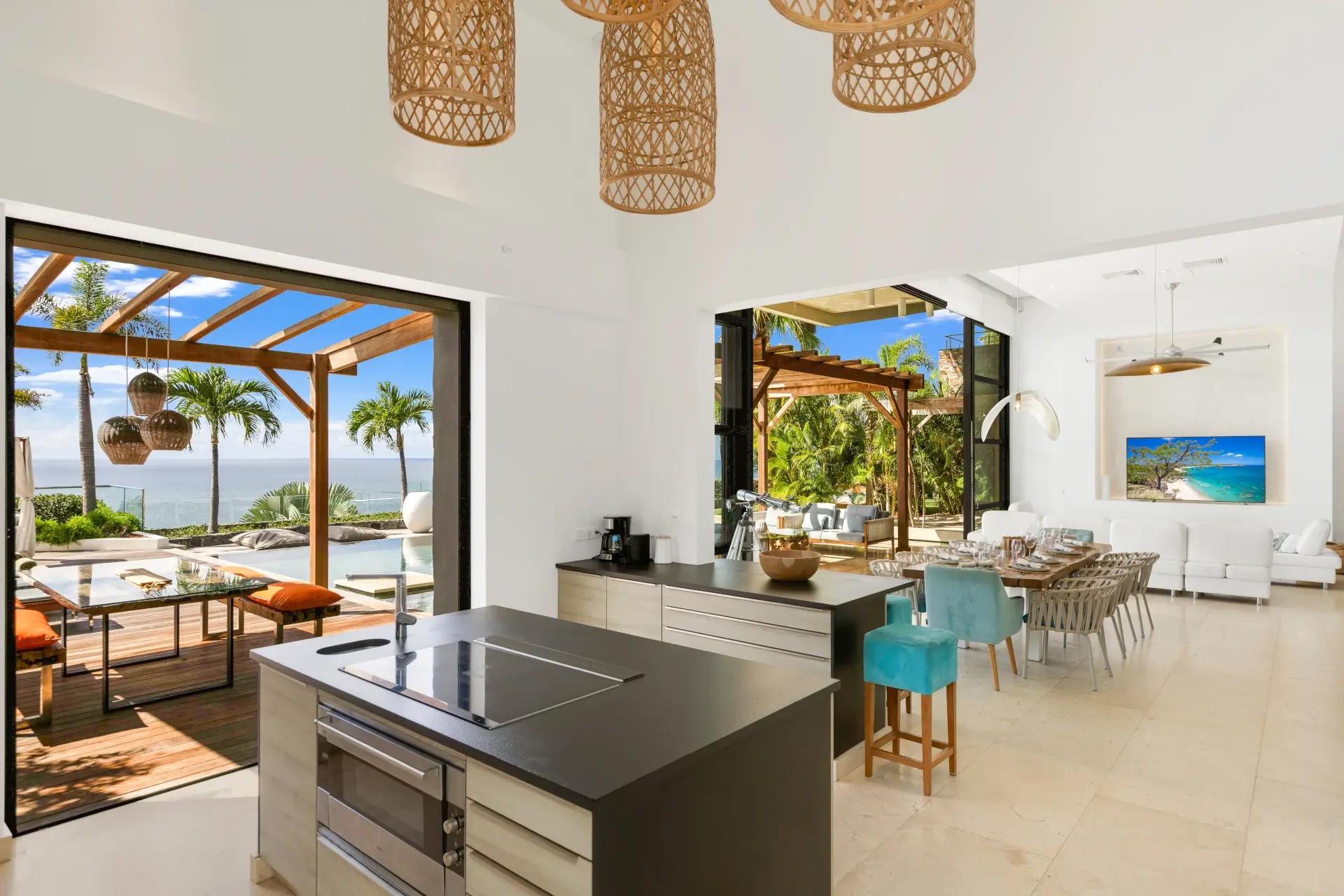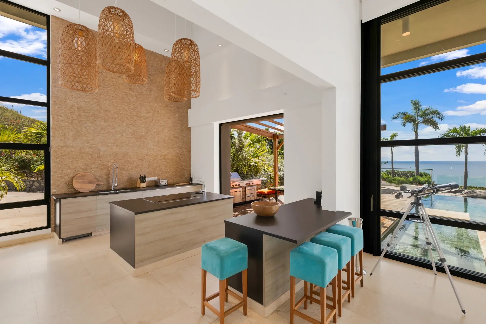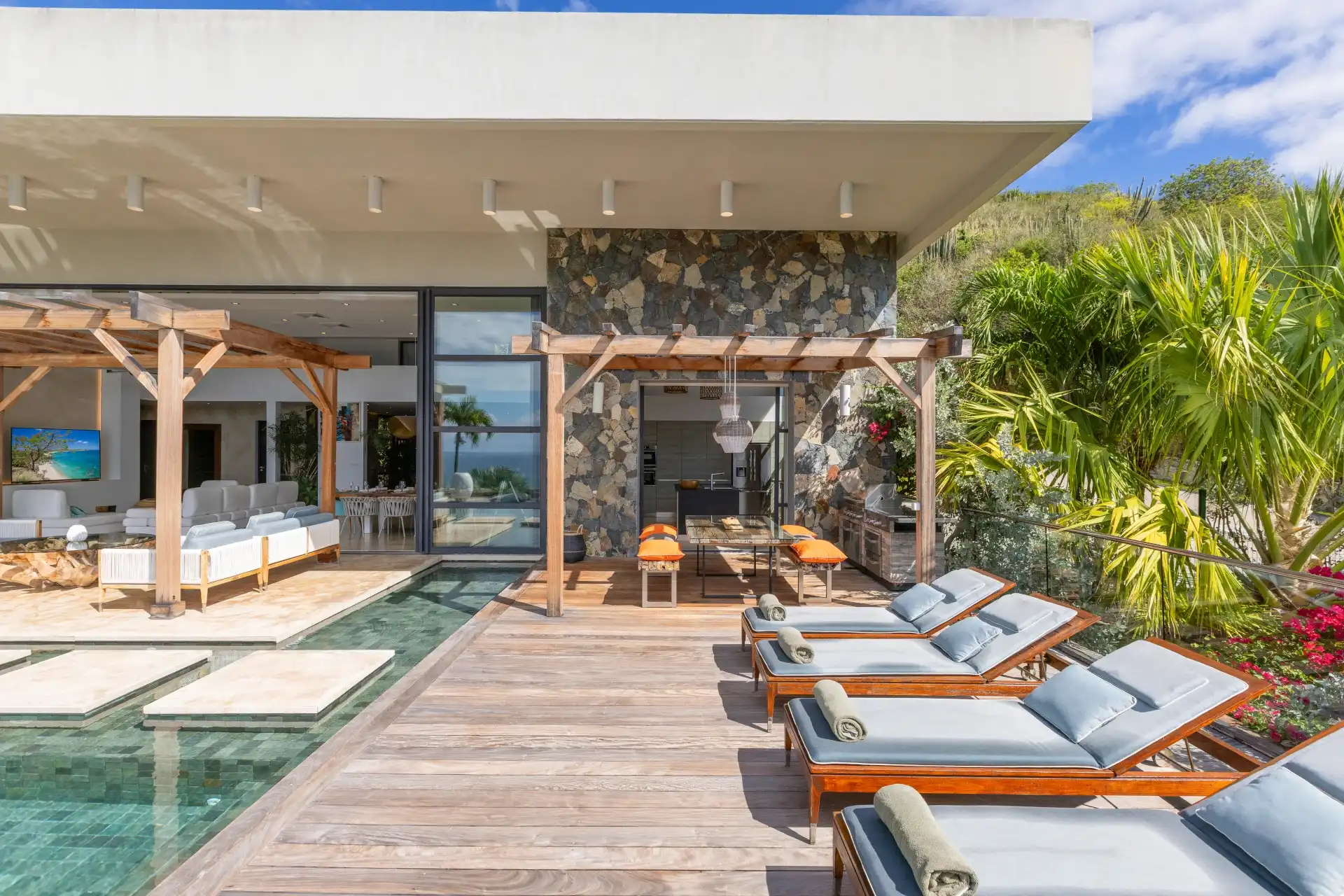 Villa Emeraude, (villa code: SXM EMR), is a 5-bedroom home set in the hillside of Indigo Bay. Here you will find breathtaking views of the Caribbean Sea and Saba island in the distance. This modern family home has large open spaces, high-end furnishings and all the amenities one would need on a tropical holiday.