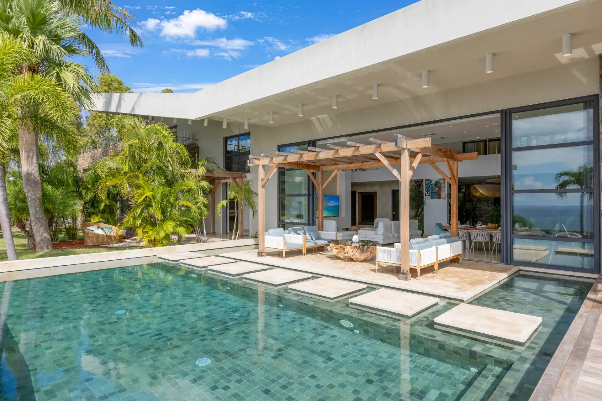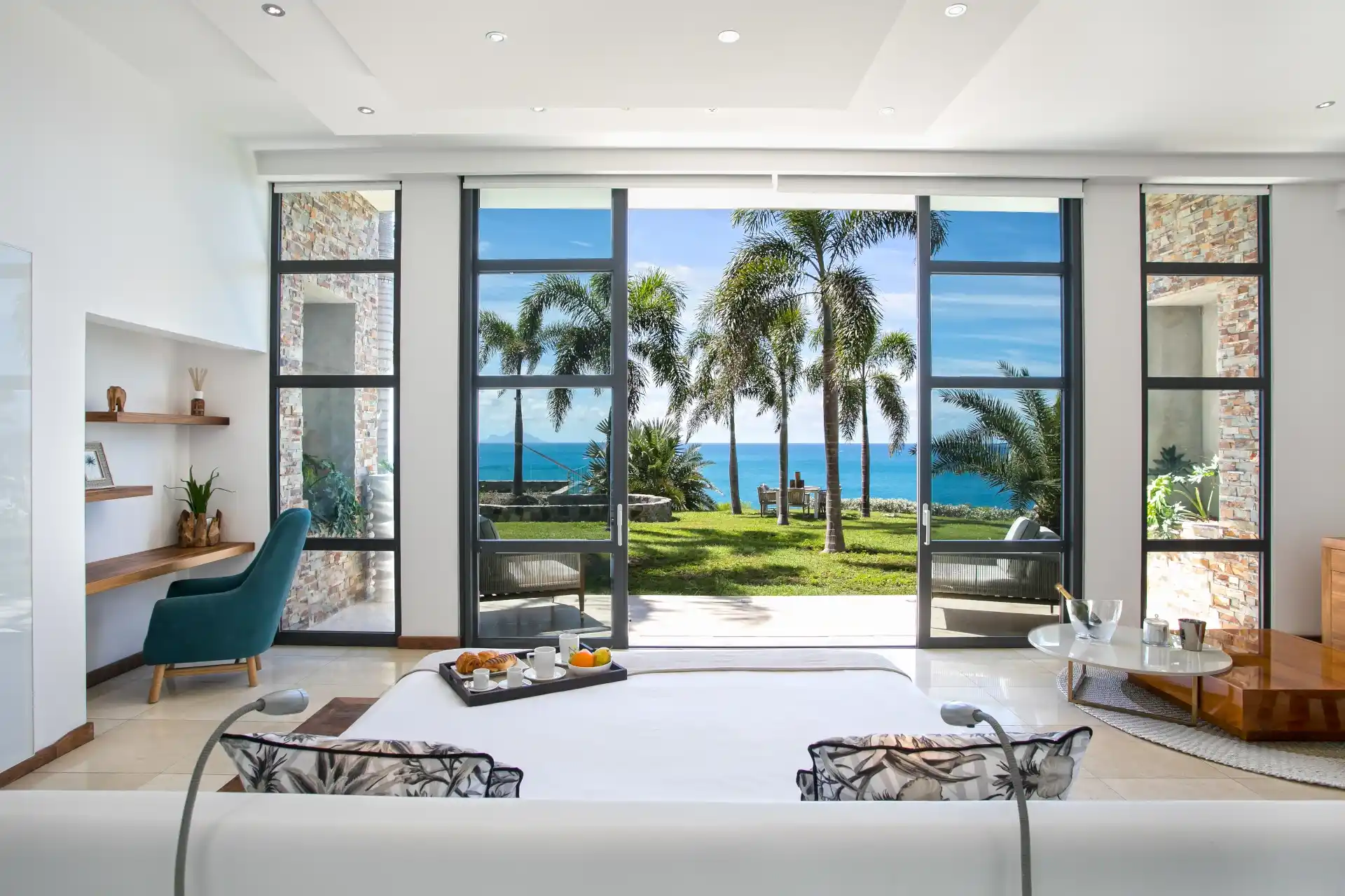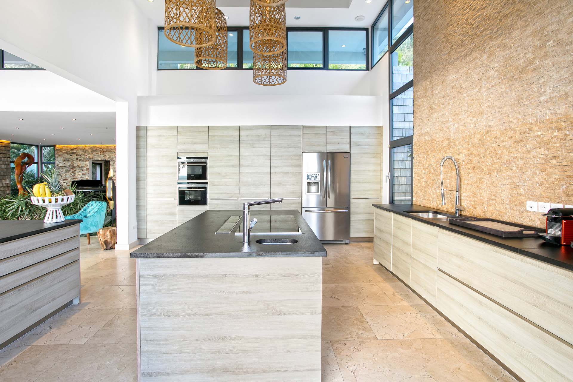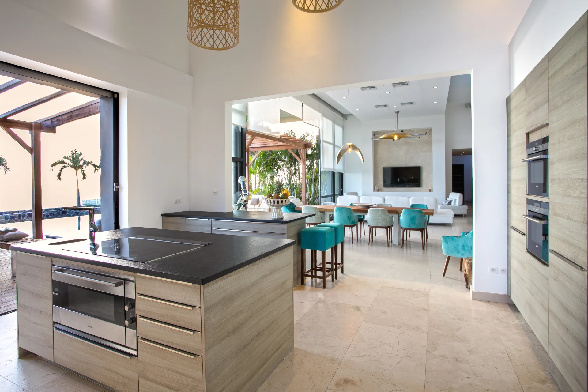 Villa Emeraude, (villa code: SXM EMR), is a 5-bedroom home set in the hillside of Indigo Bay. Here you will find breathtaking views of the Caribbean Sea and Saba island in the distance. This modern family home has large open spaces, high-end furnishings and all the amenities one would need on a tropical holiday.