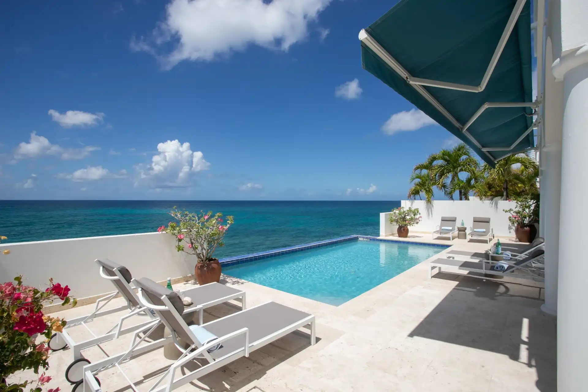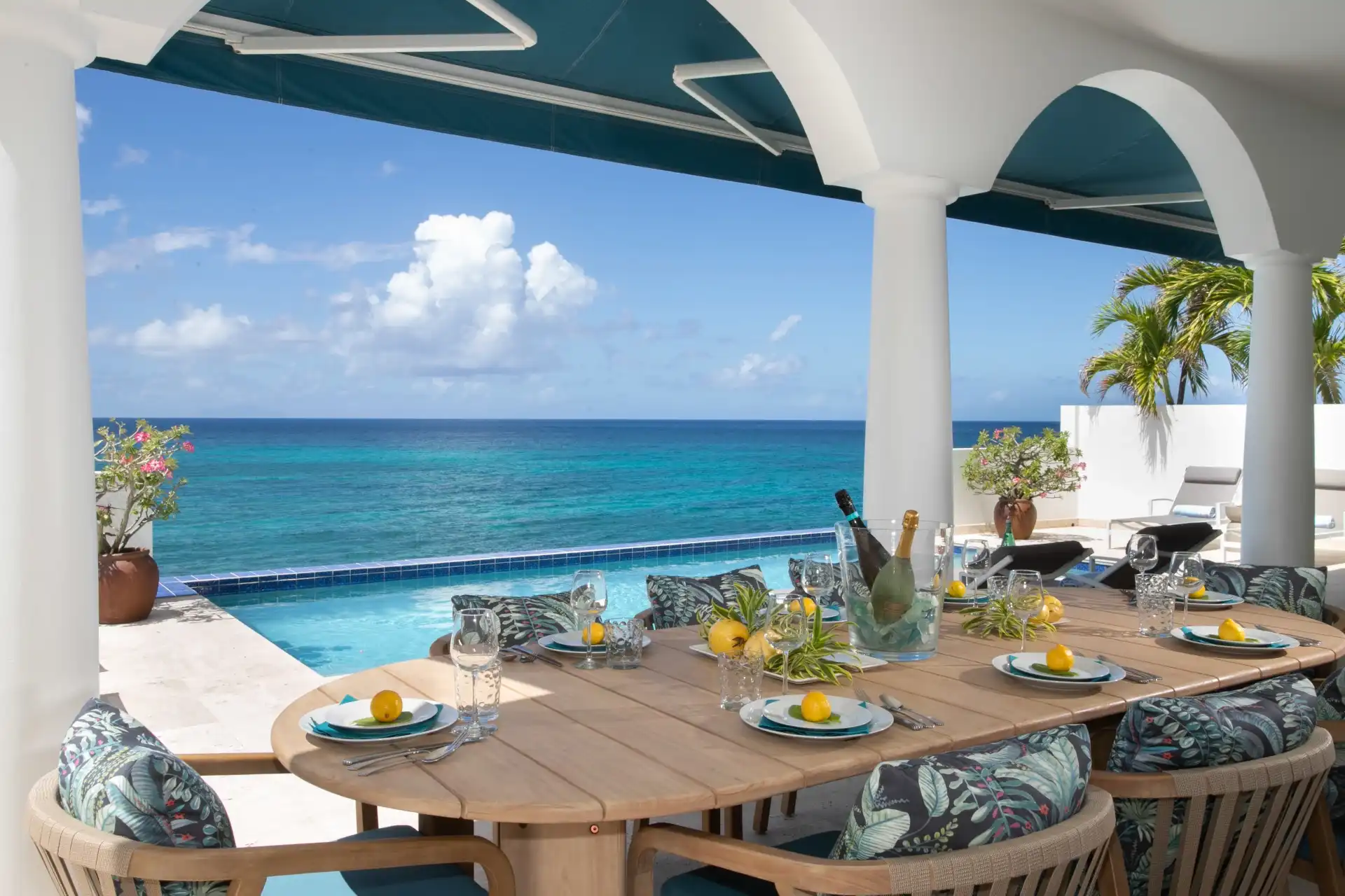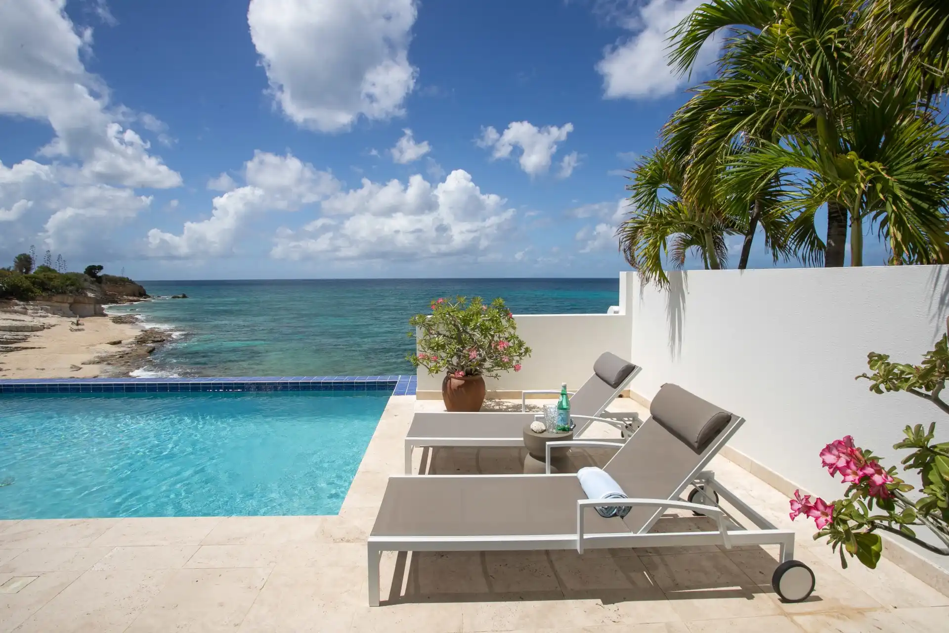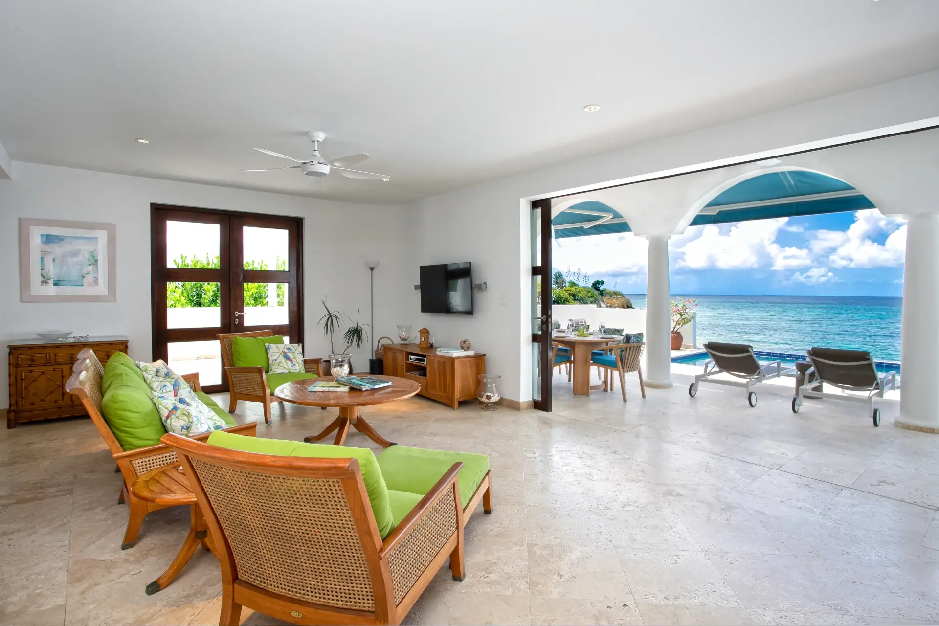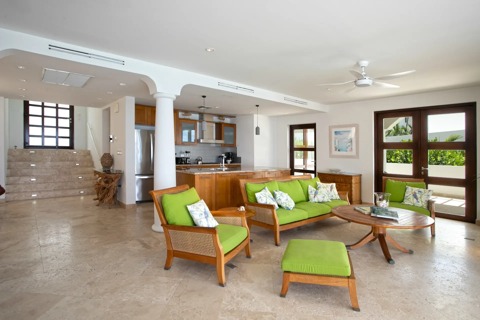 This fully air-conditioned villa enjoys constant trade winds, west-facing views, and spectacular sunsets.