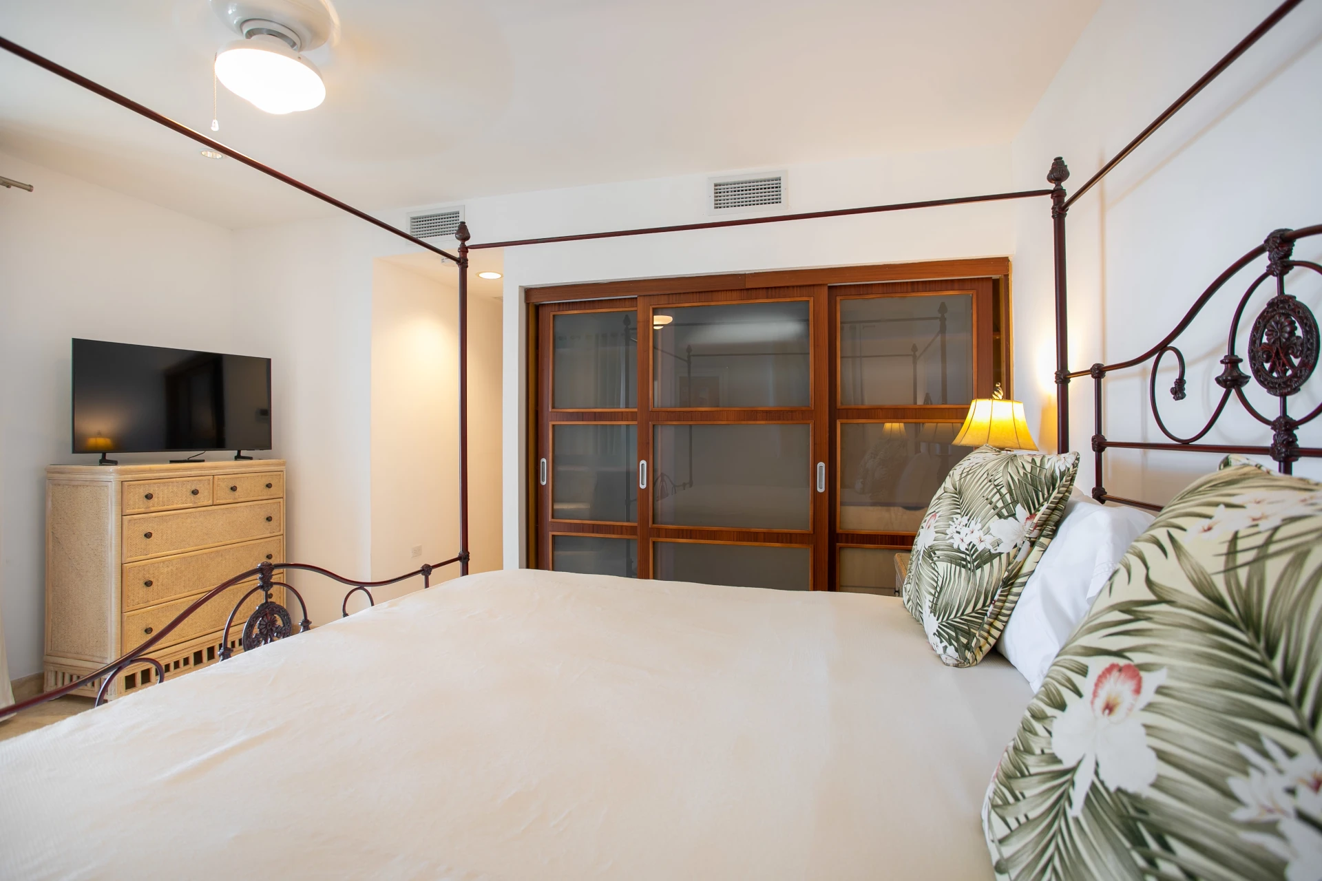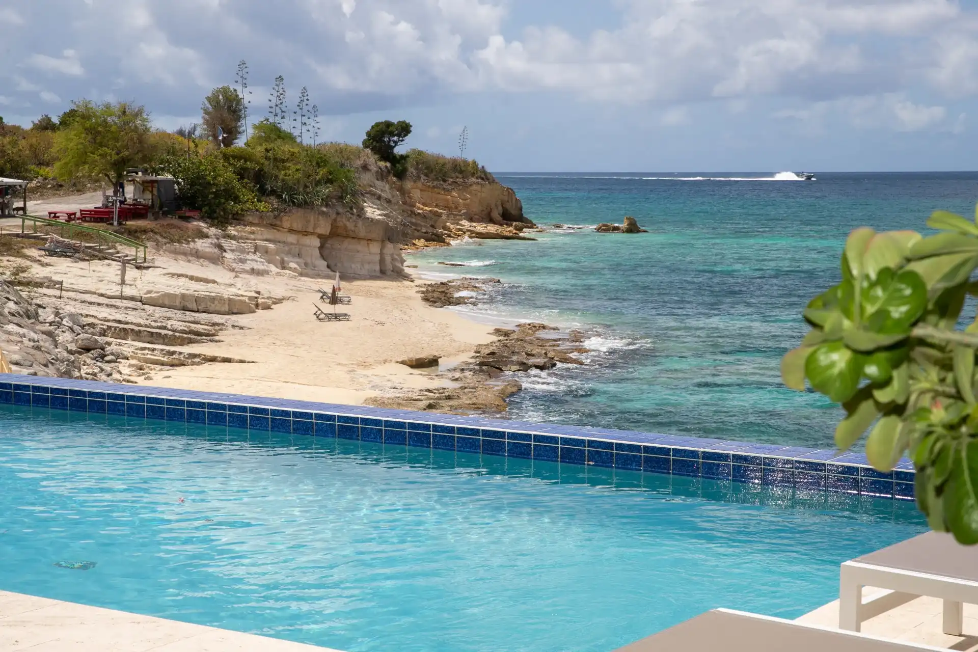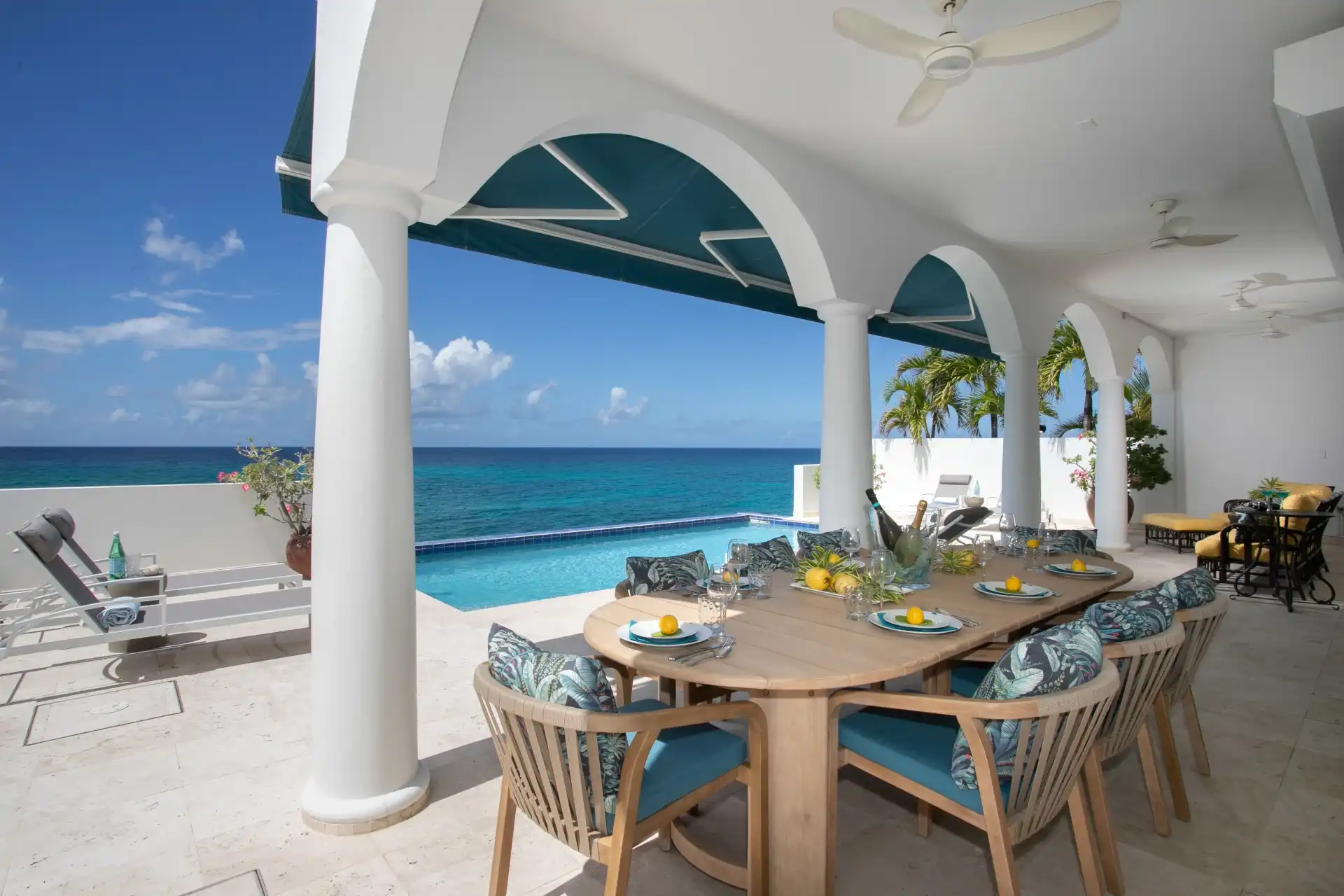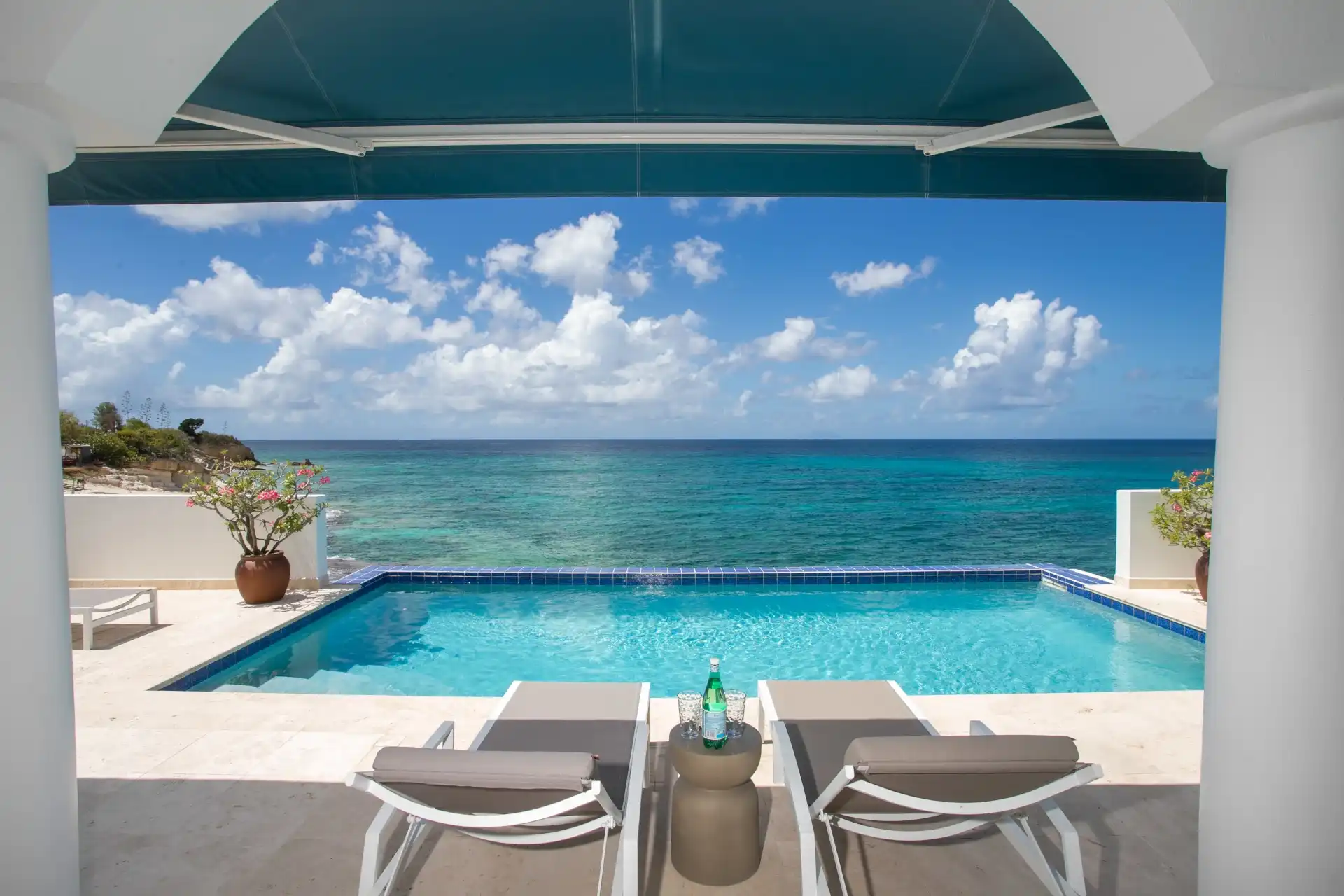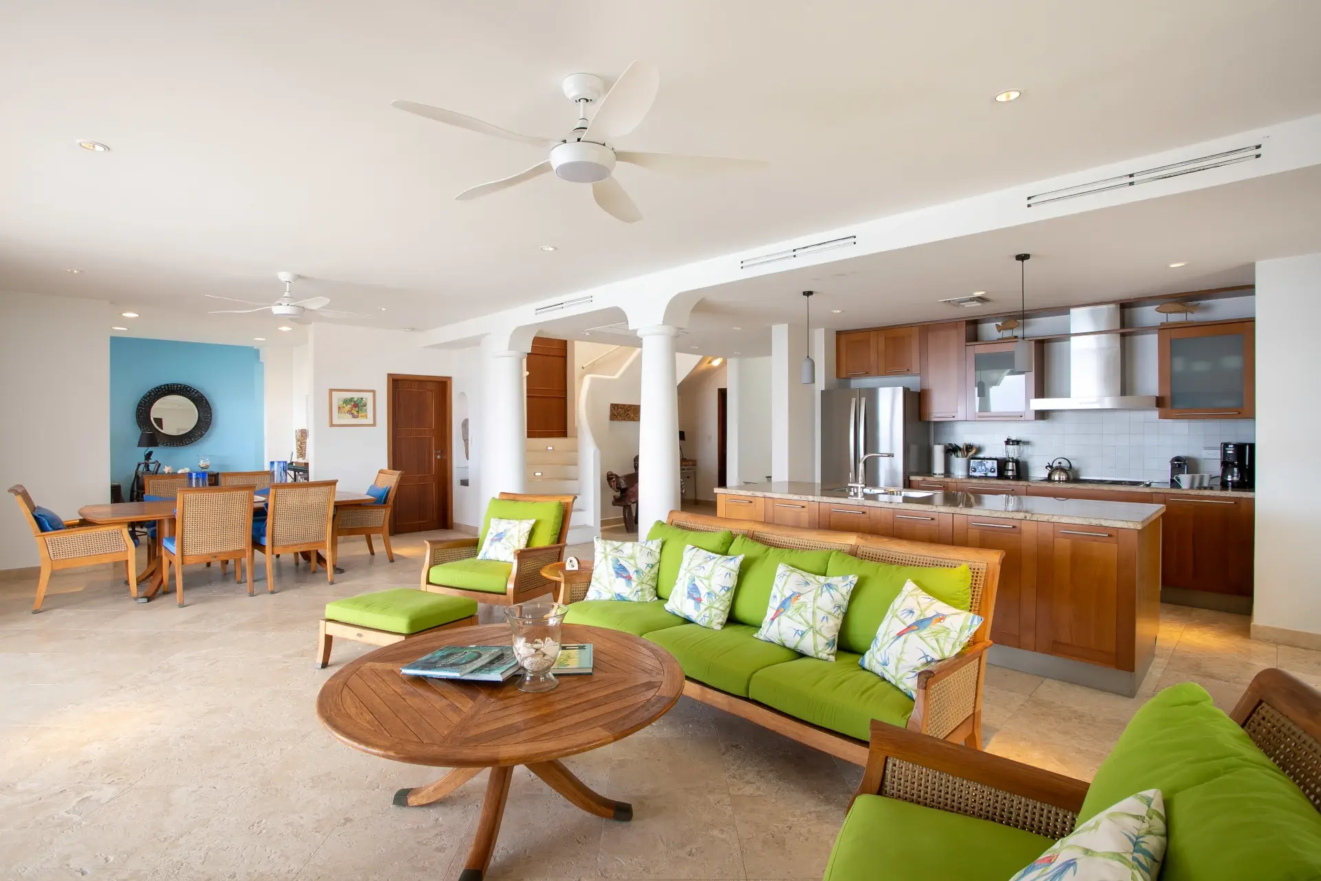 This fully air-conditioned villa enjoys constant trade winds, west-facing views, and spectacular sunsets.