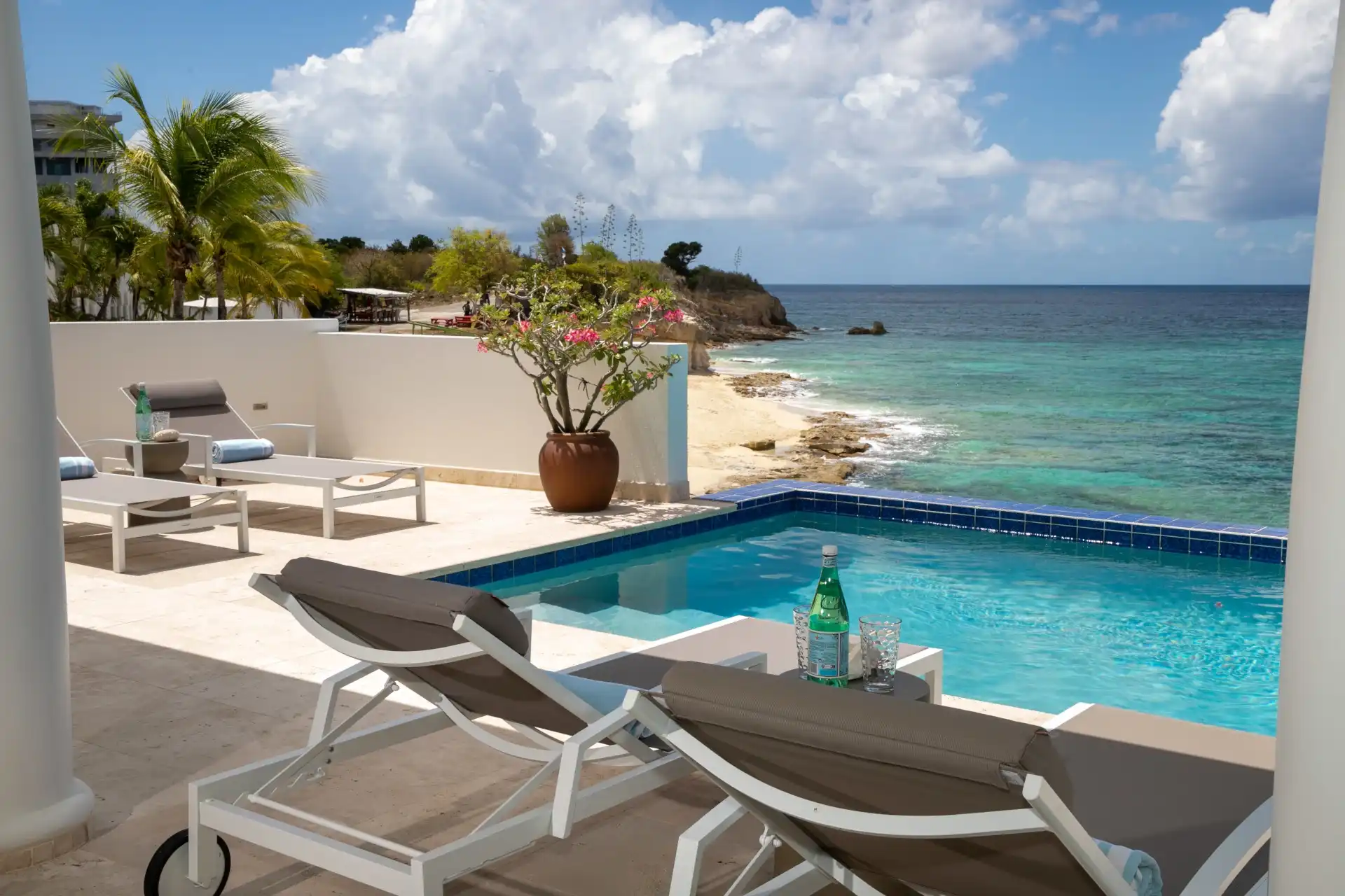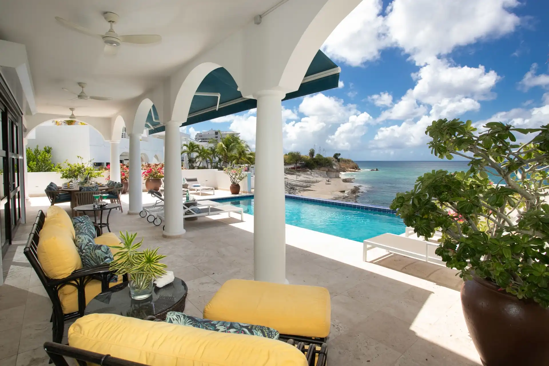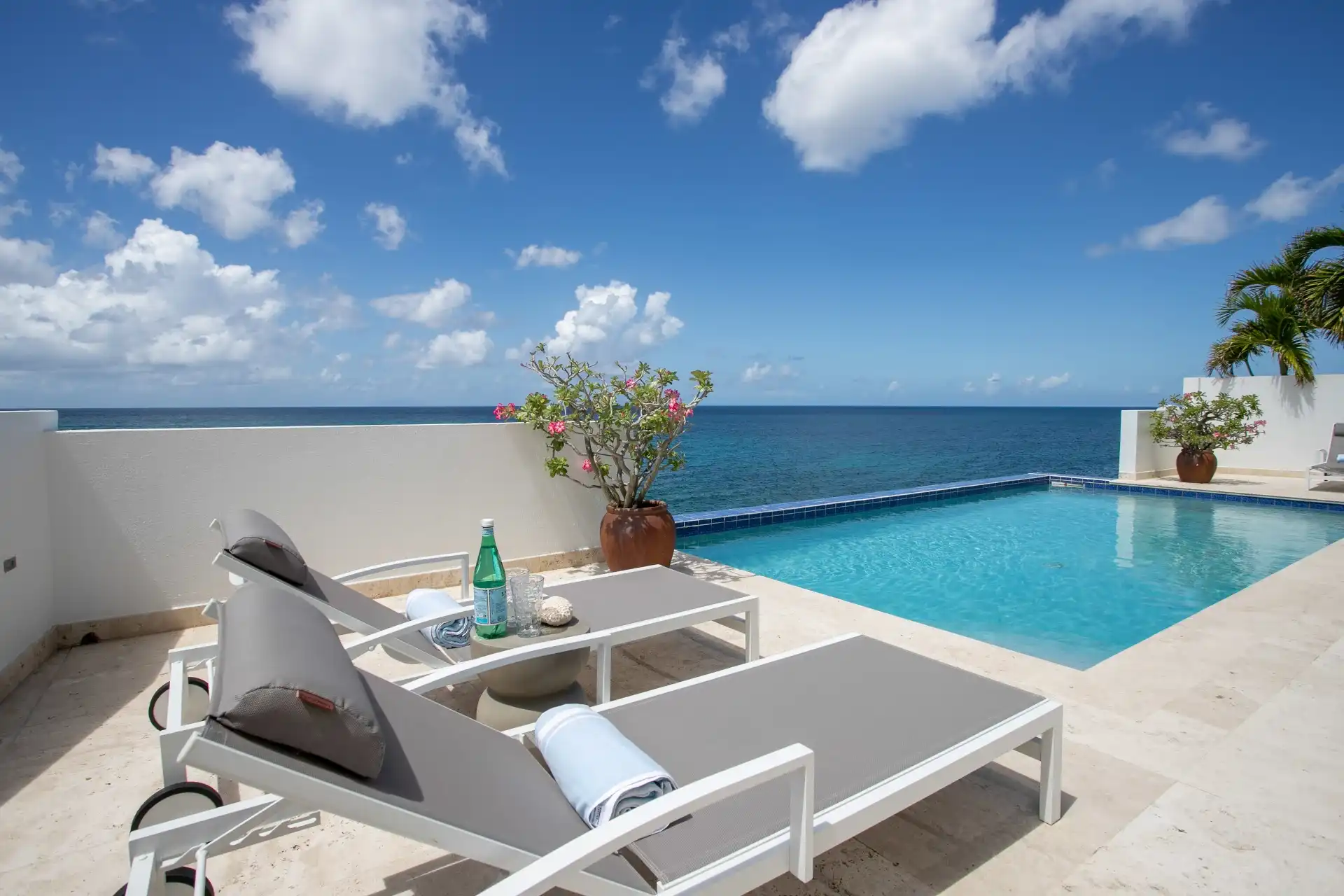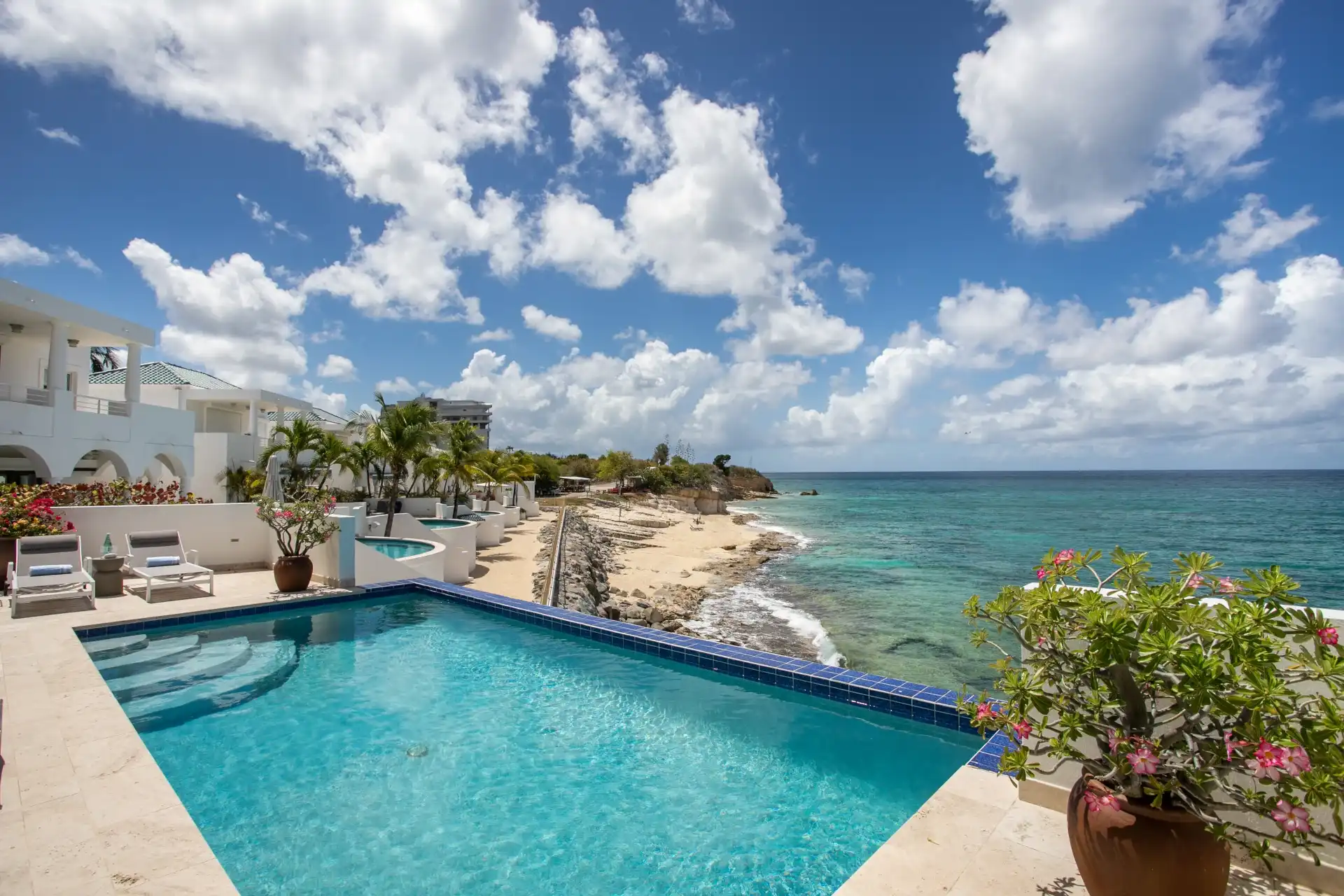 Villa Etoile de Mer (villa code: PIE ETO), is a 4-bedroom villa located in Beachfront/Cupecoy, St. Maarten within steps of the beach and a short walk from restaurants and shopping.