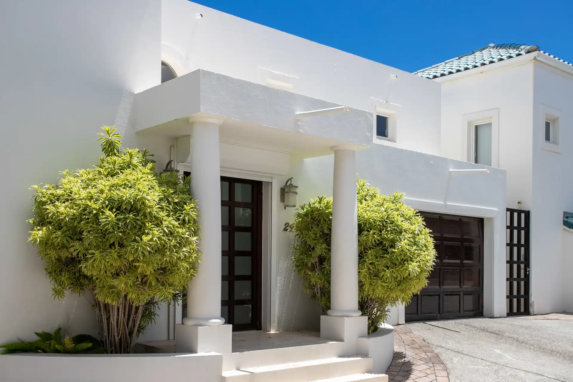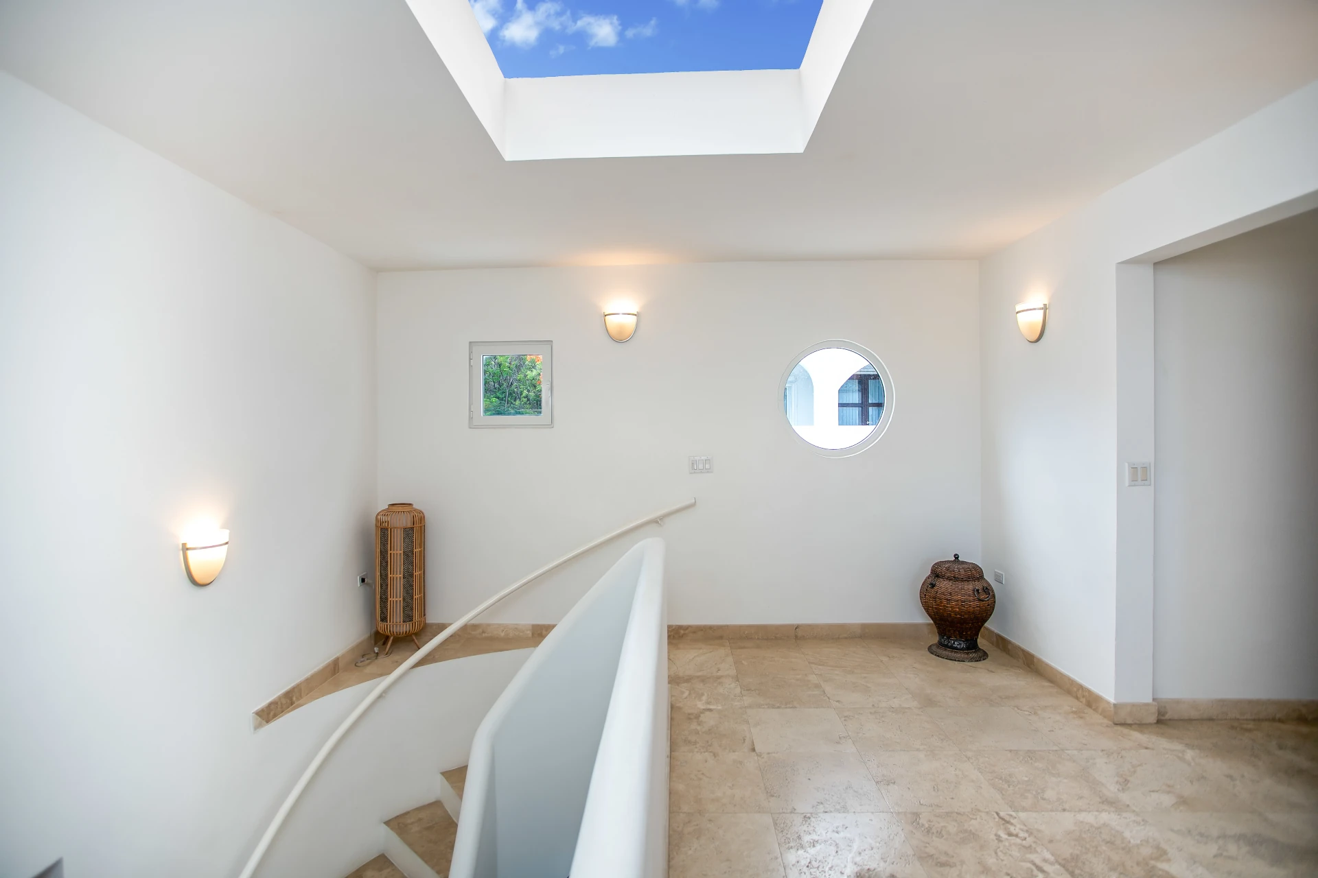 While 3 steps ascend to the front door and another 8 steps descend to the main floor, a side entrance with a few small steps is also available for guests. This villa is situated in the gated Shore Pointe development, adjacent to the Terres Basses area and the famed La Samanna Hotel.