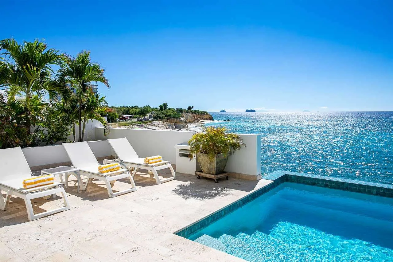 Although private, you are very close to amenities. Only a 3-minute walk to Porto Cupecoy with a terrific little gourmet market, wonderful restaurants and stunning views. Two more minutes to Escape, the hot new restaurant bar; the laidback Bar Code; the eclectic restaurants of STARZ casino highlighted by Temptation and just beyond; the nightlights of Maho. In 5 minutes you reach the airport, 10 minutes to the charming French capital of Marigot and about 30 minutes to either Grand Case or Phillipsburg.