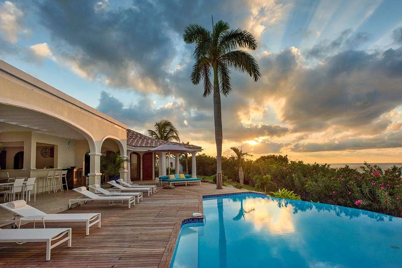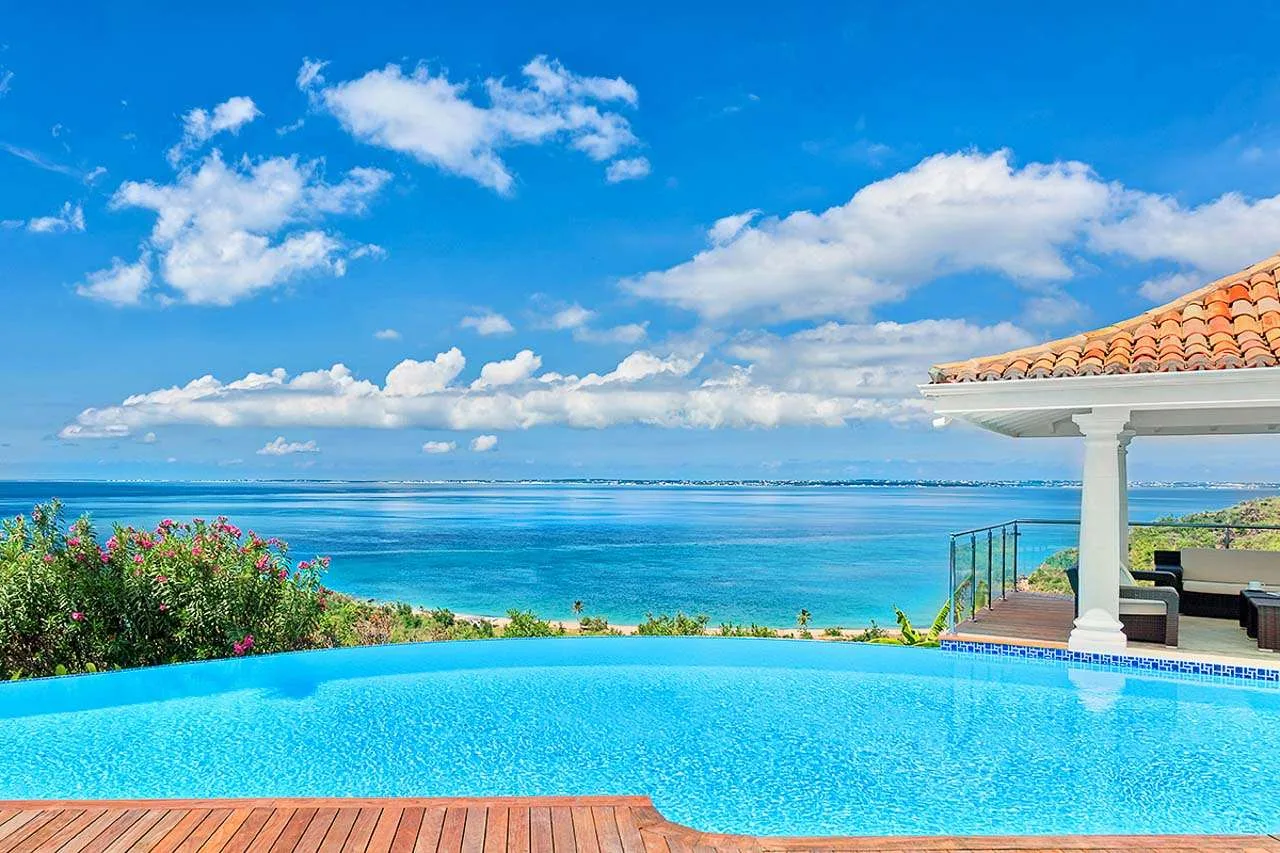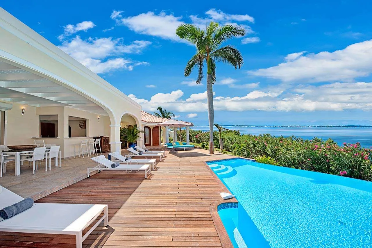 This fully air-conditioned villa on the northern coast enjoys unobstructed ocean views from its sun deck, gazebo, and heated infinity edge pool.