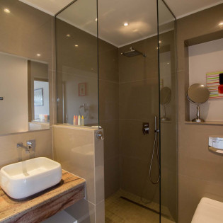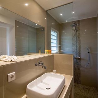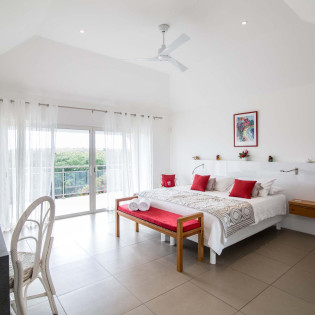 The villa's configuration of equally spacious bedrooms offers the ideal capacity to comfortably host larger groups, including families or circles of friends, all the while ensuring that ample space is available to each individual.
