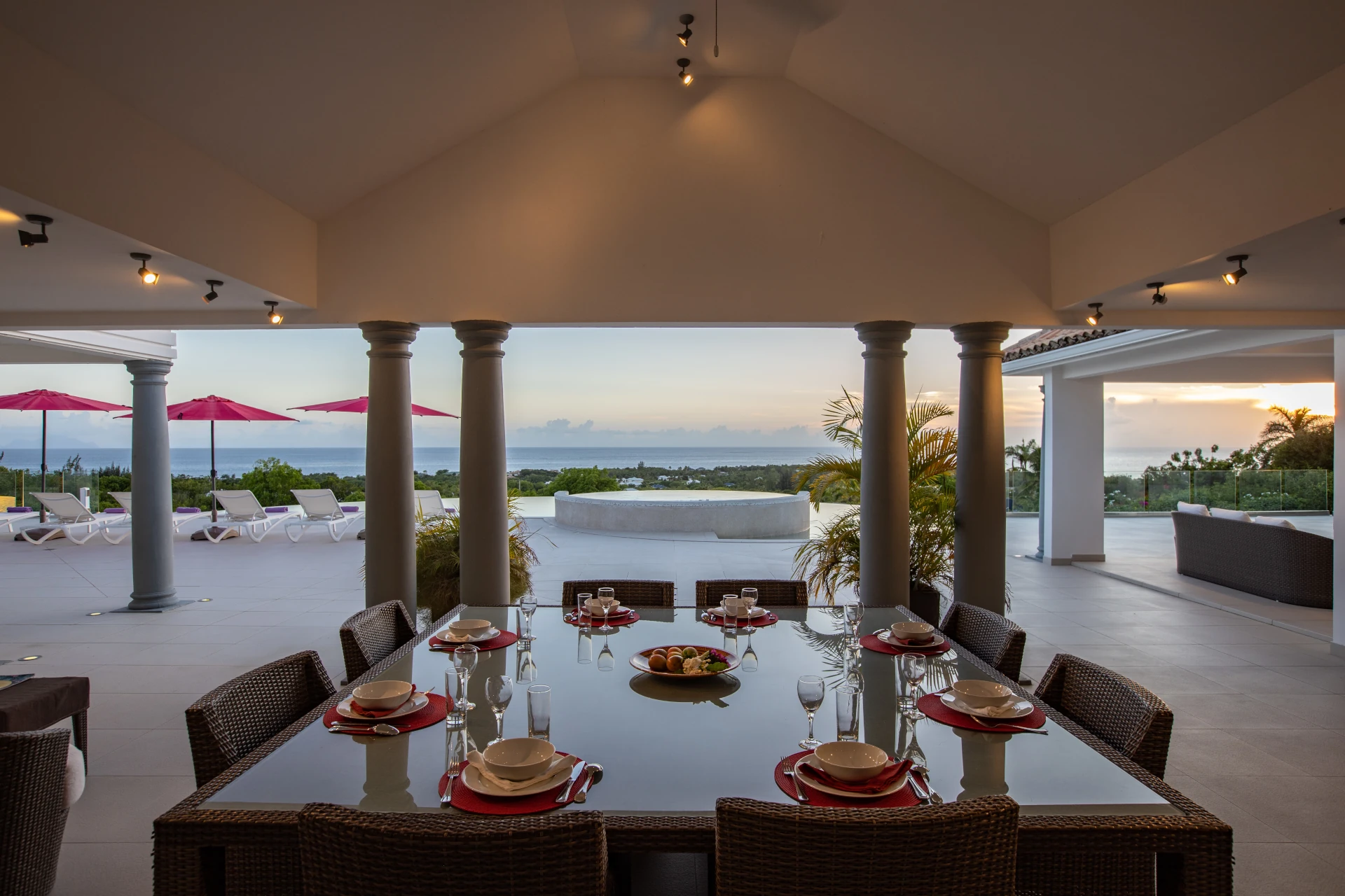 Each bedroom offers views and direct access through sliding doors onto the large pool deck. All bedrooms have king-size beds and ensuite bathrooms. Located above the bedrooms is a rooftop bar and lounge, which offers spectacular views.