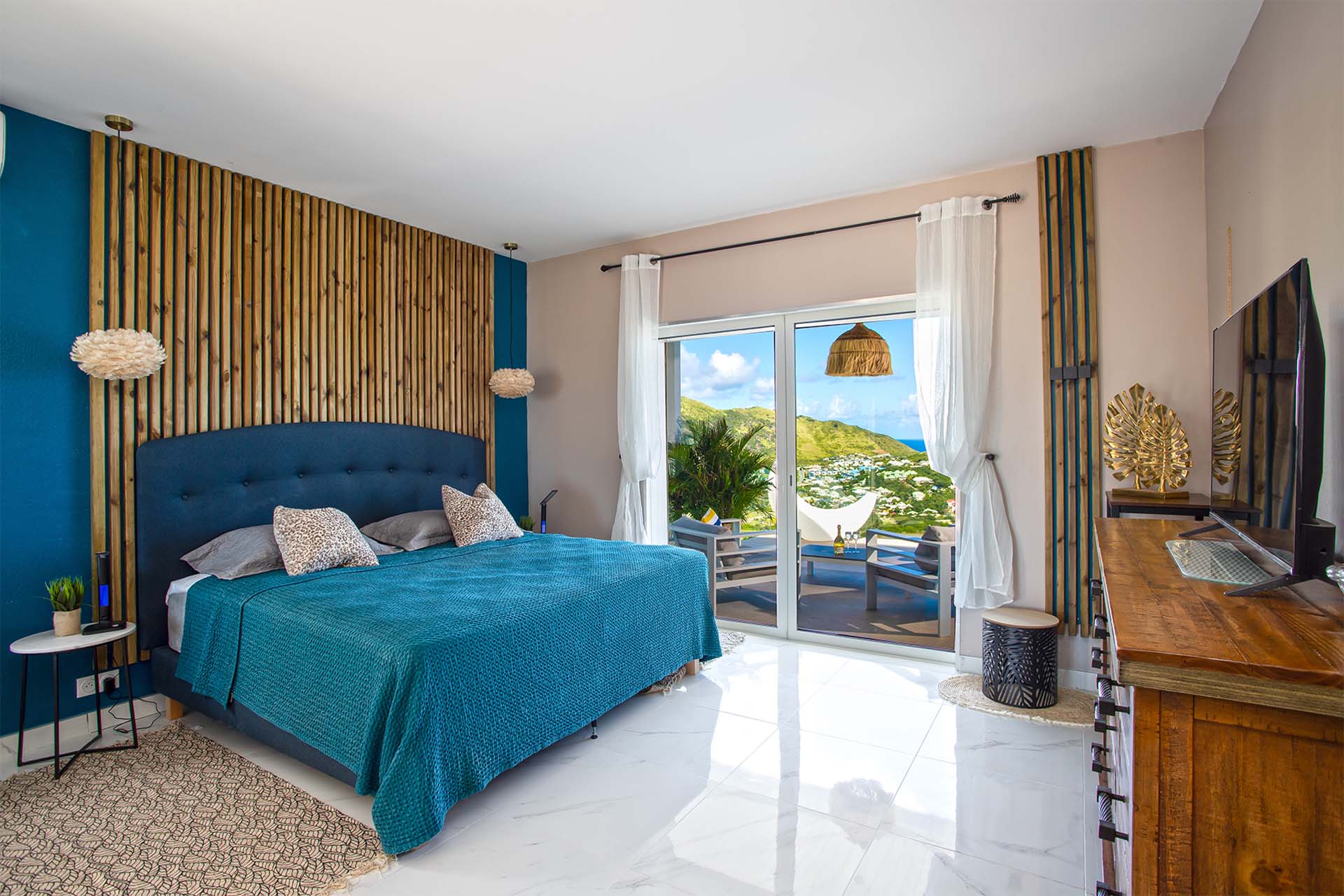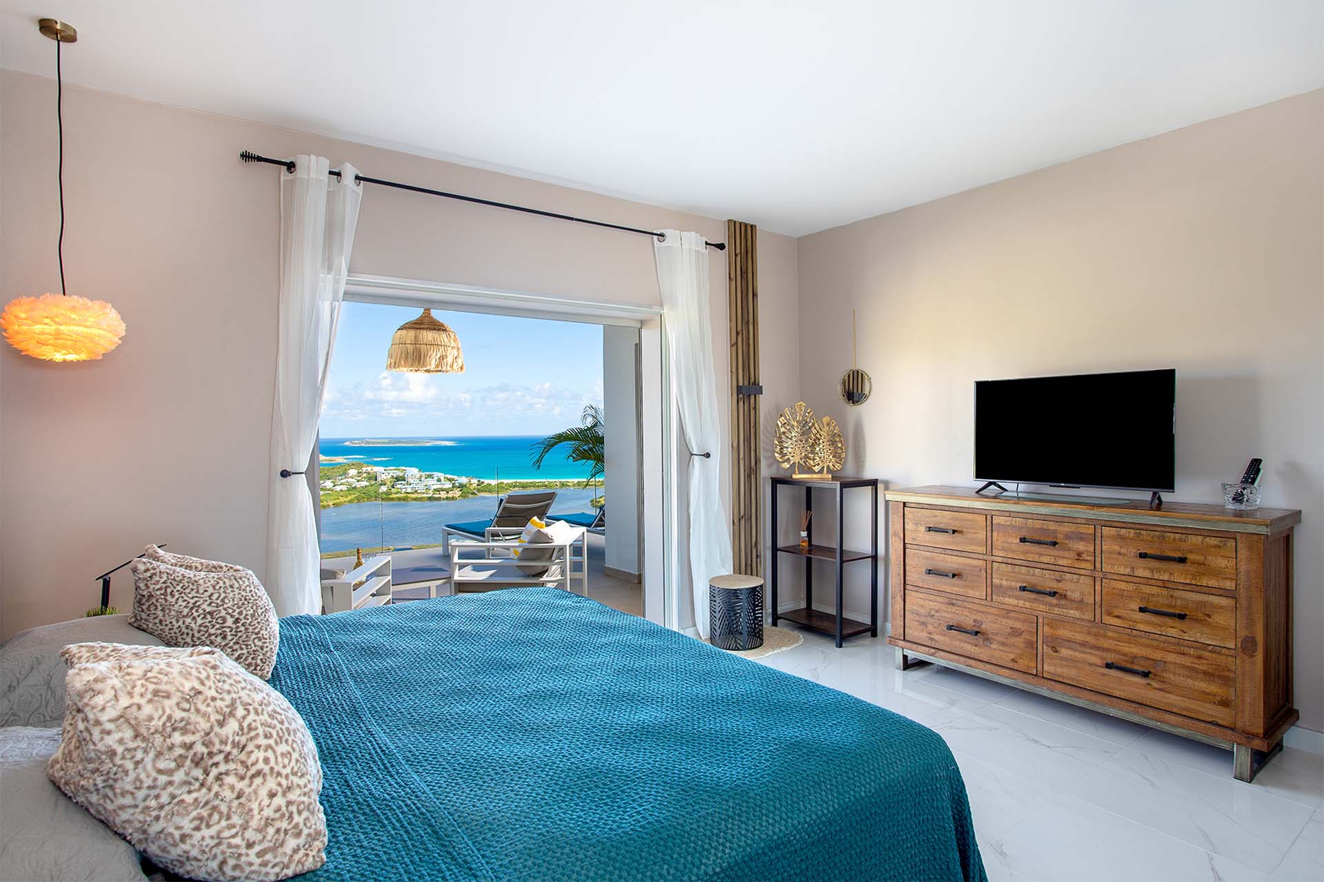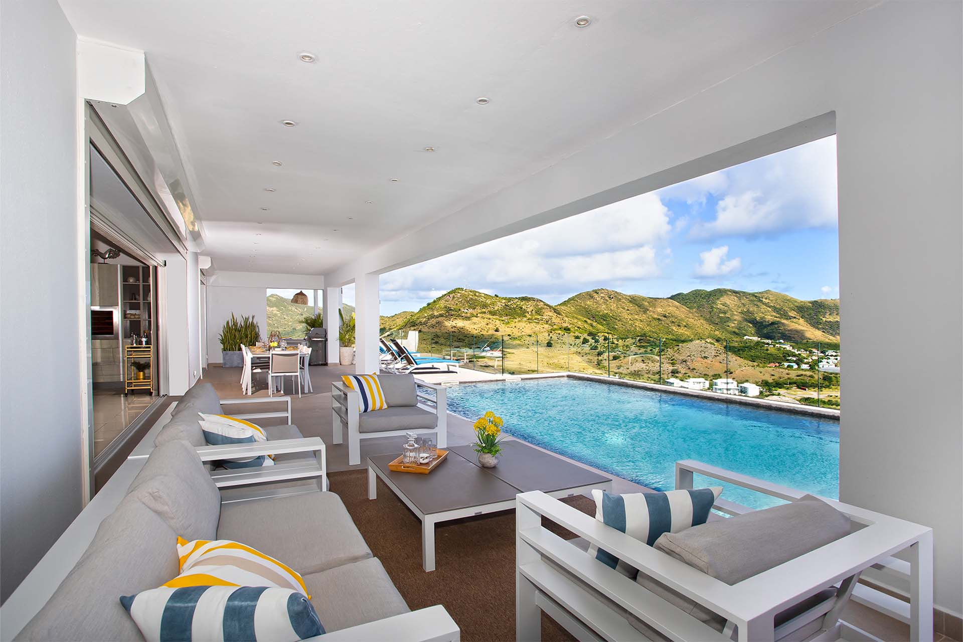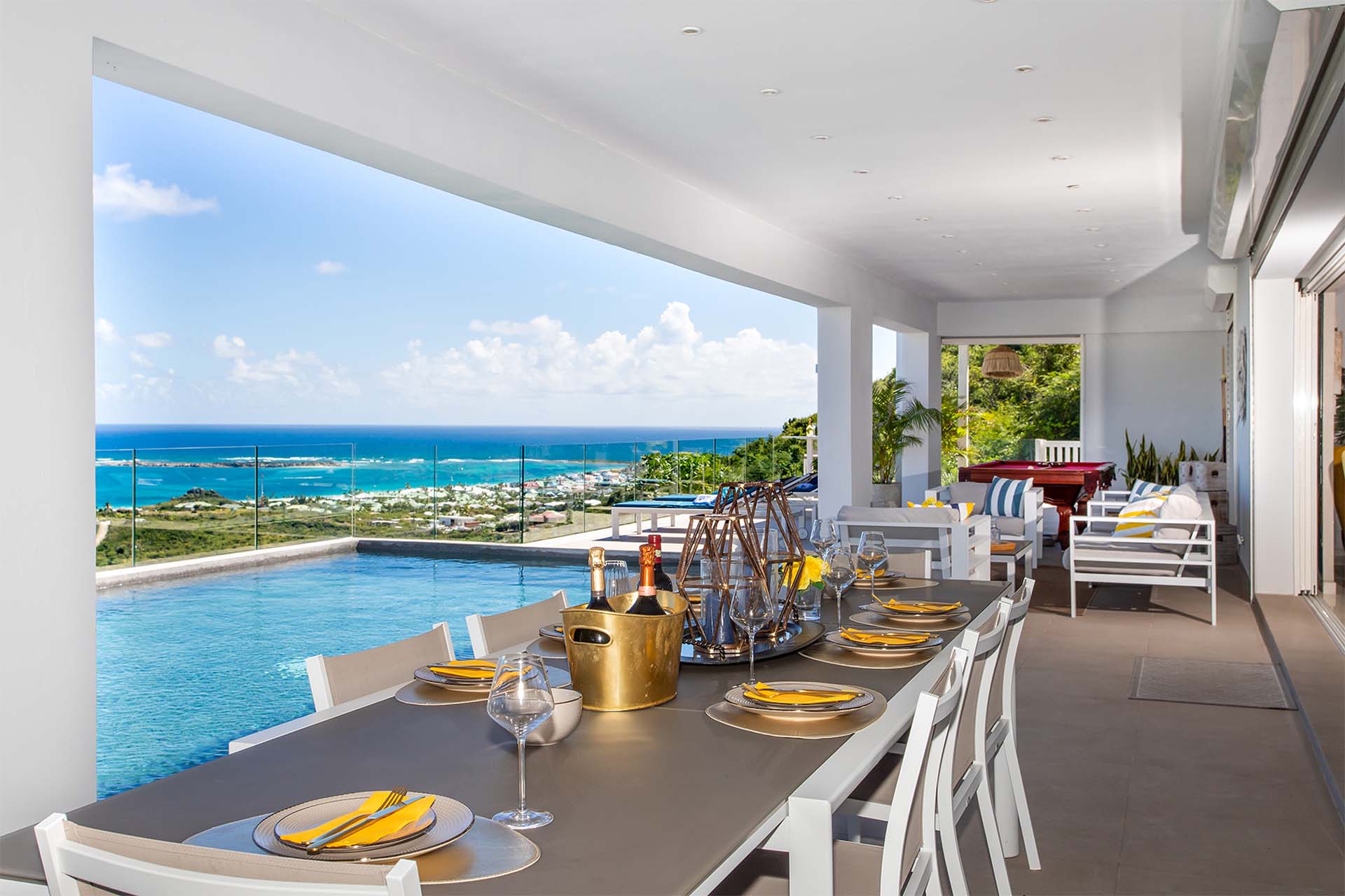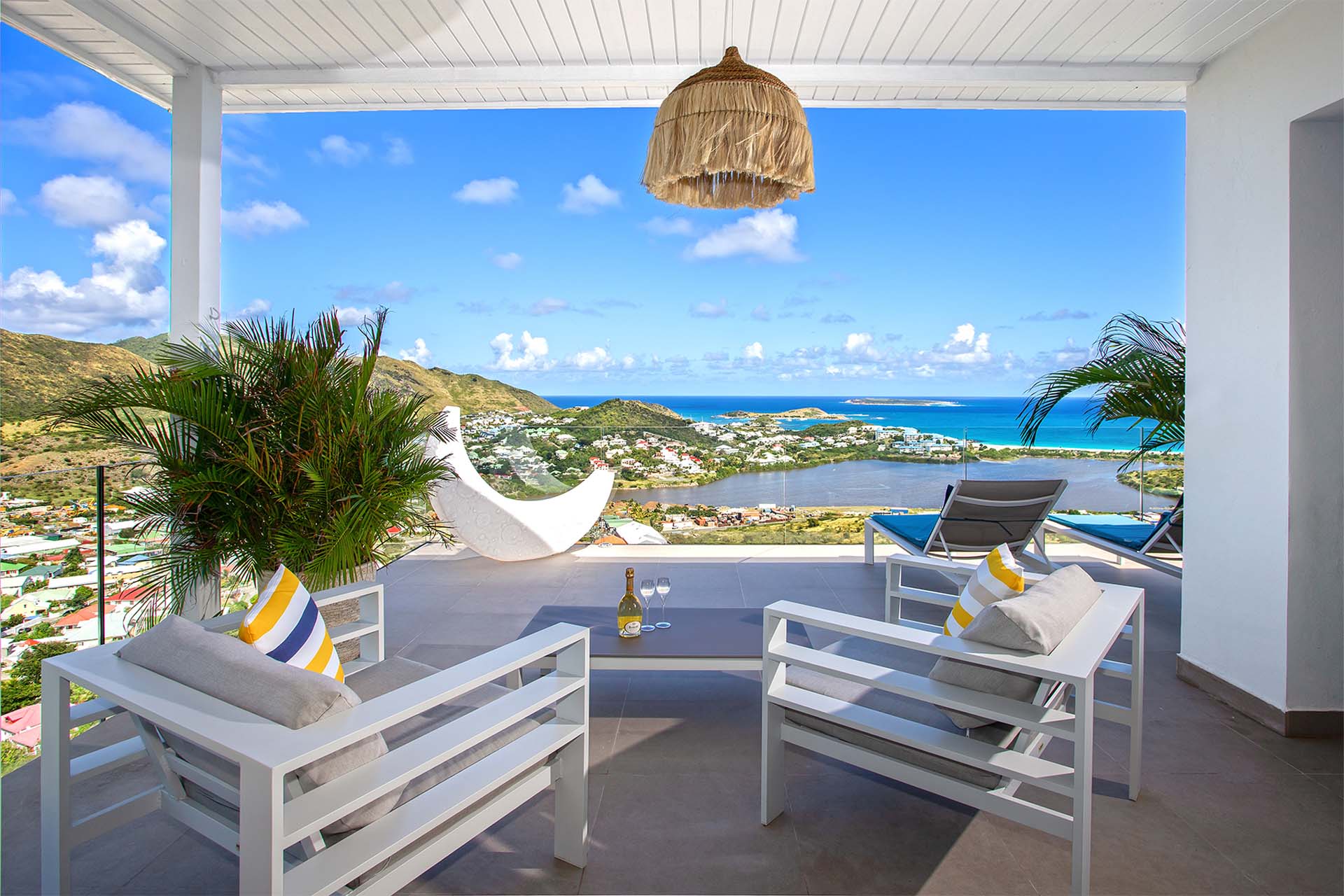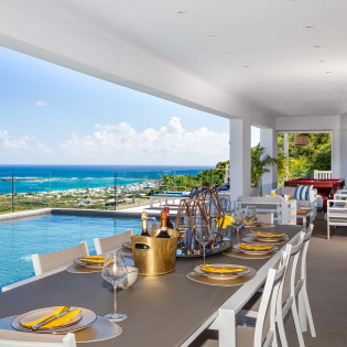 Villa La Casa del Jefe, (villa code: PIE CDJ) is a 4-bedroom private villa with a magnificent 180 degree view from Orient Bay to Grand Case.
