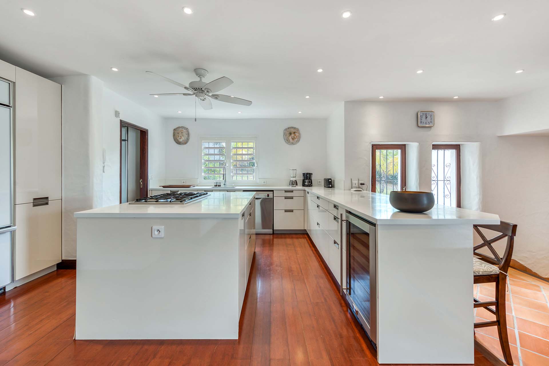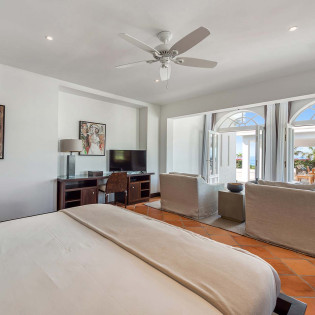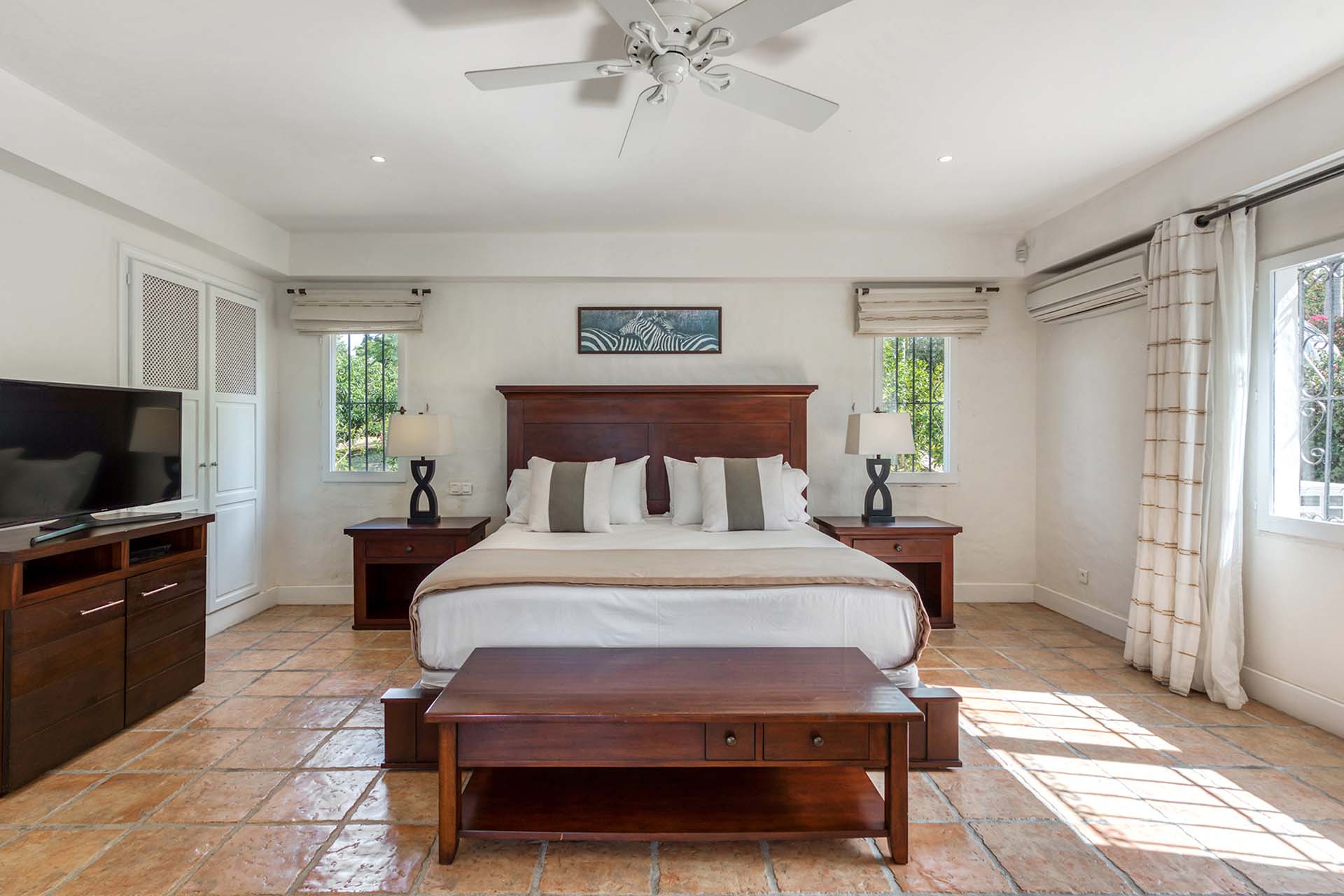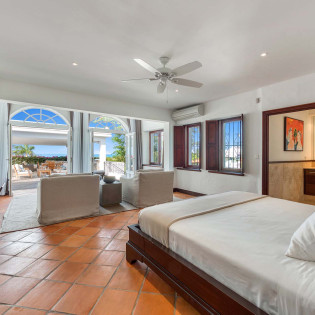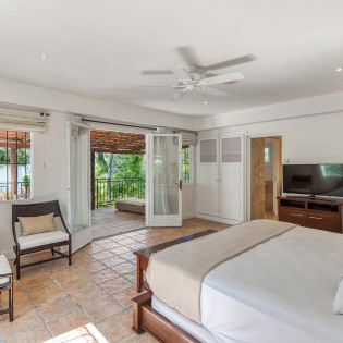 Villa La Hacienda offers seven thoughtfully designed bedrooms, each providing a serene retreat. Bedrooms 1, 4, 5, 6 and 7 are separate from the main house, featuring king beds, en suite bathrooms, garden views, and modern comforts like air conditioning and ceiling fans. Bedrooms 2 and 3 are connected to the main house, with shared bathroom facilities and versatile sleeping arrangements, including twin beds in Bedroom 3. All rooms have access to a shared terrace, inviting guests to enjoy tranquil outdoor moments. Perfectly blending privacy and convenience, Villa La Hacienda ensures a luxurious stay for up to 14 guests.