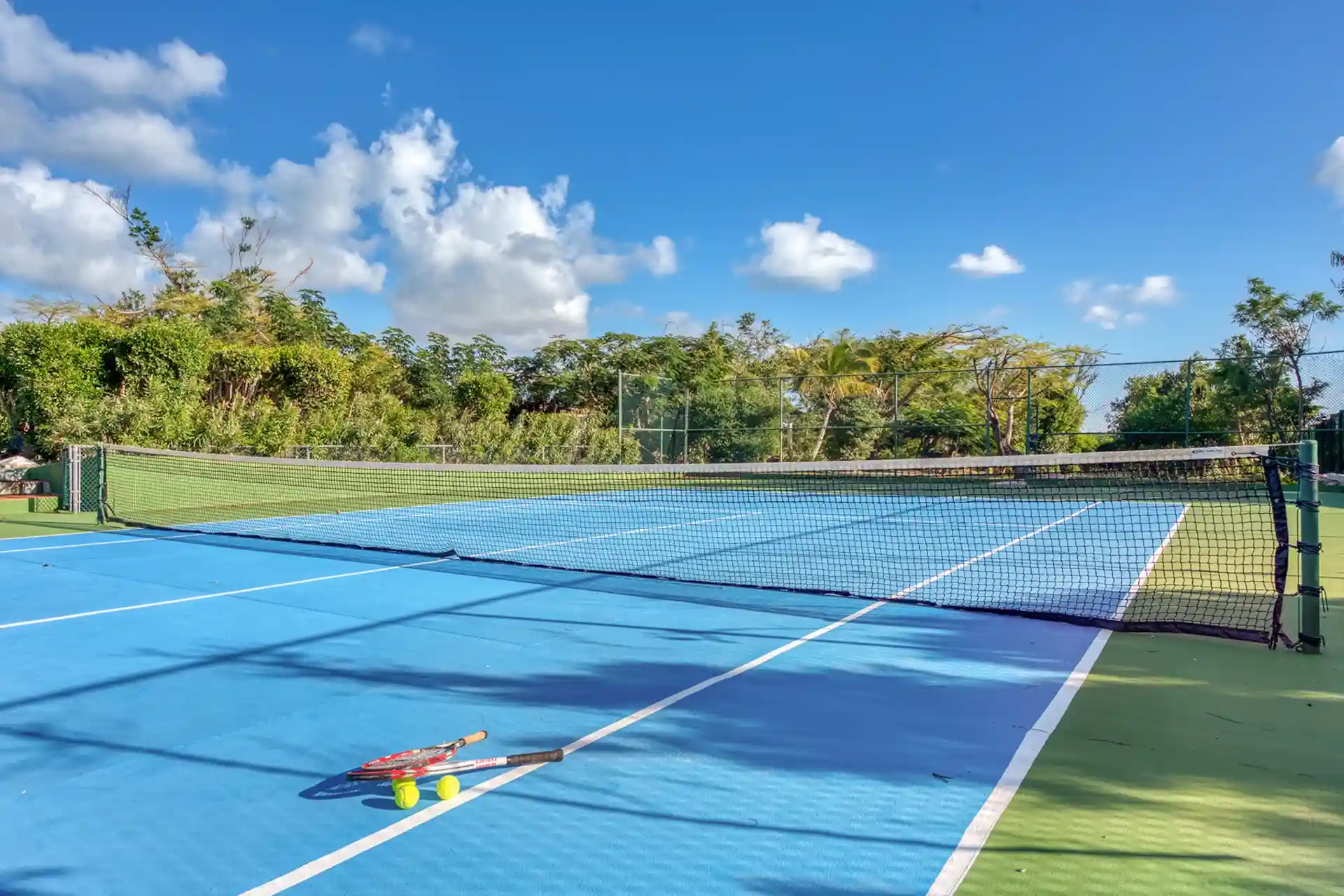 Each air-conditioned bedroom is equipped with a king-size bed, ceiling fan, plasma TV (no satellite), and an ensuite bathroom. For larger gatherings, the sister villa, La Pinta share the same lot and provides an additional four bedrooms. The two also share a tennis court and gym.
