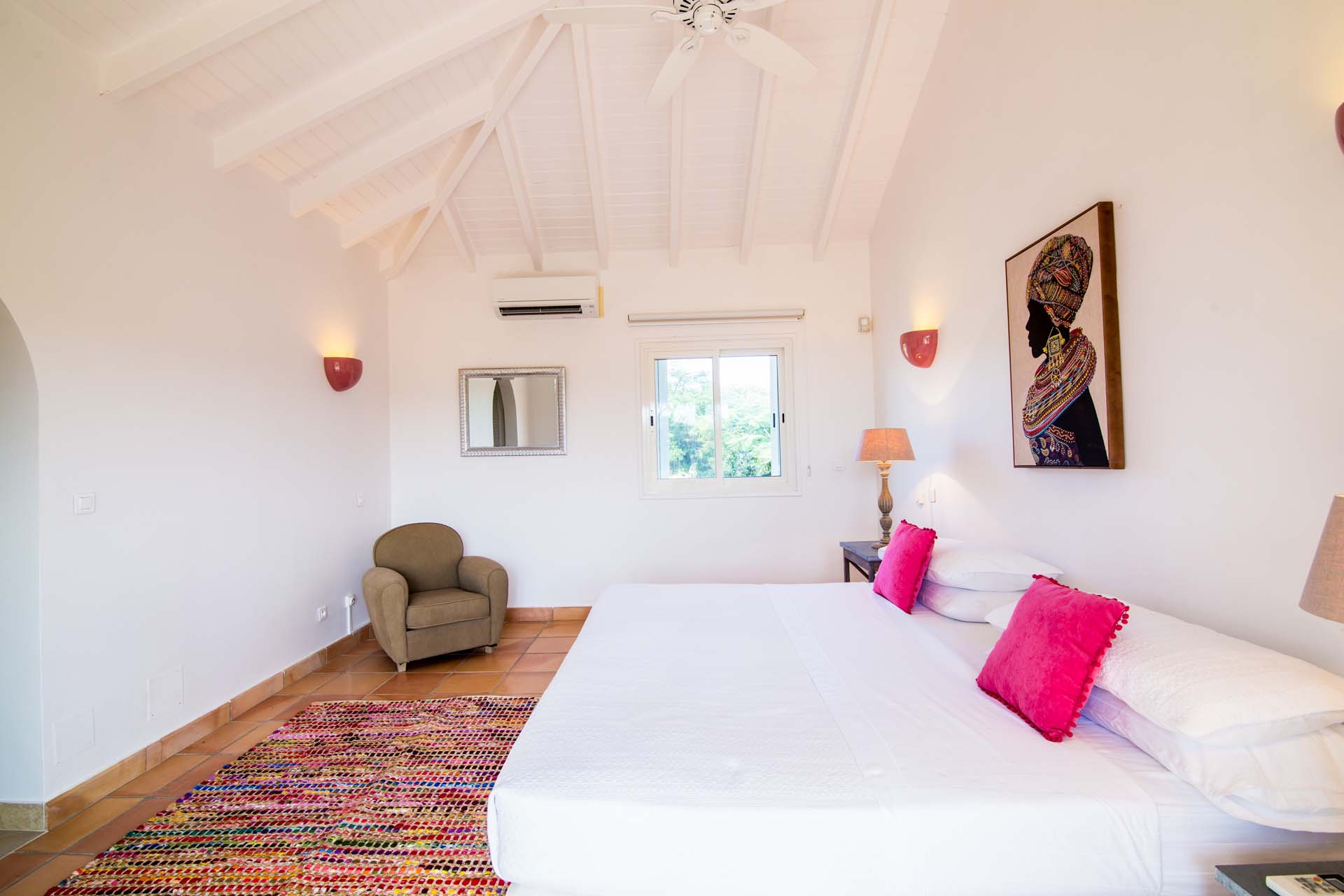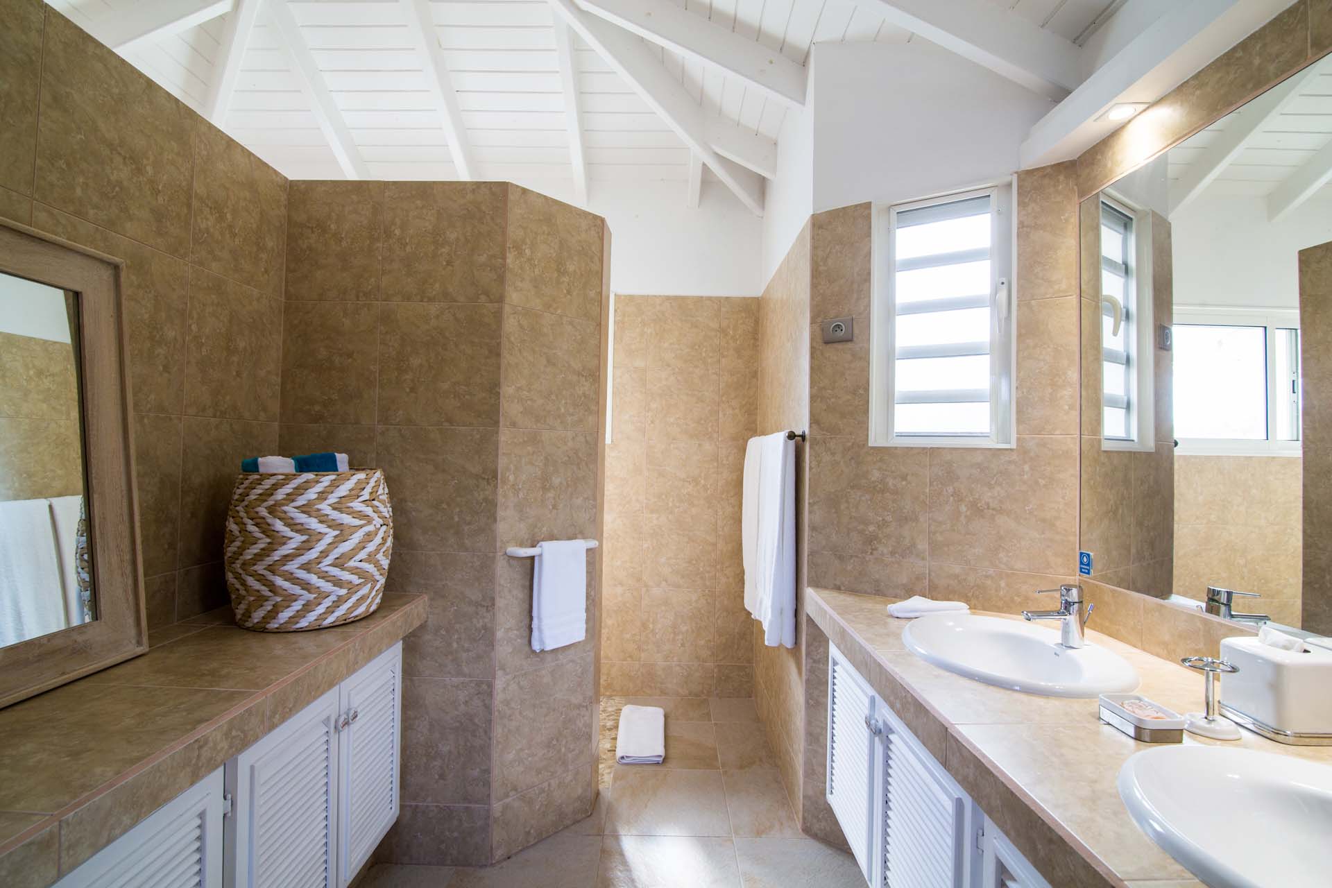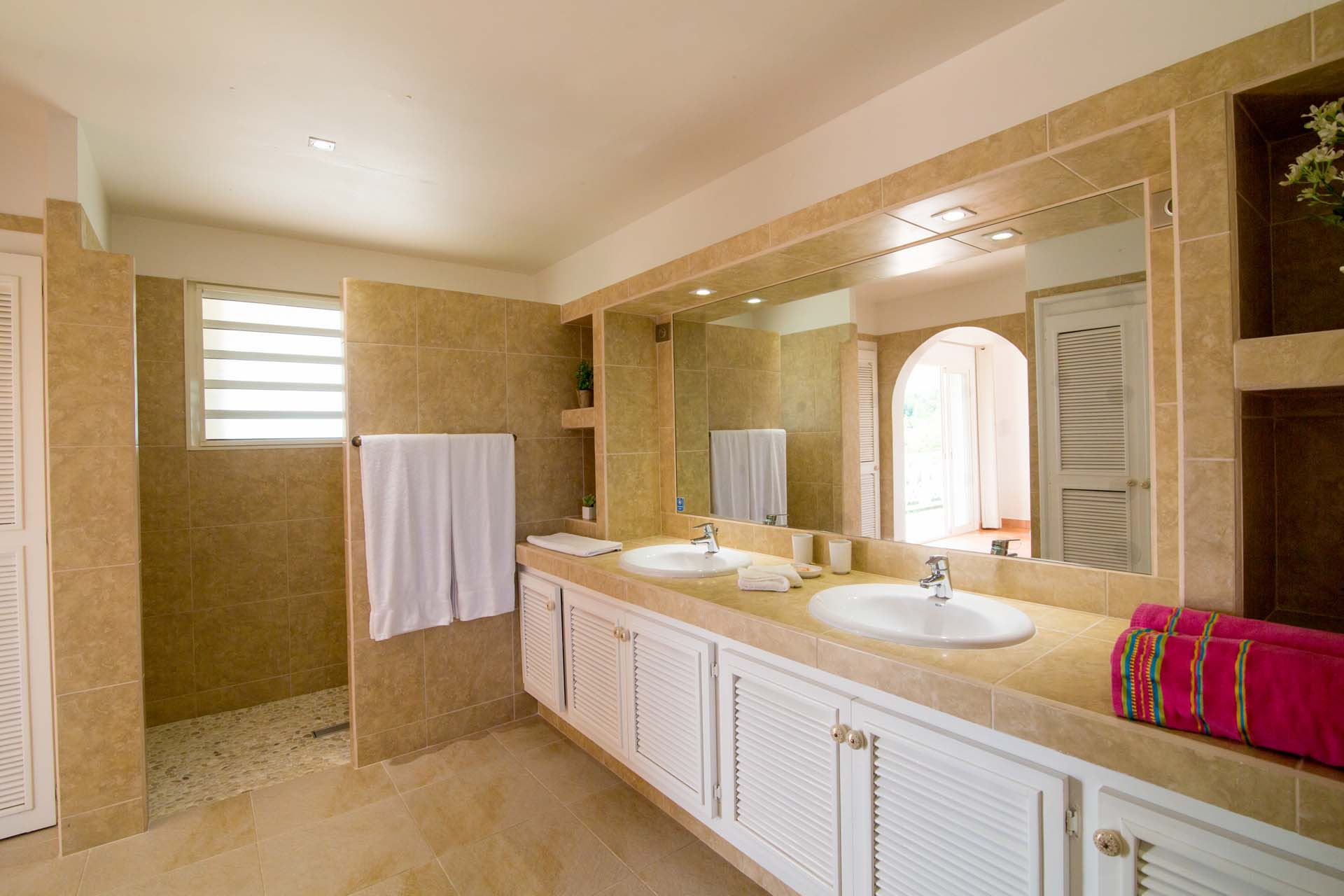 All of the bedrooms have a king sized bed, a ceiling fan, A/C and a large ensuite bathroom.