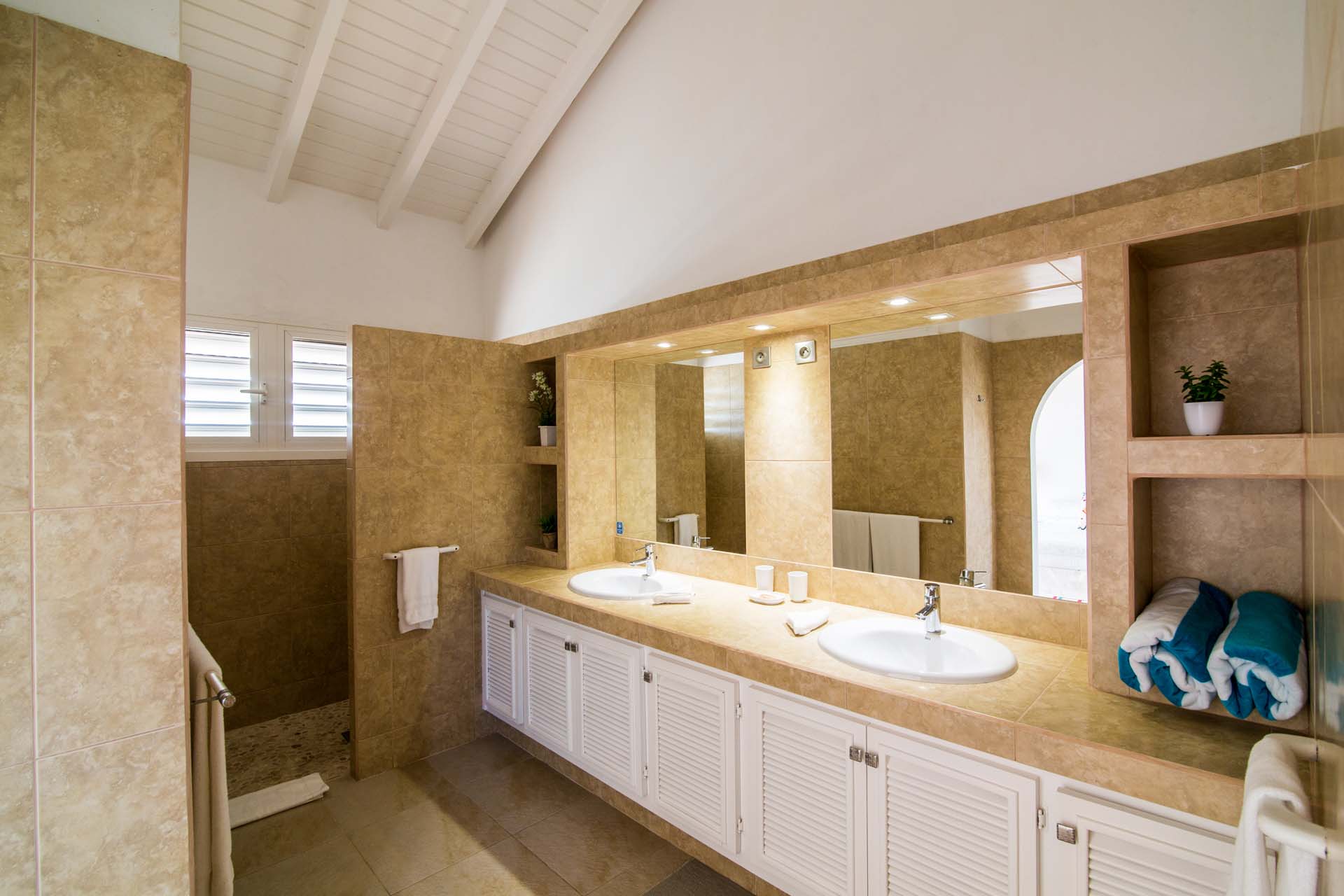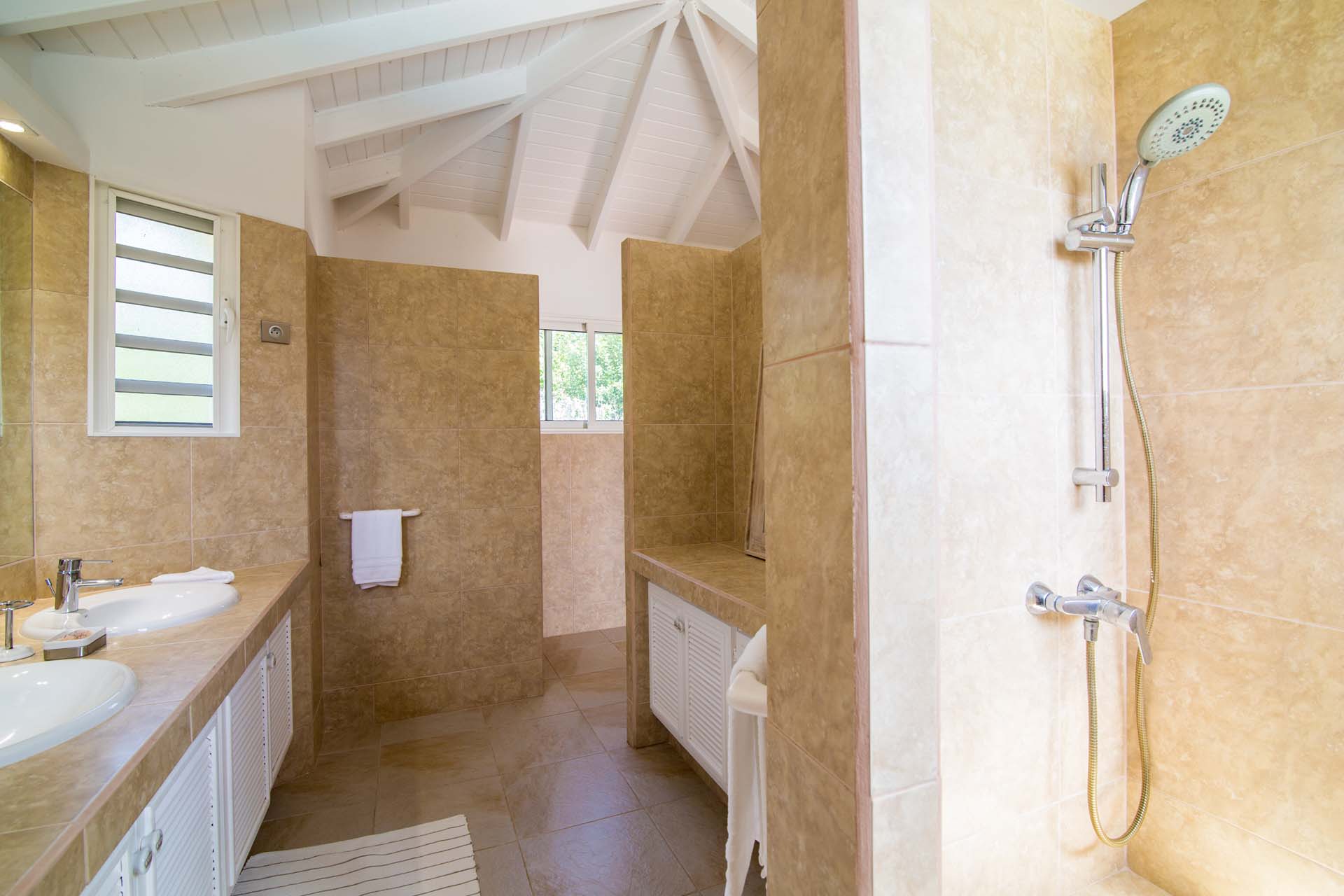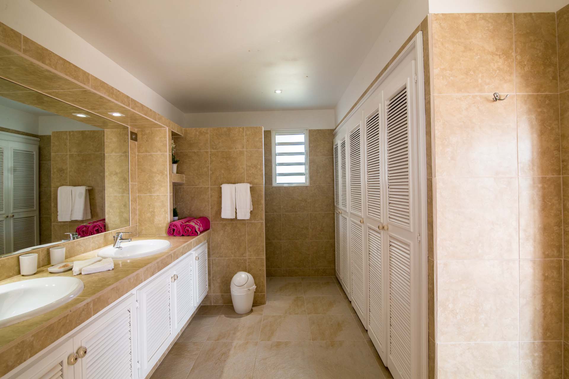 All of the bedrooms have a king sized bed, a ceiling fan, A/C and a large ensuite bathroom.