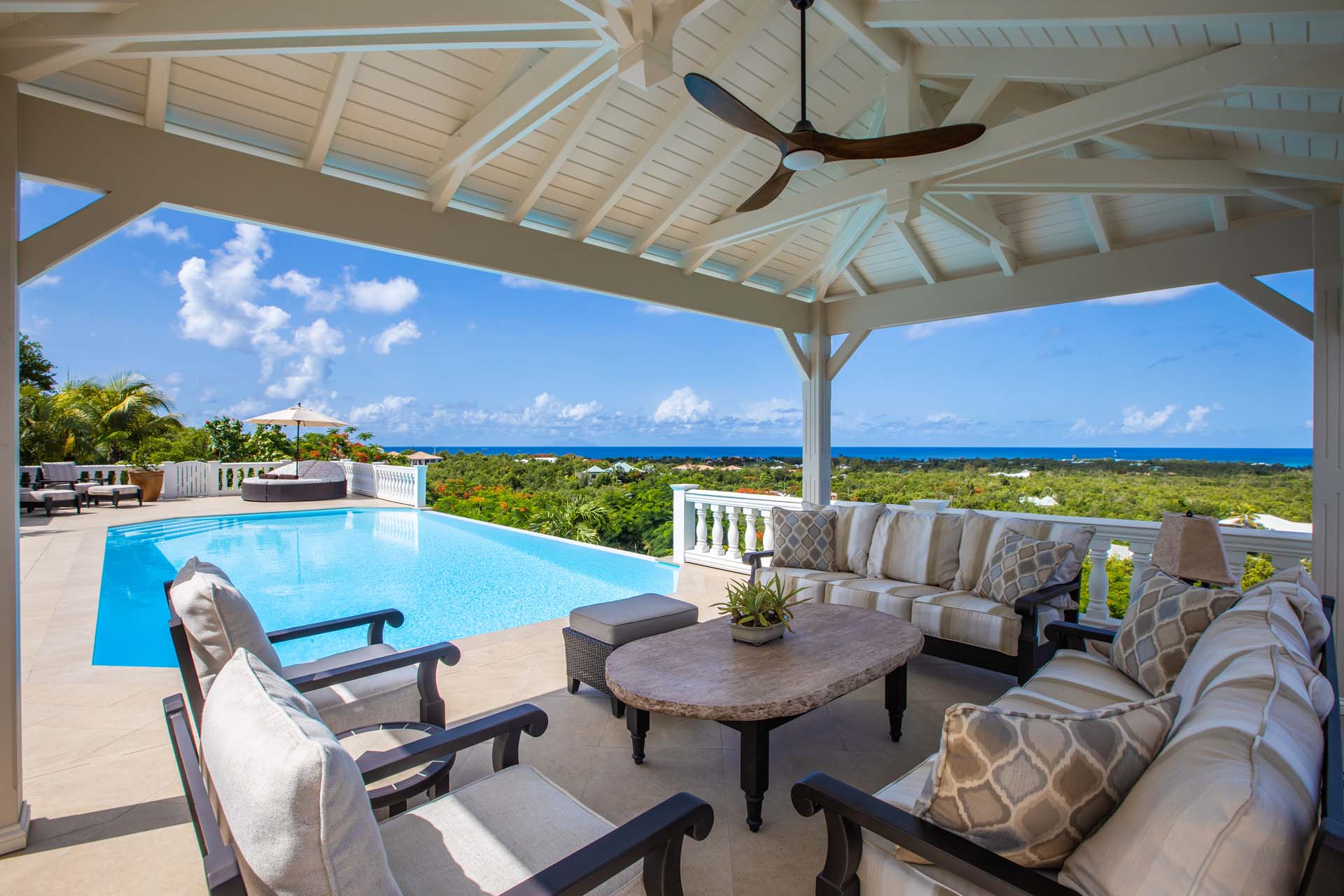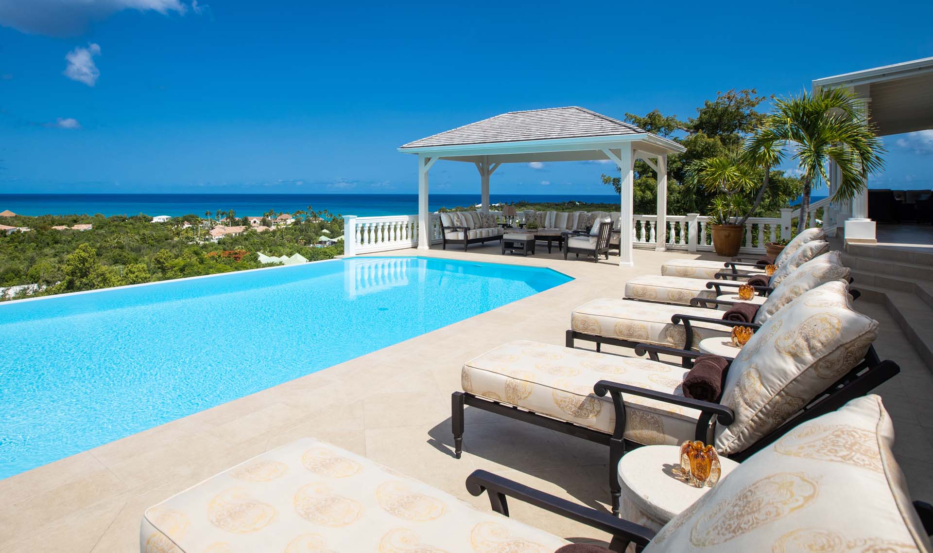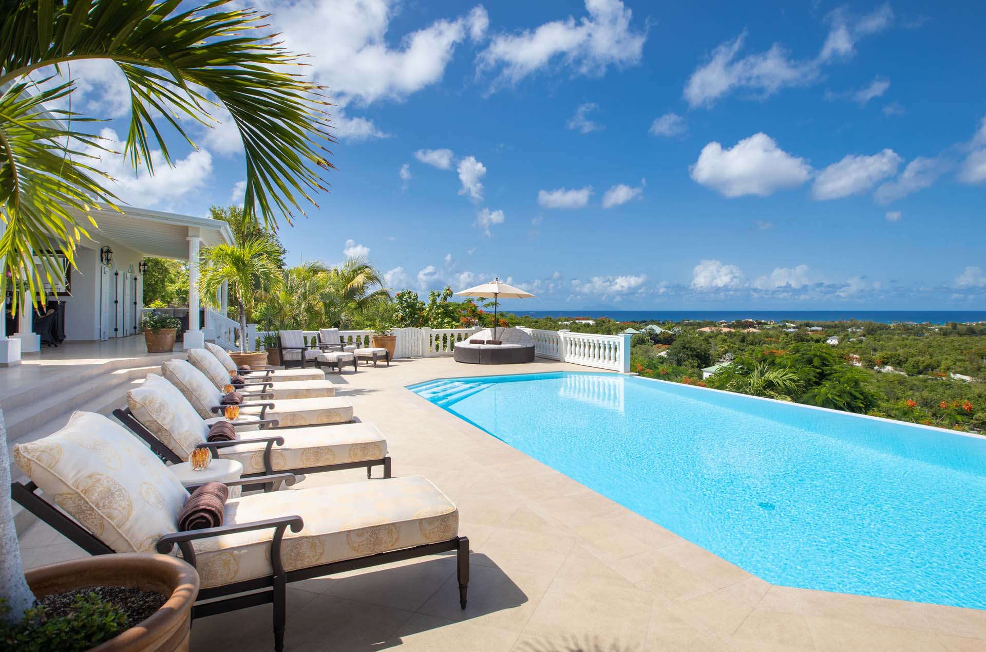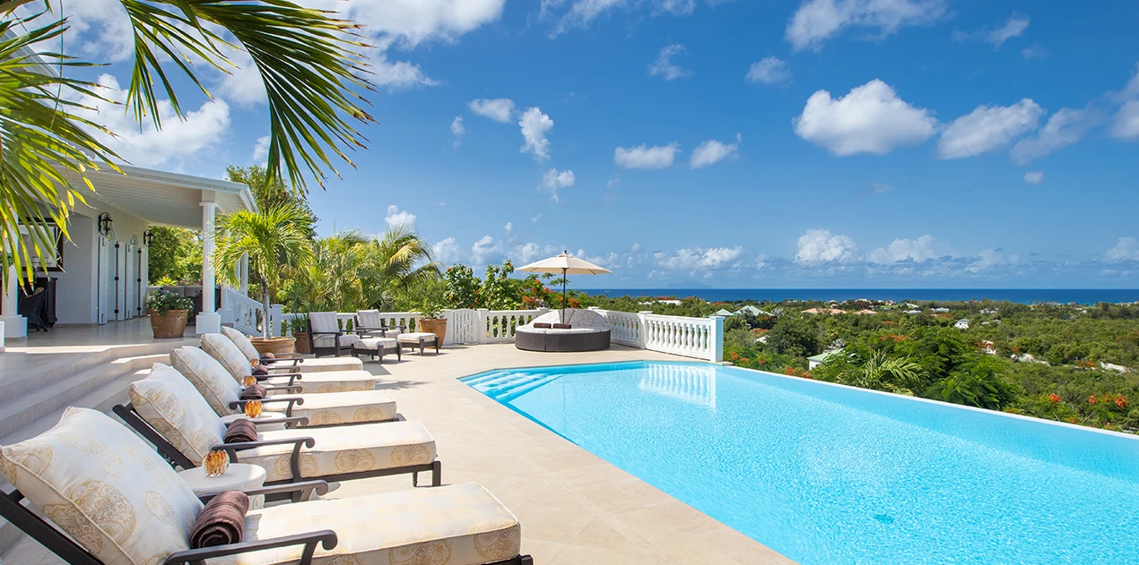 Perched just above the tranquil waters of Plum Bay, Villa Mille Fleurs offers breathtaking panoramas of the Caribbean Sea, the Atlantic Ocean and the islands of Saba Anguilla. As a romantic setting, Villa Mille Fleurs is unsurpassed -- Serenity and privacy beckon those seeking a luxury retreat -- the perfect setting for a romantic vacation.