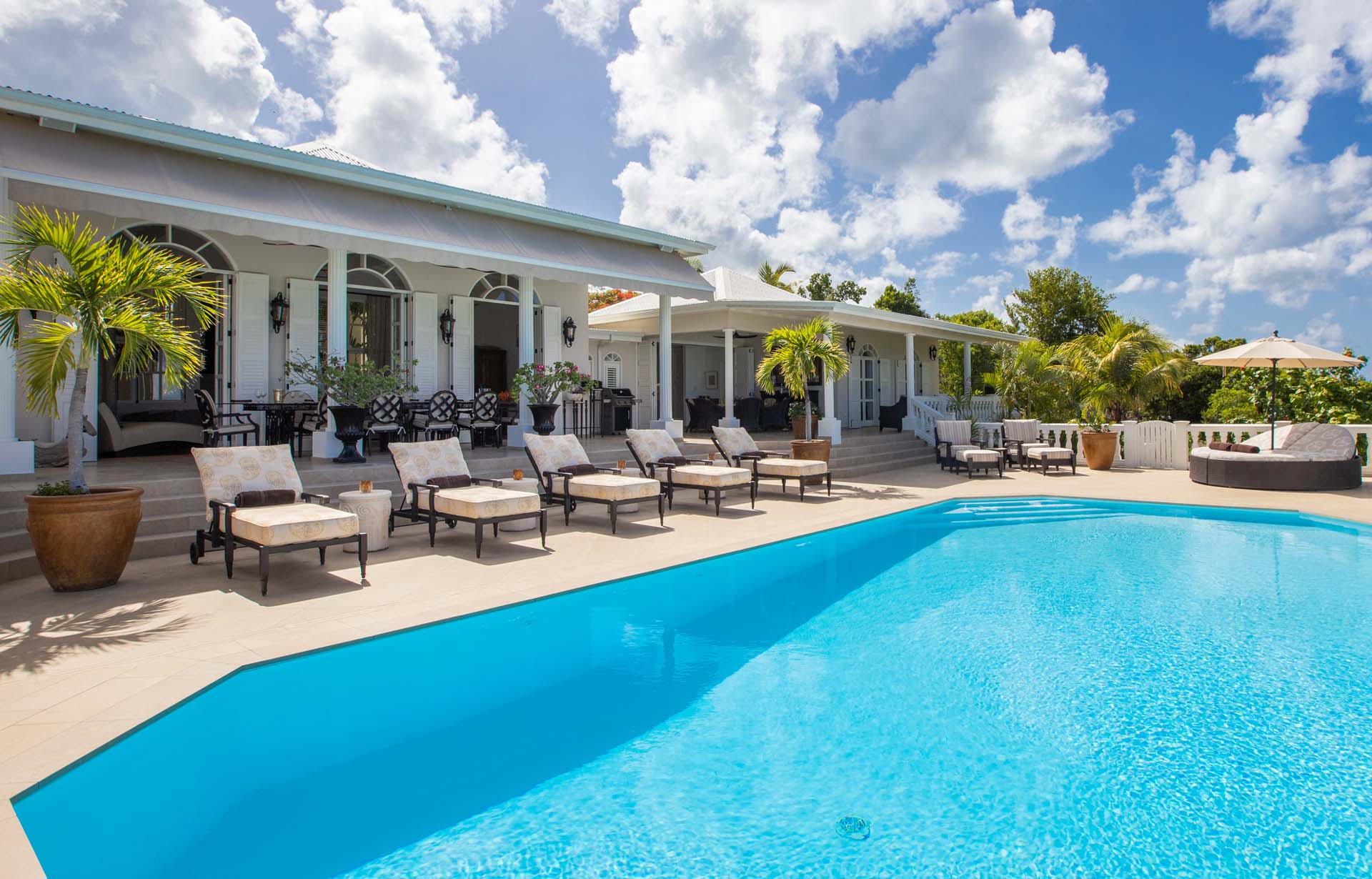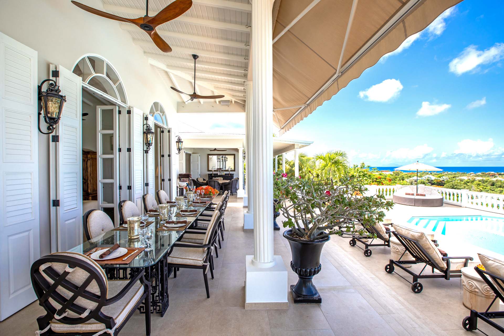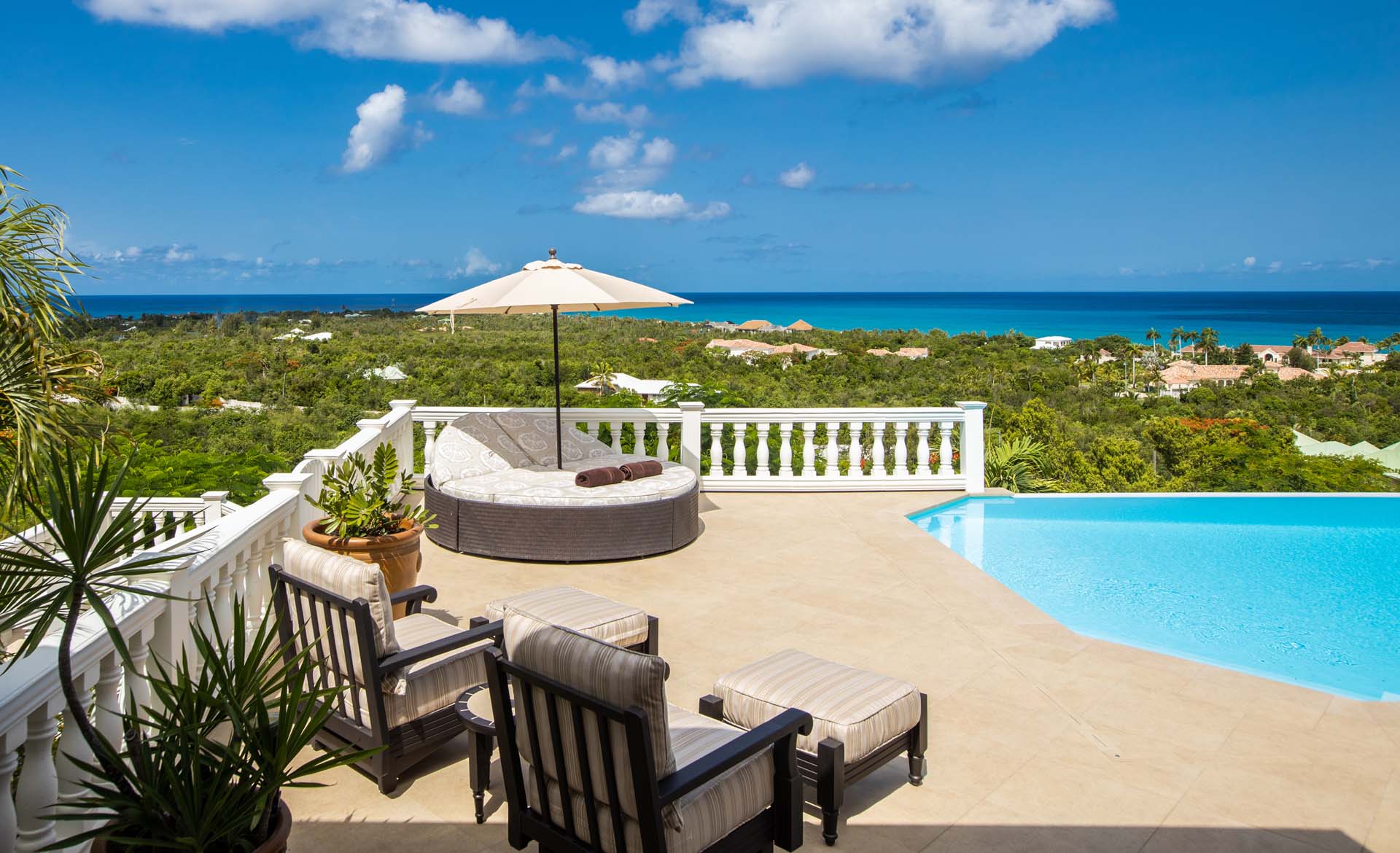 Perched just above the tranquil waters of Plum Bay, Villa Mille Fleurs offers breathtaking panoramas of the Caribbean Sea, the Atlantic Ocean and the islands of Saba Anguilla. As a romantic setting, Villa Mille Fleurs is unsurpassed -- Serenity and privacy beckon those seeking a luxury retreat -- the perfect setting for a romantic vacation.
