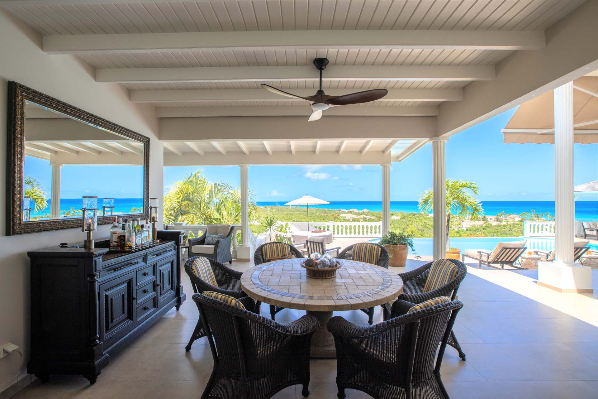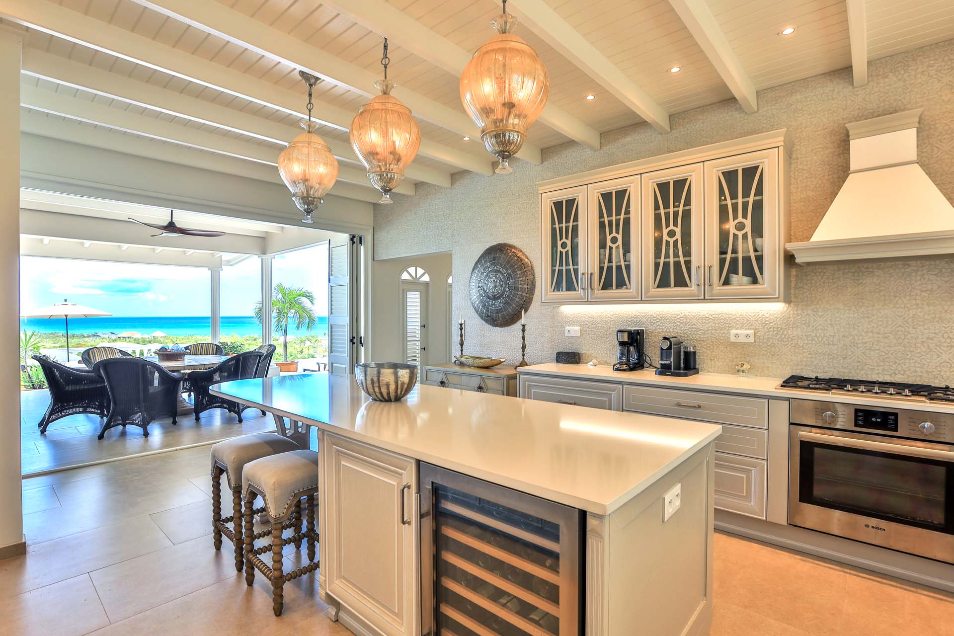 The pool area, with its sweeping vistas, offers complete privacy. The kitchen is fully stocked and equipped -- perfect for whipping up a romantic dinner to enjoy poolside.