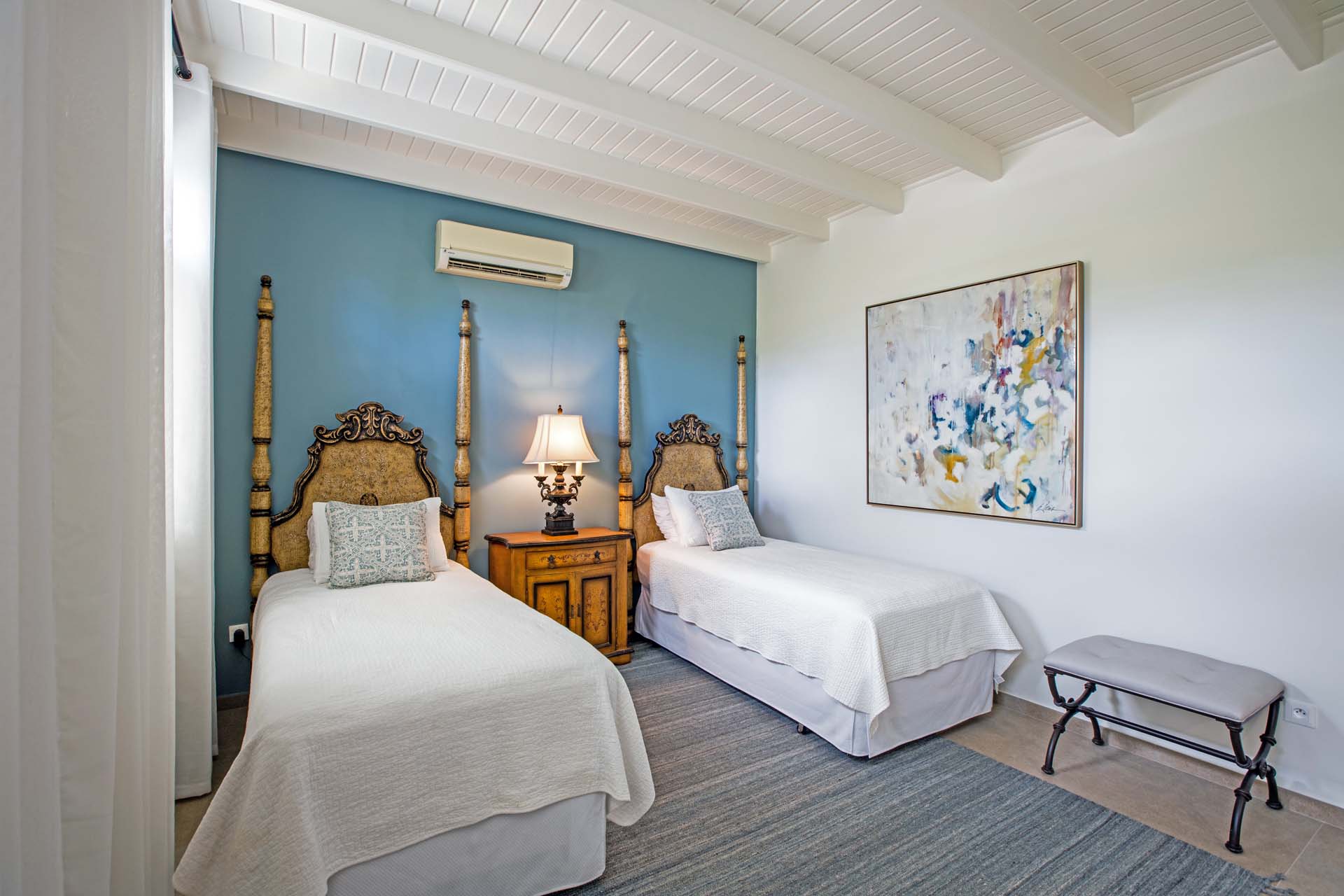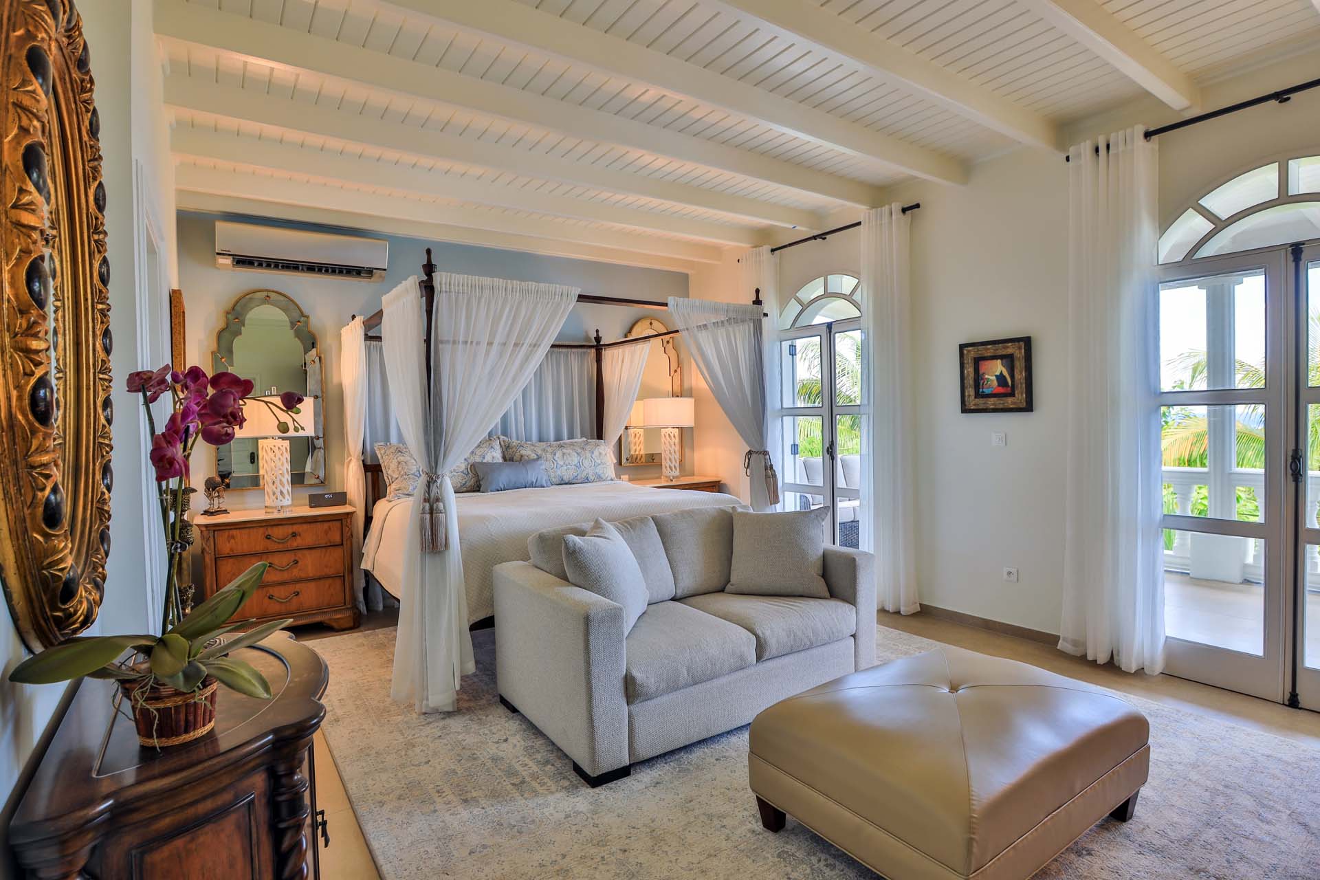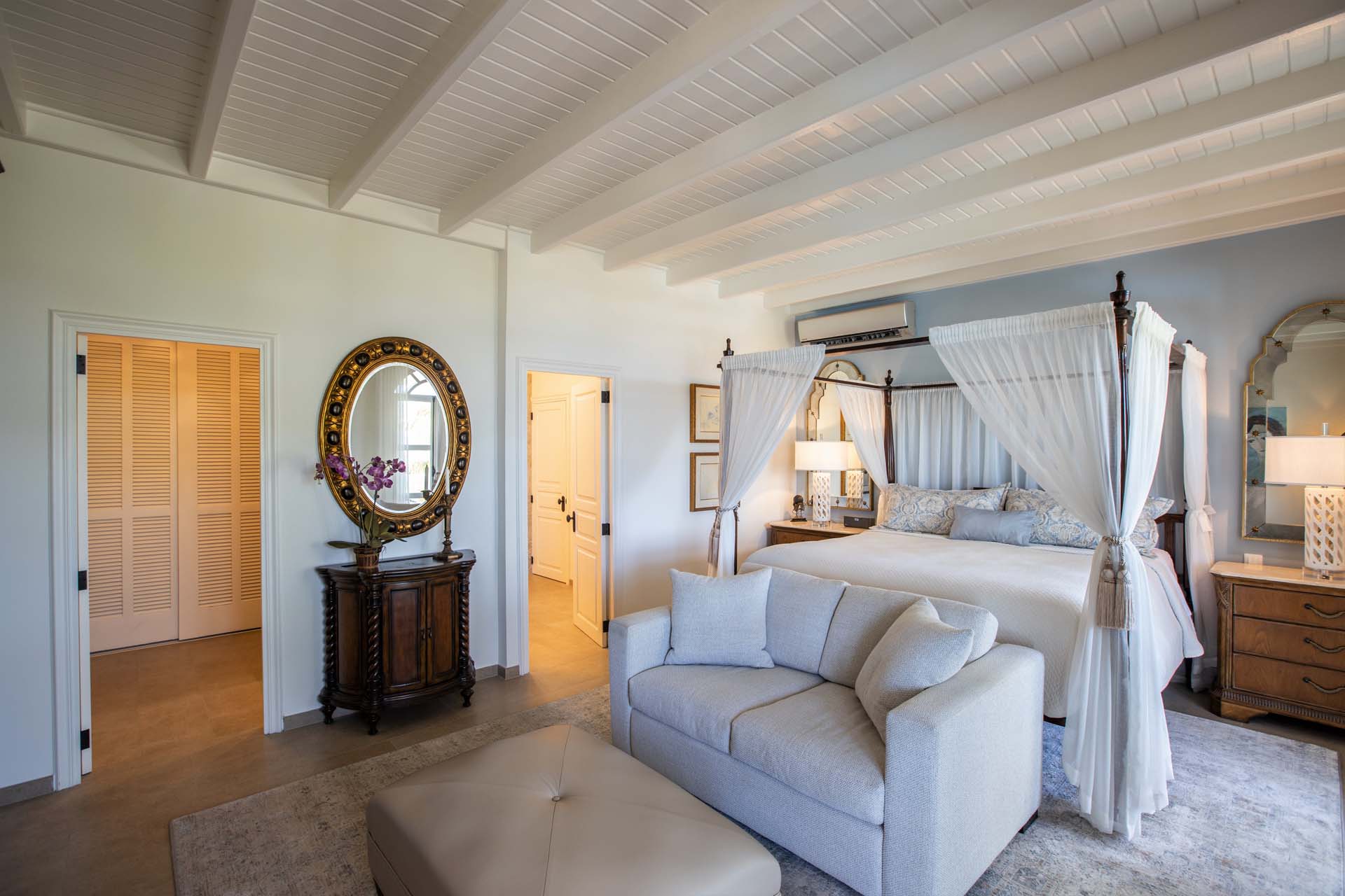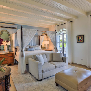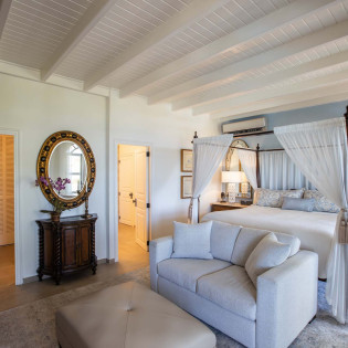 The Master Bedroom features a king-size antique four-poster bed, a spacious bathroom and separate dressing area with ample closet space. The other three guest bedrooms have ensuite bathrooms as well.